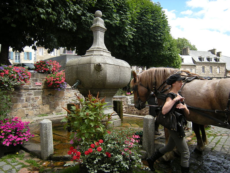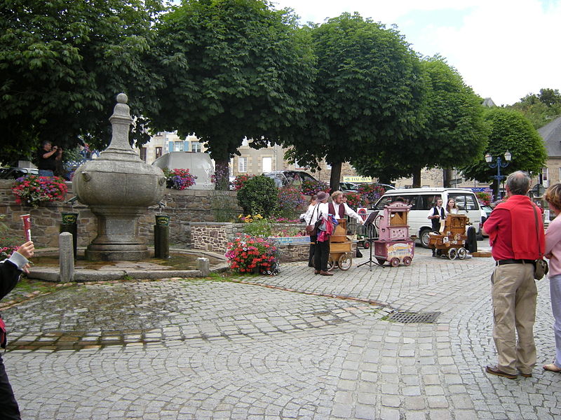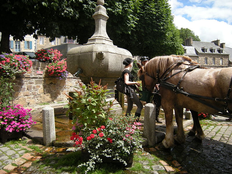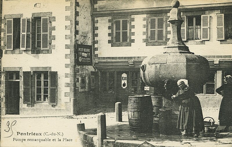 Édification de la fontaine en granit, caractéristique de l'architecture de l'époque.