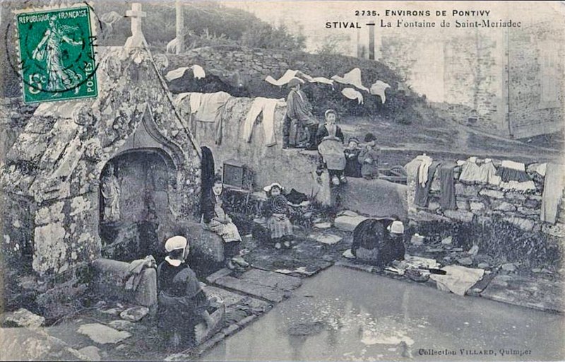 La fontaine de Saint-Mériadec est située au lieu-dit Stival, à Pontivy (Morbihan). Il s'agit d'un édicule en granit sculpté, fermé, dont la façade présente une accolade placée sous un fronton orné de crosses. Trois têtes sculptées soutiennent l'accolade. L'édicule pourrait dater du quatrième quart du XVe siècle ou du premier quart du XVIe siècle. Dans le tympan de l'élévation antérieure figurent les armes pleines de Rohan, et de part et d'autre de l'archivolte se voient les lettres H et L. Une statue en bois de Saint-Mériadec, encore présente dans la niche de la fontaine en 1974, n'était plus visible en 2020. La fontaine est alimentée par deux sources et a fait l'objet de restaurations dans les années 1970. Elle est inscrite au titre des monuments historiques depuis le 25 septembre 1928.
