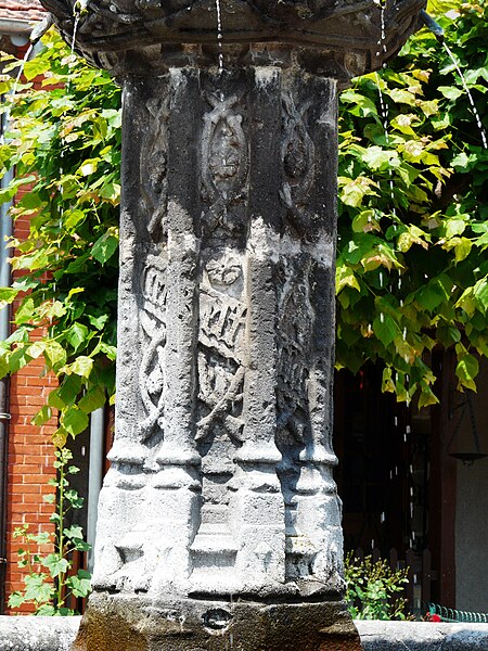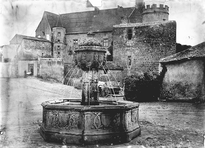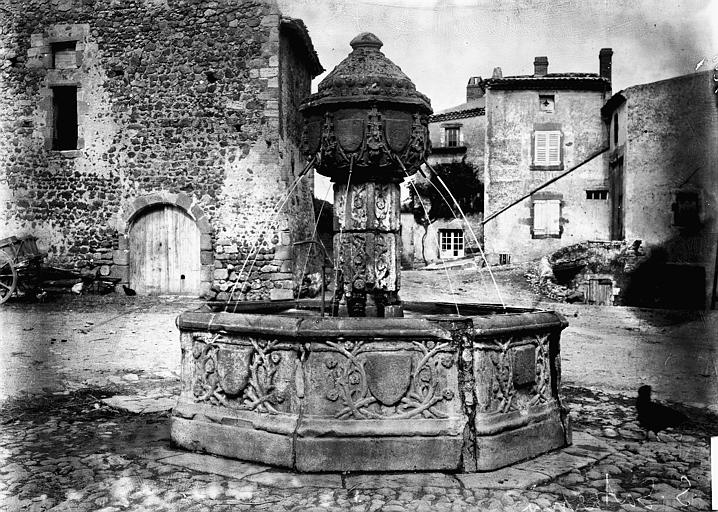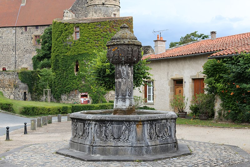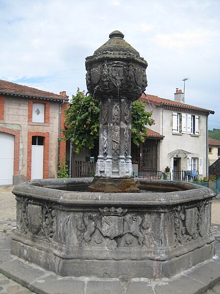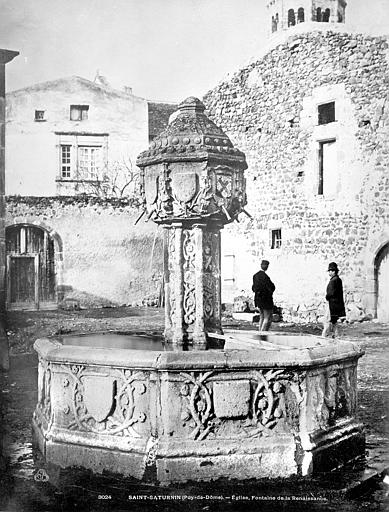 La fontaine de Saint-Saturnin, située à Saint-Saturnin dans le Puy-de-Dôme, se compose d'un bassin polygonal sculpté et d'un fût central supportant un réservoir pyramidal. Chaque face du bassin est ornée d'un écu portant les armes de La Tour ou de Broglie. Le fût, de plan octogonal, est décoré de branchages entrelacés. Le réservoir porte également des écus sur chacune de ses faces. La fontaine aurait été construite au début du XVIe siècle. Elle est classée au titre des monuments historiques par la liste de 1889.