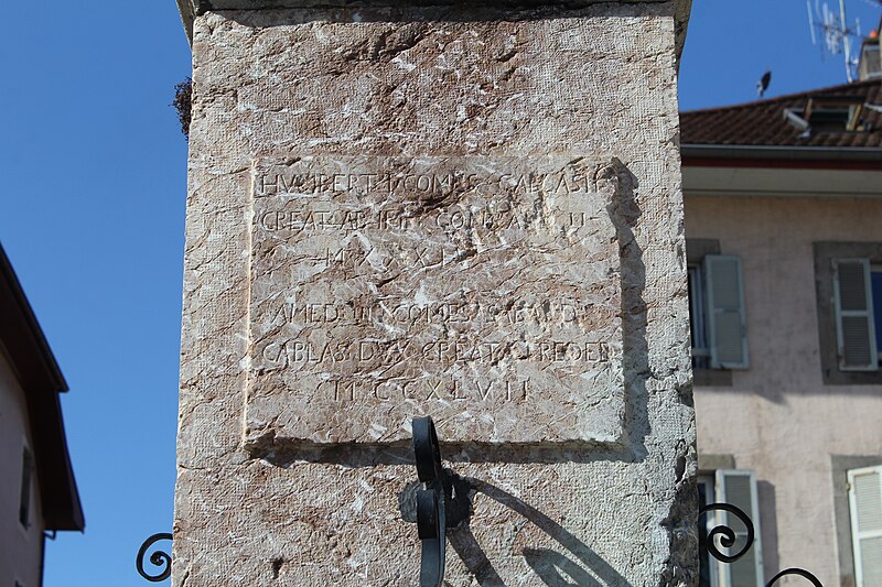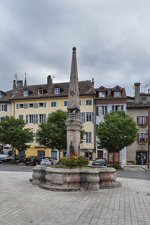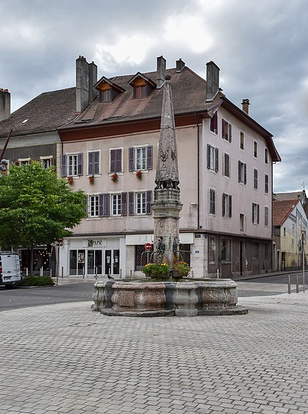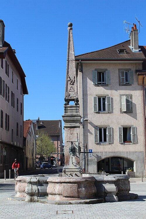 La fontaine de Thonon-les-Bains se trouve sur l'ancienne place de la Halle, aujourd'hui place de l'Hôtel-de-Ville, dans la commune de Thonon-les-Bains (Haute-Savoie). Érigée en 1737, elle appartient au deuxième quart du XVIIIe siècle. Sur l'une de ses faces sont gravées les armes de la ville. Après son inscription le 14 avril 1930, la fontaine a été classée au titre des Monuments historiques par arrêté du 12 octobre 1942. La documentation disponible comprend une notice dans la base Mérimée et des ressources présentes sur les portails consacrés aux bassins et fontaines, aux monuments historiques et à la Savoie.