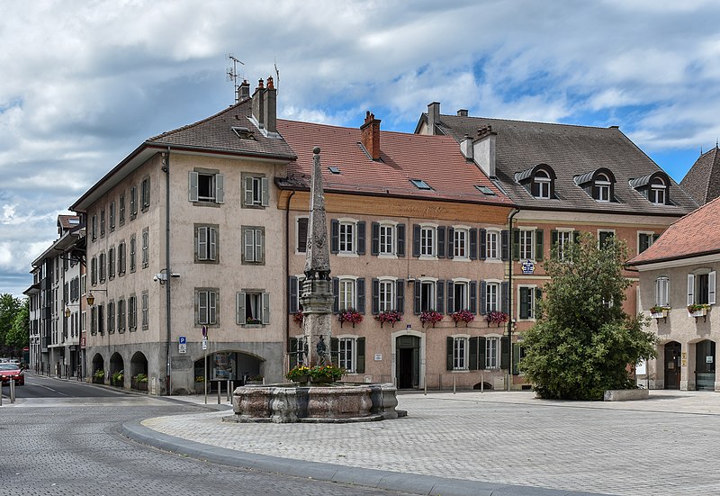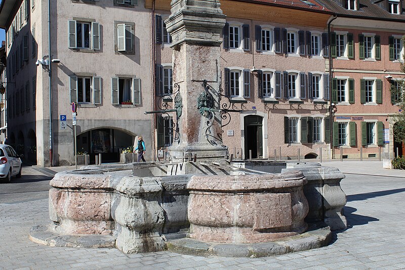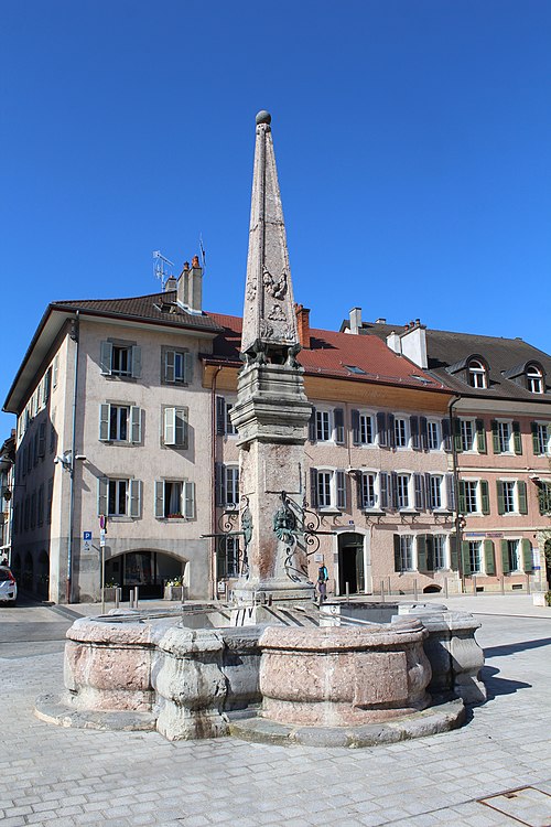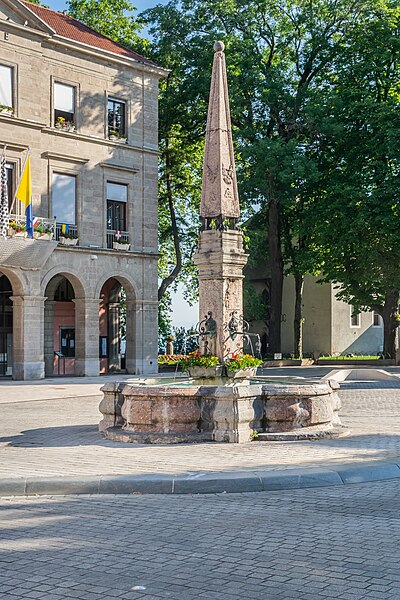 Édification de la fontaine sur l'ancienne place de la Halle.