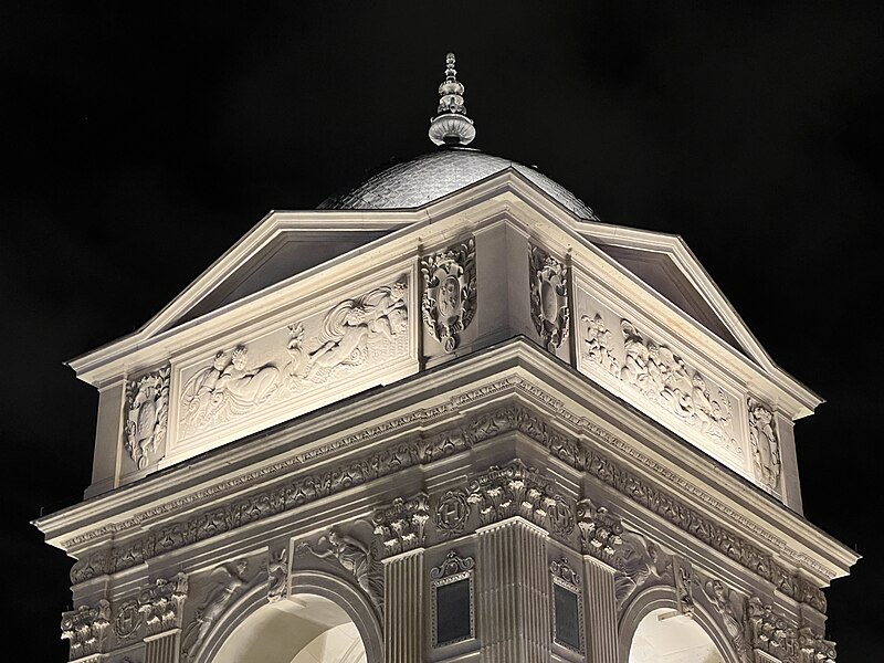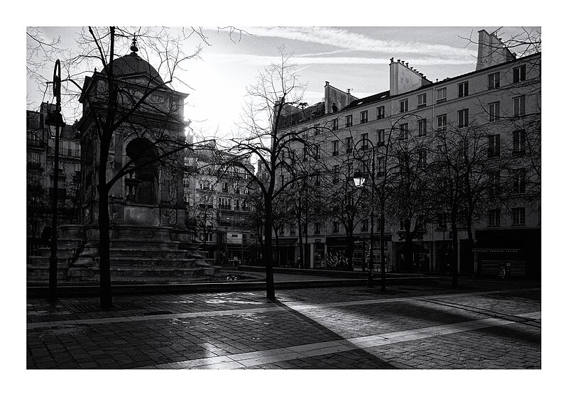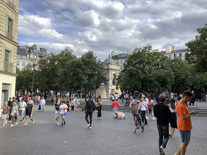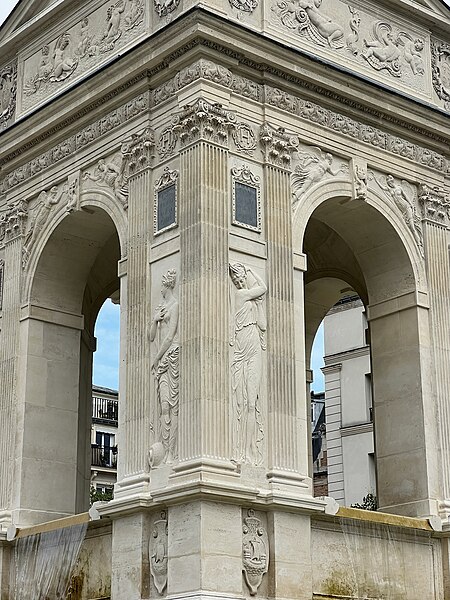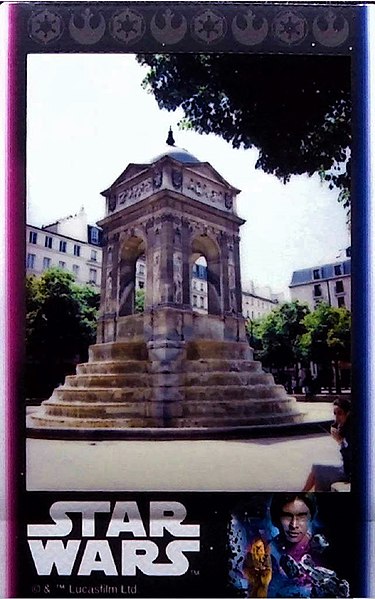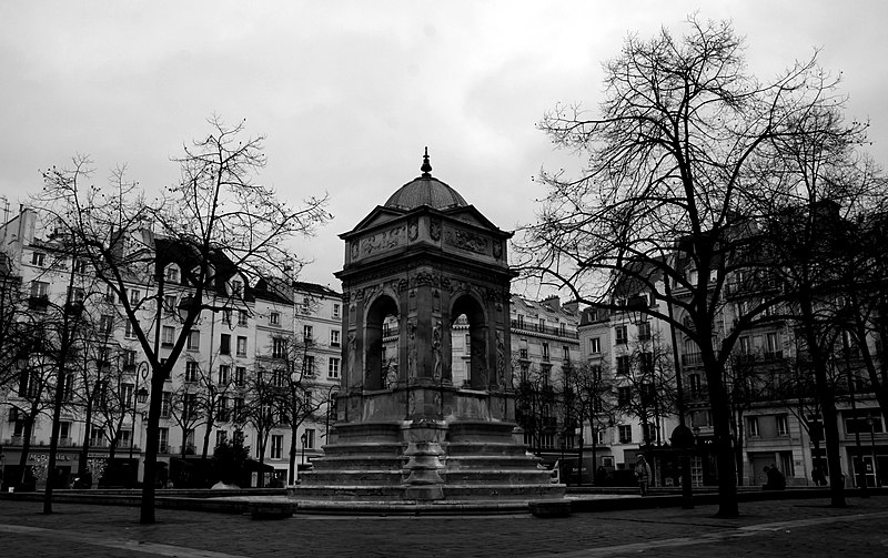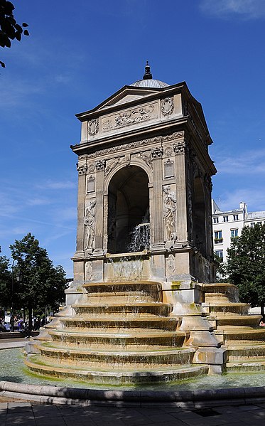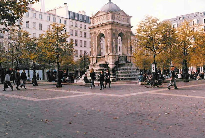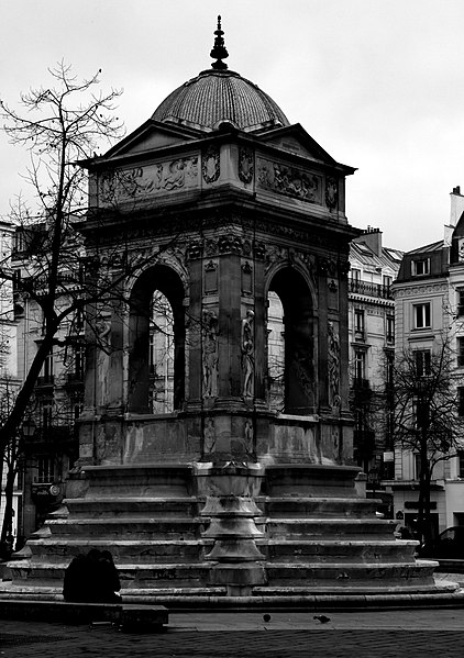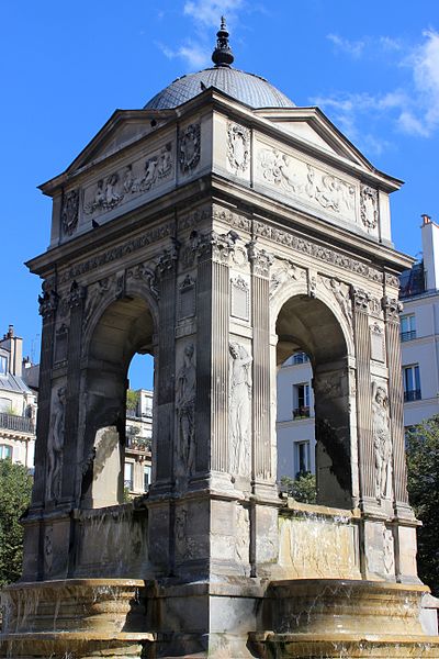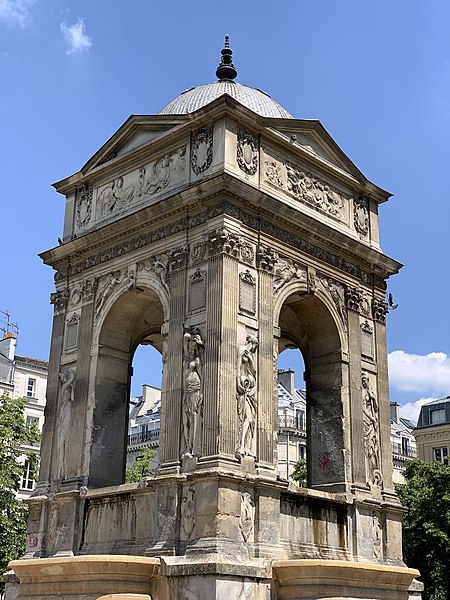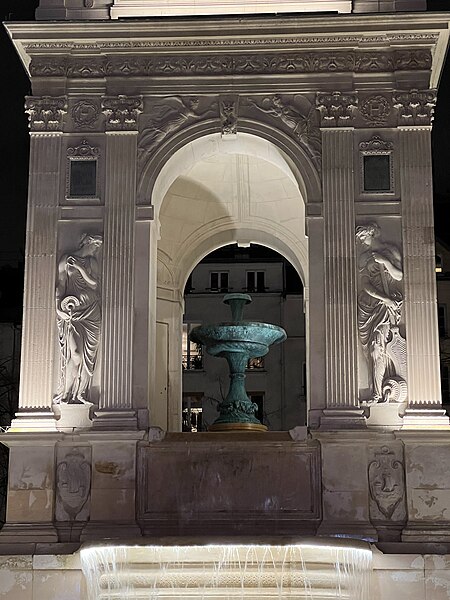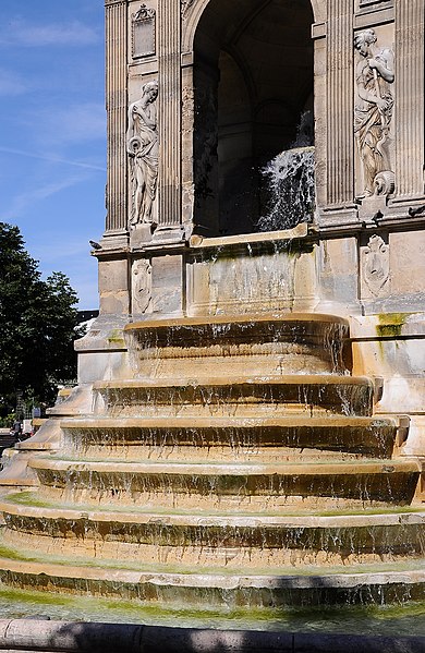 La Fontaine des Innocents, d'abord appelée fontaine des Nymphes, se situe dans le 1er arrondissement de Paris, sur la place Joachim-du-Bellay, dans le quartier des Halles ; elle est de style Renaissance et est classée monument historique depuis 1862. Le site est desservi par les stations de métro Les Halles et Châtelet. Une première fontaine, adossée à l'église des Saints-Innocents à l'angle de la rue Saint-Denis et de la rue aux Fers (actuelle rue Berger), est établie vers 1260 et alimentée par une conduite apportant les eaux des sources du Pré-Saint-Gervais. En 1548, au même emplacement, Pierre Lescot conçoit une loggia décorée par Jean Goujon, composée alors d'une structure rectangulaire à trois arcades ornées de cinq naïades, de pilastres d'ordre corinthien, d'une frise et d'un attique à fronton triangulaire ; l'ensemble laissait l'eau s'écouler par de petits mascarons. Cette fontaine célébrait originellement l'entrée des souverains dans Paris au retour du sacre de Reims, dont plusieurs entrées royales sont mentionnées dans les sources. À la fin du XVIIIe siècle, la fermeture et le déplacement des cimetières entraînent la démolition de l'église des Saints-Innocents en 1785 et la transformation de l'espace en marché ; la fontaine est alors démontée et réédifiée au centre de la nouvelle place sous la direction de l'ingénieur Six et des architectes Poyet, Legrand et Molinos. Pour lui donner la forme d'un tétrapyle, une quatrième face est sculptée en 1788 par Augustin Pajou, qui réalise trois naïades pour compléter les cinq de Goujon, tandis que d'autres ornements sont confiés à Lhuillier, Mézières et Daujon ; des lions ornent les angles et le soubassement est remplacé par des bassins superposés recueillant l'eau d'une vasque en bronze placée au centre du pavillon. Les trois bas-reliefs du soubassement, menacés par l'écoulement, sont démontés et déposés au musée du Louvre, et l'édifice est coiffé d'une petite coupole en feuilles de métal imitant des écailles de poisson. Lors de l'aménagement d'un square en 1856, puis du nouvel aménagement du jardin en 1860, la fontaine est encore déplacée et recentrée sur un soubassement pyramidal à six bassins étagés sur chaque face, reposant au milieu d'un bassin circulaire ; cette transformation est réalisée par l'architecte Gabriel Davioud. La place Joachim-du-Bellay actuelle conserve, dans les grandes lignes, les dimensions du square disparu lors des réaménagements des Halles au XXe siècle. De juillet 2019 à l'achèvement des travaux, la nécessité d'une restauration était reconnue ; les travaux, estimés à 5 millions d'euros, s'appuient sur un protocole établi par un comité scientifique et ont débuté en juin 2023 pour s'achever par la remise en eau le 27 juin 2024. Asséchée depuis 2017 en raison d'un tassement inégal des fondations qui détournait majoritairement les débits vers l'ouest, la fontaine souffrait aussi de la pollution, des intempéries et de la corrosion du système hydraulique ; le local technique souterrain a été entièrement réaménagé avec la pose d'un variateur de débit et de puissance et le remplacement du traitement au chlore par une désinfection aux ultraviolets, et une nouvelle mise en lumière indirecte et chaude par LED a été installée. Les cinq nymphes de Jean Goujon ont été déposées et remplacées par des copies en résine chargée en poudre de pierre ; les originaux ont été exposés au musée Carnavalet jusqu'au 25 août 2024 et leur destination finale n'est pas encore arrêtée, elles pourraient rejoindre les bas-reliefs conservés au musée du Louvre. Sur le plan sculptural, l'œuvre de Jean Goujon associe pilastres jumelés d'ordre corinthien, arcades surmontées d'attiques et frontons et naïades voilées en bas-relief, les attiques étant ornés de scènes mythologiques liées aux sources et fontaines. Les bas-reliefs du soubassement du XVIe siècle, représentant nymphes accompagnées de Tritons et de petits génies parmi des créatures mythologiques, constituent l'un des premiers exemples de représentation mythologique dans l'espace public en France. Pajou a respecté la même ordonnance pour la quatrième face et a pris pour modèle la statue de la Paix de Goujon ; il a sculpté les bas-reliefs de la face méridionale et ceux du panneau gauche de l'arcade occidentale.