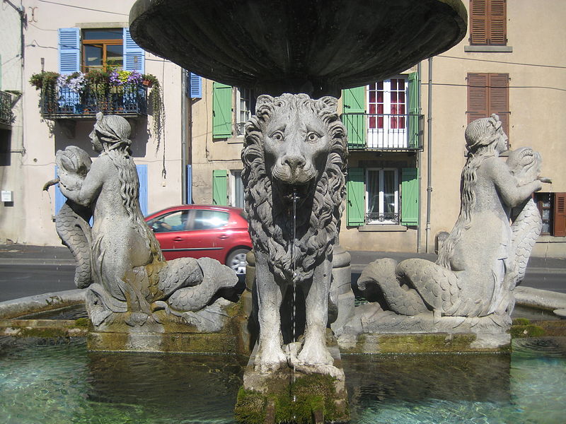 Fontaine des lions, située sur la place proche de l'église et du château : inscription par arrêté du 27 octobre 1986
