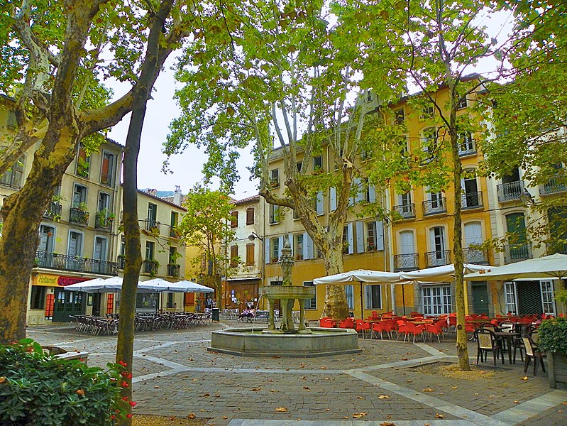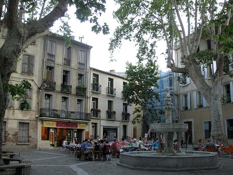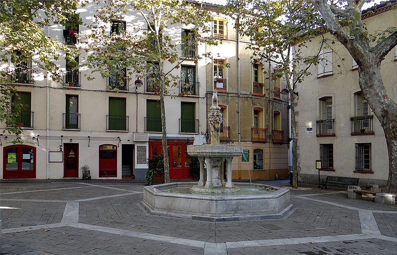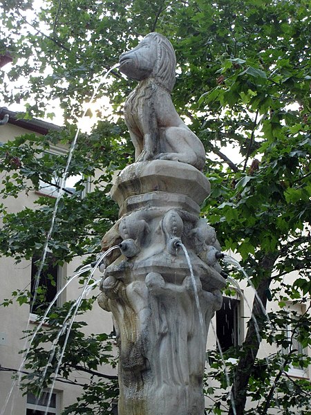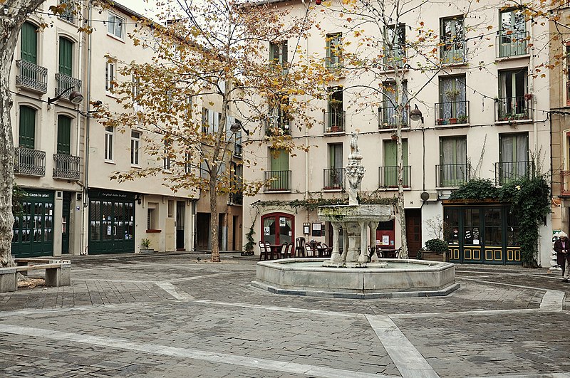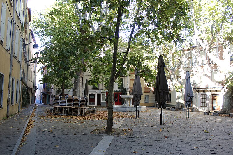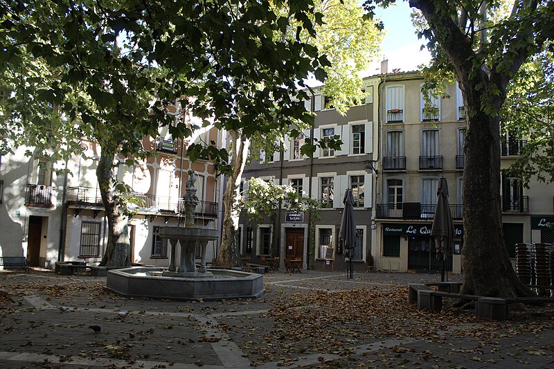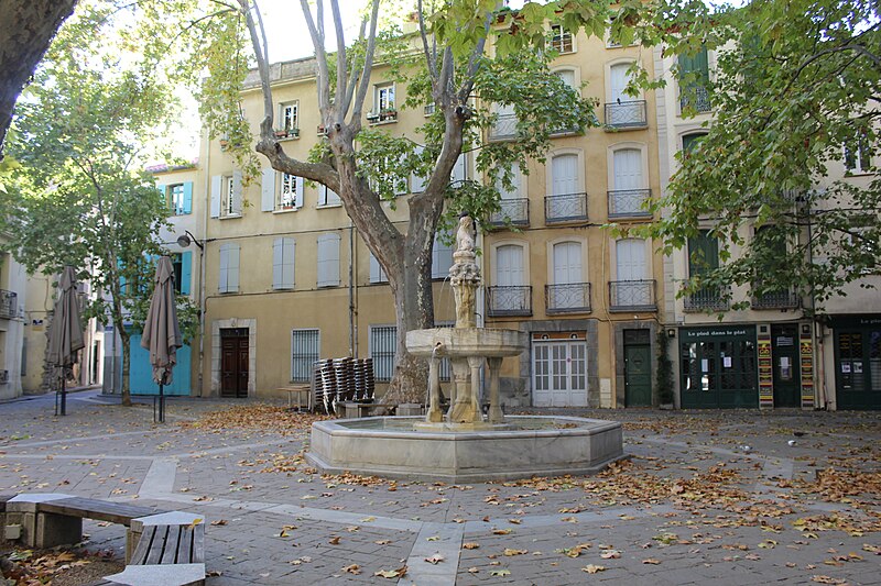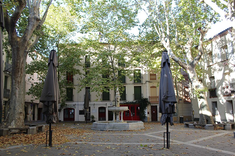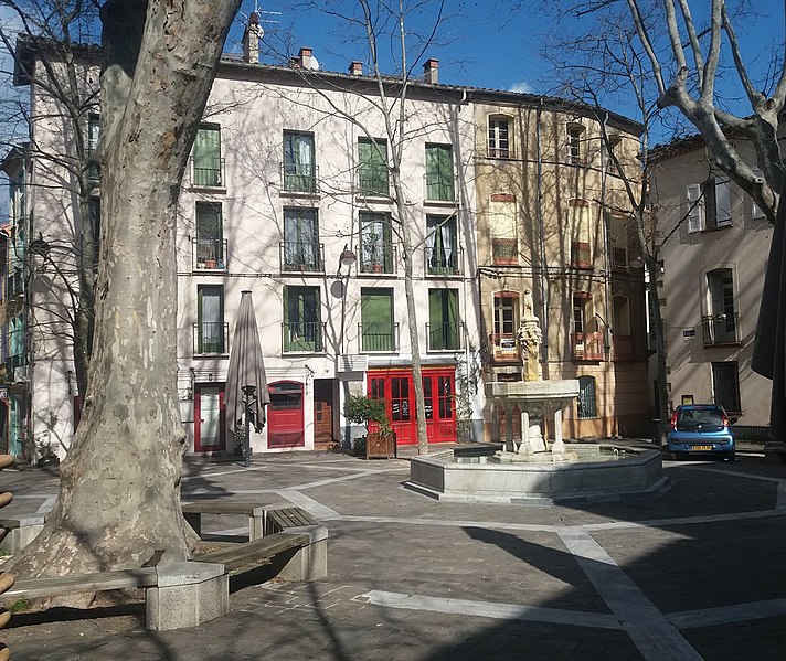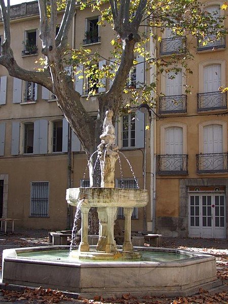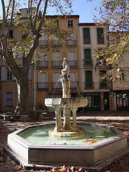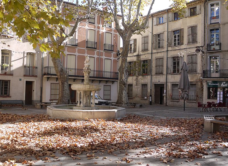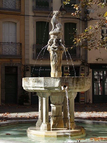 La fontaine est recentrée lors de l'agrandissement de la place.