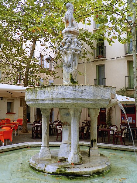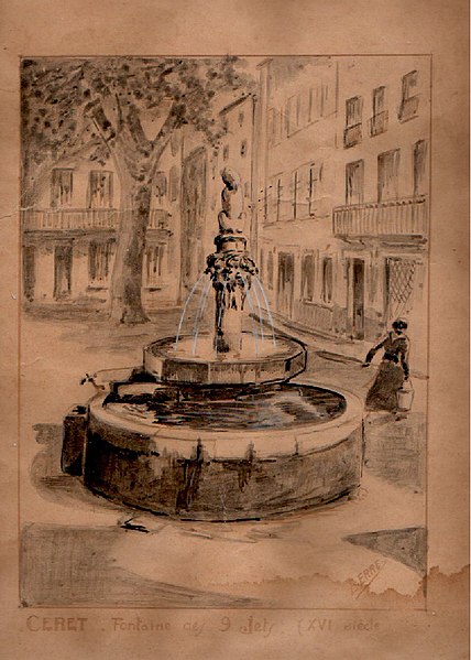 La fontaine des Neuf Jets (catalan : Font dels Nou Raigs) est le monument public principal de Céret (Pyrénées-Orientales). Elle laisse couler l'eau par neuf ouvertures et est surmontée d'un lion. Construite en marbre de Céret (Mas Carol) en 1313 sur la place du même nom, elle a été remodelée à plusieurs reprises. Après l'union des royaumes de Castille et d'Aragon en 1479, un lion tourné vers ces royaumes est ajouté. À la suite du traité des Pyrénées en 1660, la France fait retourner la tête du lion vers la France et fait apposer l'inscription «Venite Ceretens, leo factus est gallus». D'abord installée au centre d'une petite place, la fontaine se retrouve excentrée lors de l'agrandissement de la place des Neuf Jets, puis recentrée au XXe siècle. Lors de ces travaux, des éléments d'une fontaine antérieure retrouvés sous l'ouvrage ont été assemblés en une autre fontaine derrière l'église. La vasque principale, à l'origine circulaire et de faible rayon, a été remplacée par une vasque octogonale en marbre assorti. La fontaine est classée monument historique en 1910. Décapitée lors de la féria 2011, la tête du lion a été remplacée en août 2013 et repositionnée dans son orientation initiale vers le royaume d'Aragon.
