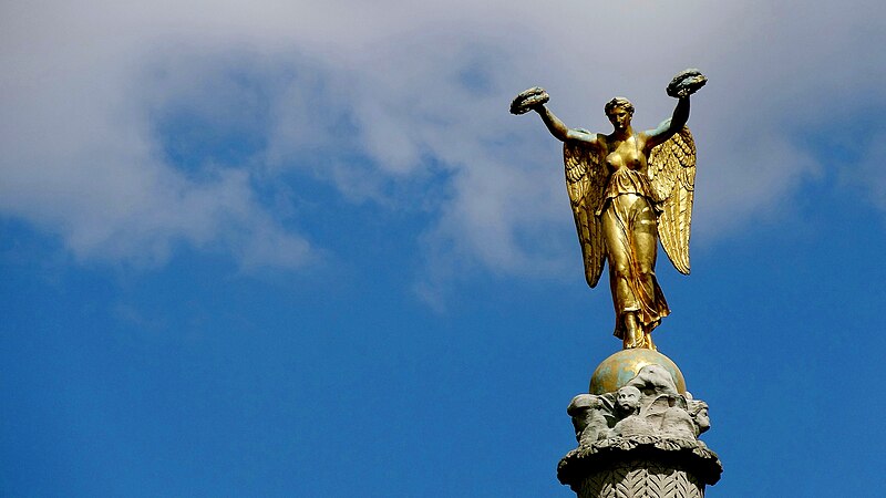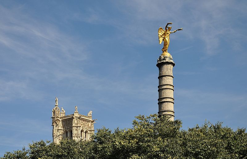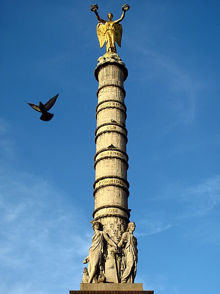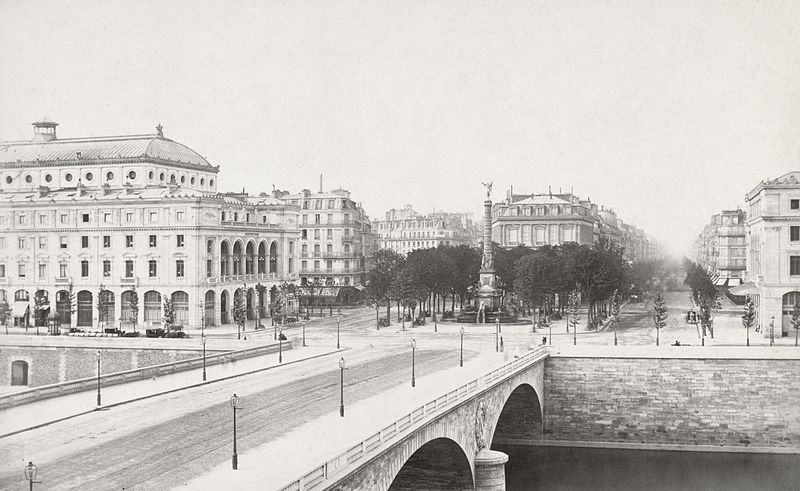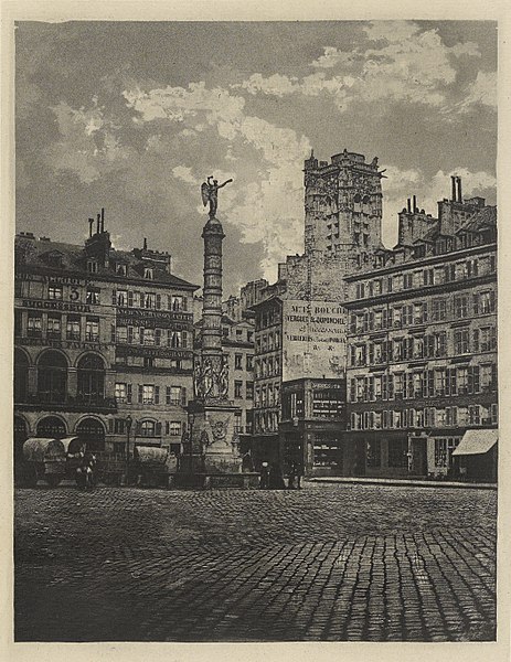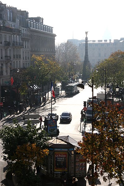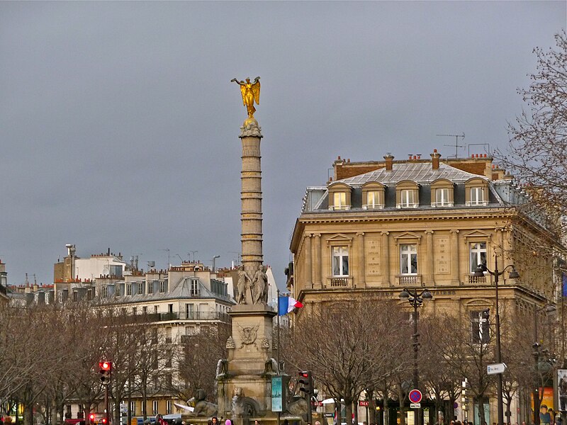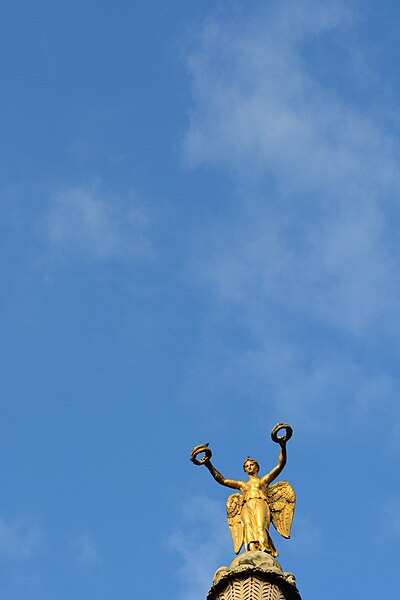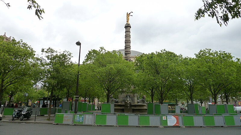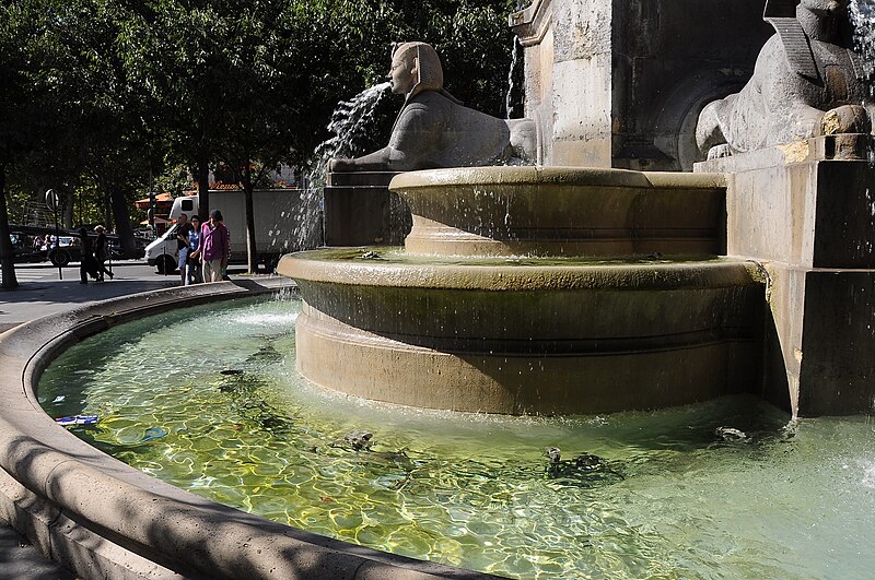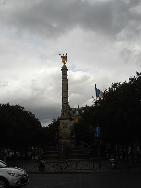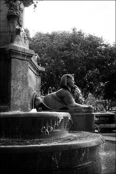 La Fontaine du Palmier, également appelée fontaine du Châtelet ou fontaine de la Victoire, est un monument parisien situé place du Châtelet, entre le théâtre du Châtelet et le théâtre de la Ville dans le 1er arrondissement. Le site est desservi par la station de métro Châtelet. La fontaine a été commandée en 1806 par Napoléon Ier à Emmanuel Crétet, ministre de l'Intérieur, pour commémorer ses victoires et pour fournir de l'eau potable gratuite aux Parisiens. Le projet, dirigé par l'ingénieur François-Jean Bralle, fut achevé en 1808. Elle prend la forme d'une colonne dont le sommet est orné de feuilles de palmier, d'où son nom, et dont le fût porte la liste des victoires de Napoléon en Italie, en Égypte et dans d'autres pays (Lodi, Arcole, Rivoli, Pyramides, Mont Thabor, Marengo, Austerlitz, Ulm, Iena, Eylau, Dantzig, Friedland). Y sont gravés notamment les noms des batailles de Lodi, des Pyramides, de Marengo, d'Ulm et le siège de Dantzick en Pologne. La colonne est surmontée d'une Victoire en bronze doré, œuvre de Louis‑Simon Boizot, appelée La Renommée ou La Victoire de Boizot ; la statue actuelle est une copie installée en 1898, l'original étant conservé dans la cour de la Victoire du musée Carnavalet depuis 1950. La base porte quatre statues allégoriques — la Vigilance, la Justice, la Force et la Prudence — également dues à Boizot. Sous le Second Empire, la place du Châtelet fut transformée et agrandie, et en 1858 le monument fut déplacé de douze mètres vers l'ouest pour être replacé au centre de la nouvelle place. À cette occasion, Gabriel Davioud fit ajouter un bassin inférieur entouré de quatre sphinx sculptés par Henri‑Alfred Jacquemart, qui crachent des jets d'eau. La fontaine du Palmier est inscrite au titre des monuments historiques depuis le 5 février 1925.