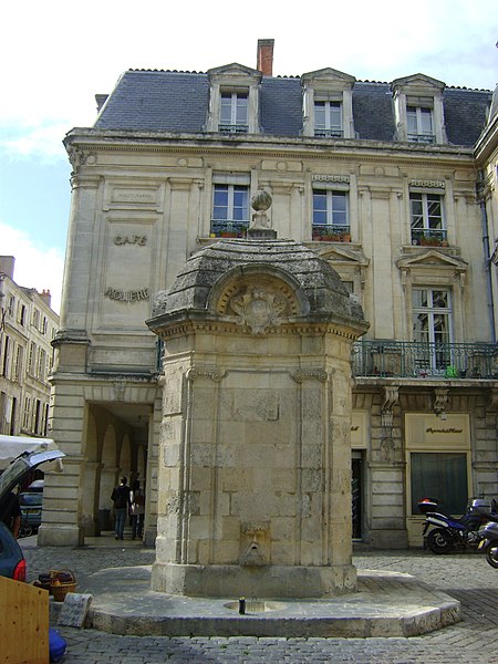 La Fontaine du Pilori, monument de La Rochelle inscrit au titre des monuments historiques, se situe sur une placette à l'angle des rues du Minage et du Cordouan. Selon la tradition, son nom viendrait d'un pilori qui aurait existé en ce lieu ; il pourrait aussi être lié à un puits où les habitants venaient puiser de l'eau, le nom étant parfois orthographié Puilori ou Puiy-Lory. Ce puits est mentionné dans le récit de l'entrée de Charles IX à La Rochelle en 1565. Au XVIe siècle, la fontaine se trouvait en dehors des murailles et était enfoncée d'environ quinze pieds sous le niveau de la rue, au fond d'une vaste excavation circulaire de six mètres de diamètre. Cet espace profond était accessible par deux escaliers en forme de fer à cheval, un accès difficile et dangereux, notamment en hiver. La fontaine recevait les eaux de source de Lafond par des galeries creusées dans la banche. Claude Masse a laissé une description précise de la fontaine qui, à la fin du XVIIe siècle, présentait deux niveaux. Sa dégradation entraîna une reconstruction à partir d'un plan établi en 1720 par l'ingénieur de Vilennes ; la fontaine fut achevée l'année suivante, à l'exception des sculptures et armoiries. Par ailleurs, des projets datant de 1712 furent réalisés en 1722 par l'entrepreneur rochelais Julien Bonnichon d'après des dessins de Verrier. En 1711 la fosse avait été comblée et, en 1722, la fontaine ramenée au niveau du sol était de nouveau opérationnelle ; un mascaron y délivre l'eau. Elle a été inscrite au titre des monuments historiques par arrêté du 17 mars 1925.