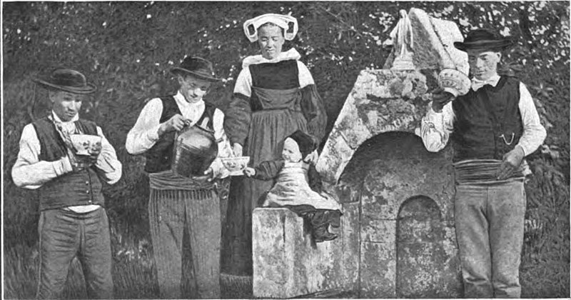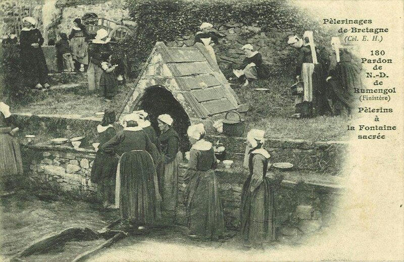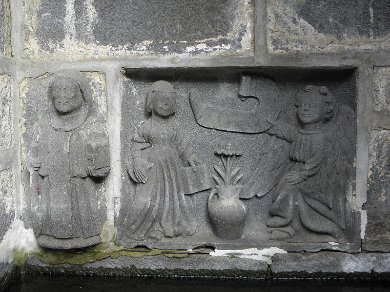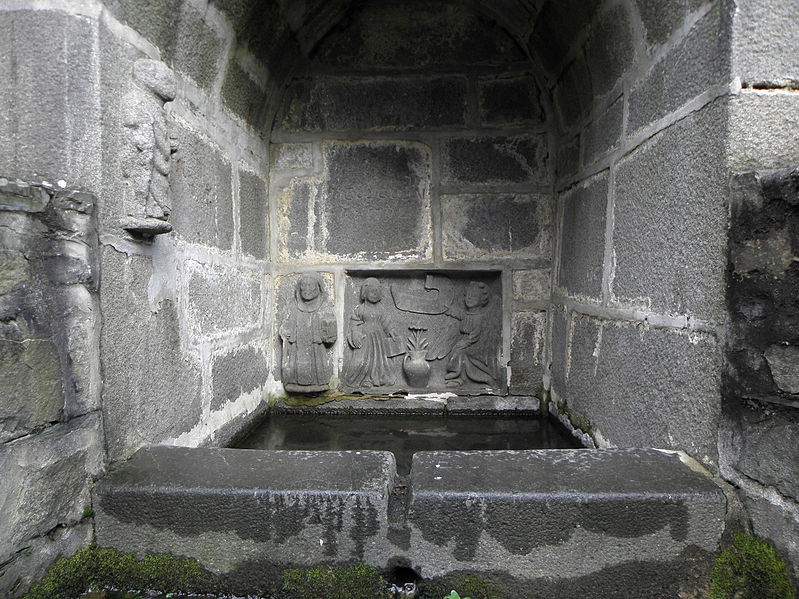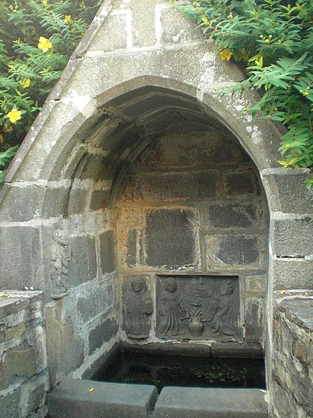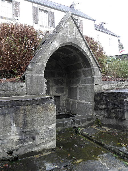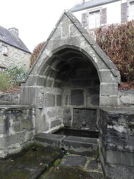 La fontaine, vraisemblablement installée à la fin du XVe ou au début du XVIe siècle sur l'emplacement d'un ancien lieu de culte, a été restaurée en 1792 et porte l'inscription « J : GUEGUEN : F. ». Elle est ornée de statues de saint Guénolé et de saint Fiacre, probablement du XVIe siècle, ainsi que d'un demi-relief représentant le groupe de l'Annonciation, exécuté autour de 1500.