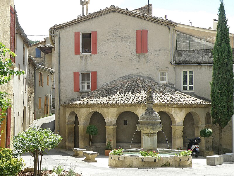 Fontaine et vieux lavoir à arcades de Mollans-sur-Ouvèze dans la Drôme
