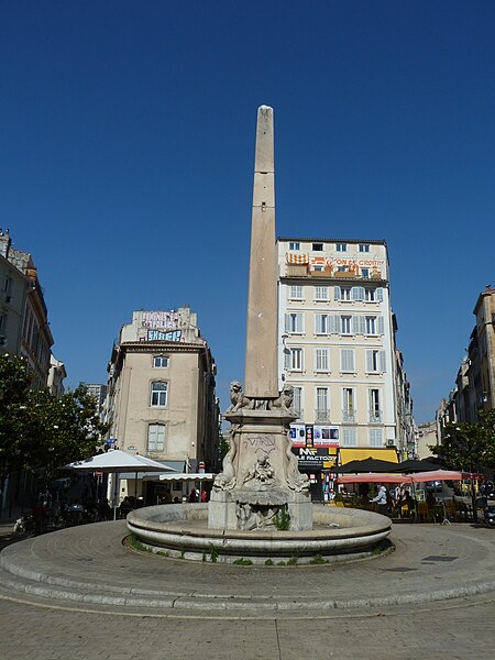 La fontaine Fossati, située dans le 1er arrondissement de Marseille, est la seule fontaine de la ville classée parmi les Monuments historiques. Dominique Fossati passa marché avec la ville le 4 mai 1778 pour la réalisation de cette fontaine, qualifiée de baroque et de style Louis XVI, pour la somme de 12 000 livres ; elle fut édifiée en 1778 en l'honneur de Necker sur l'actuelle place du Général‑de‑Gaulle. En 1825, la fontaine fut déplacée au croisement du boulevard Dugommier et du boulevard d'Athènes, puis transférée quelques mètres plus loin en 1863, à la place des Fainéants (aujourd'hui place des Capucines), afin de faciliter la circulation. Elle a été classée monument historique en 1941. Une gravure et un plan Pierron gravé en 1785 montrent la pointe supportant un globe surmonté d'un aigle, mais aucun témoignage n'atteste que cet aigle faisait partie du projet initial. Un aigle impérial en marbre blanc fut commandé en 1805 au sculpteur Chardigny et posé en 1809 par Chinard ; il fut détruit par la foule lors de la chute de l'Empire le 14 avril 1814. Le peintre Félix Ziem, installé à Marseille en 1839, a représenté la fontaine, comme l'atteste la couverture de l'ouvrage Félix Ziem, peintre voyageur 1821-1911 aux éditions Actes Sud. La manufacture de la veuve Perrin a pris la fontaine comme modèle pour des fontaines en faïence ; un exemplaire est conservé au musée Cantini. L'édifice présente quatre lions supportant un obélisque ramené d'Égypte par Napoléon ; la pyramide domine quatre dauphins renversés, en forme de consoles, qui crachent de l'eau. Deux couples d'enfants, installés sur une tortue de mer, dirigent le jet d'eau vers une coquille qui se déverse dans une grande vasque inférieure. L'inscription HON. DOMI. FOSSATI IRU et FECIT honore le talent de Dominique Fossati. Par sa ressemblance avec la fontaine de la place des Prêcheurs, la fontaine Fossati symbolise aussi la rivalité avec Aix‑en‑Provence, alors capitale de la Provence.