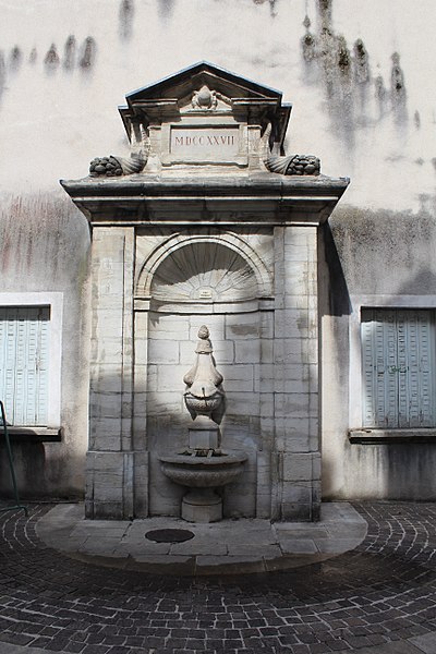 Datée de 1727, la fontaine se trouvait à l'origine rue du Collège, alors appelée rue Sébile, adossée au premier couvent des Tiercelines, aujourd'hui détruit. Elle fut déplacée en 1776 lors du percement de la rue du Four.