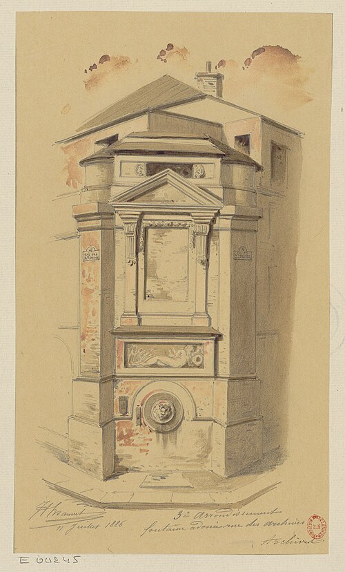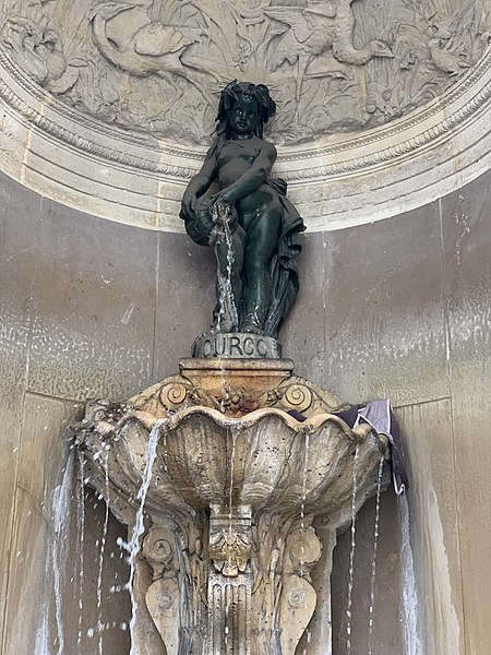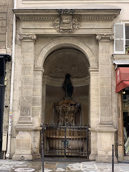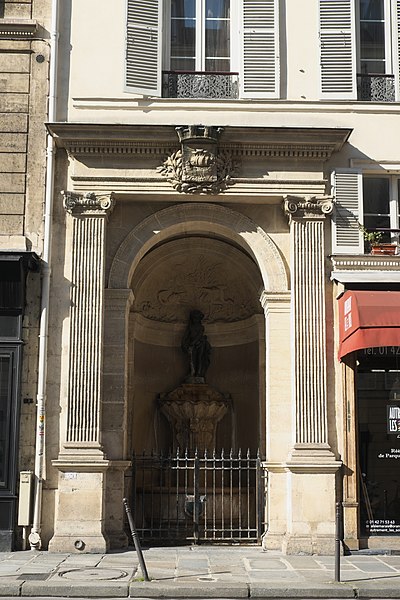 La fontaine de Joyeuse, parfois nommée fontaine Saint-Louis, se trouve au 41 rue de Turenne dans le 3e arrondissement de Paris et est inscrite au titre des monuments historiques depuis le 6 mars 1925. Elle remplace une fontaine antérieure, adossée à l'hôtel de Marc Miron (construit vers 1580), qui avait été élevée en 1687 et portait déjà le nom de Joyeuse. La fontaine actuelle, installée en 1847, est alimentée par le canal de l'Ourcq et s'inscrit dans le programme municipal de fourniture d'eau au Faubourg Saint-Antoine alors très peuplé. Elle appartient à un ensemble de fontaines contemporaines au style comparable, comme la fontaine de la Roquette (1847) ou la fontaine Sainte-Eugénie, aujourd'hui détruite, et est ornée par le sculpteur Isidore-Romain Boitel (1812-1860). Restaurée en 2008, elle est illuminée la nuit, mais son intérieur n'est plus accessible. L'édicule, adossé aux immeubles et large d'environ trois mètres, s'ouvre par une arcade ionique abritant une niche en cul-de-four dont l'entablement porte les armoiries de la Ville de Paris. Dans la niche se trouve une petite statue en zinc représentant un enfant tenant une jarre inclinée d'où s'écoule l'eau ; la base porte l'inscription « OURCQ ». La statue repose sur un piédestal en marbre au centre d'un bassin semi-circulaire qui supporte une vasque en forme de coquille recueillant le jet ; l'eau s'évacue par un mascaron de bronze et une grille scellée dans le sol. Le cul-de-four est décoré d'un bas-relief montrant divers animaux aquatiques parmi des roseaux, notamment un héron, une grenouille, un cygne et un serpent. La fontaine a inspiré un conte de Jean-Louis Bouquet, La fontaine de Joyeuse, paru en 1949 ; cette nouvelle fantastique propose un historique de la fontaine et situe l'intrigue à la fois pendant la Révolution française et dans la première moitié du XXe siècle, puis paraît dans sa version définitive en 1978 dans le recueil Les filles de la nuit.