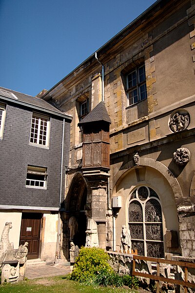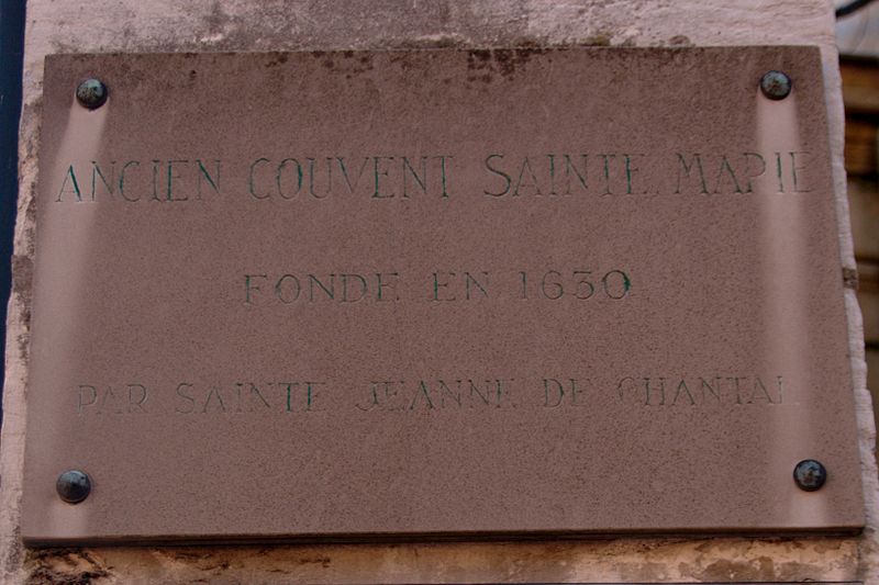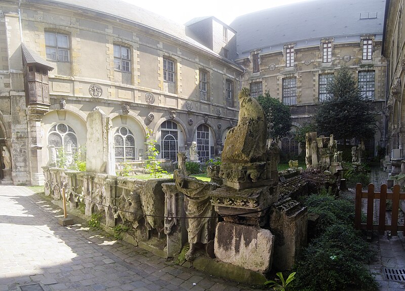 Le cloître Sainte‑Marie, ancien couvent des Visitandines, se situe dans le centre de Rouen, entre les rues Louis‑Ricard et Beauvoisine. Il fait l’objet d’un classement au titre des monuments historiques par la liste de 1862. Le 6 mars 1629, la ville de Rouen a reconnu l’établissement des religieuses de la Visitation de Sainte‑Marie à la suite d’une requête de Jean‑François de La Guiche et de son épouse Susanne Aux Épaules. Les sœurs sont arrivées le 23 octobre 1630 ; elles logèrent d’abord près du couvent des Minimes avant de s’installer rue Beauvoisine. Le couvent a été bâti entre 1680 et 1691, et l’église conventuelle, commencée le 6 août 1711 par l’architecte dominicain Pierre Caumont, a été achevée au XVIIIe siècle. En 1642, sept sœurs sont parties de ce couvent pour fonder un second établissement de la Visitation dans le quartier est de Rouen. Pendant la Révolution, le couvent a servi à interner les religieuses insermentées et l’église a été détruite. À partir de 1828, une partie des locaux a accueilli le Muséum d’histoire naturelle de Rouen, tandis qu’en 1831 l’autre partie a été occupée par le Musée départemental des antiquités ; le Muséum a fermé en 1996 pour vétusté et a rouvert en 2007. Les jardins du cloître conservent plusieurs éléments remarquables, notamment l’original de la fontaine de la Croix‑de‑Pierre et le portail du couvent des Clarisses, transféré en 1908. Les armes du couvent, celles des Visitandines, se blasonnent ainsi : champ d’or, au cœur de gueules percé de deux flèches d’or, enfermé dans une couronne d’épines de sinople aux épines ensanglantées de gueules, avec une croix de sable fichée dans l’oreille du cœur ; le cri d’armes est « Vive Jésus ». Parmi les abbesses figurent Mère Marguerite Guérin (1632‑1636), Anne‑Thérèse de Préchonnet (1638‑1641), sœur Françoise Marie Hélye (1655), Jeanne Marie de Bauquemare (1667, 1693), Marie Louise Croiset (1696‑1701), Marguerite Séraphique Gréard (1720), Marie Agnès Gréard (1726‑1730), Marguerite Angélique Le Couteulx (1739, 1742, 1748, 1764), Mère Julienne Angélique Belard (1745, 1746, 1754), Marie Arsene de Goderville (1776‑1780) et Catherine Angélique Delahaye (1772, 1781‑1788).