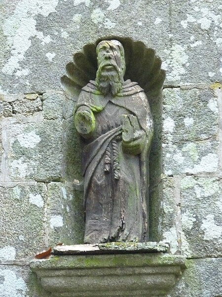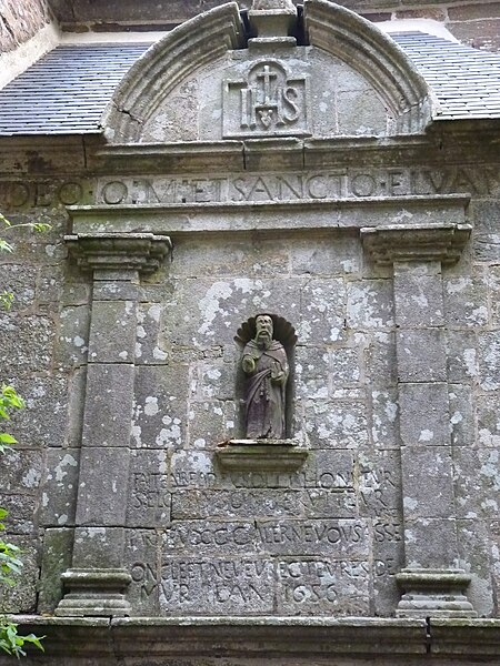 Le retable de pierre avec la statue de Saint-Elouan porte la mention 1656.