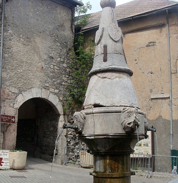La fontaine de Chorges se situe sur la place Lesdiguières, dans la commune de Chorges (Hautes-Alpes, Provence-Alpes-Côte d'Azur). Datée de 1548 par une inscription gravée sur des faces de la colonne de distribution, elle est l'une des plus anciennes du département et a été inscrite au titre des monuments historiques par arrêté du 11 octobre 1930. Construite en marbre rose provenant de l'ancienne carrière de Salados, située sous les Aiguilles de Chabrières et de Guillestre, la fontaine présente un plan circulaire. L'eau jaillit par des dégorgeoirs sculptés qui évoquent le bestiaire fantastique du Moyen Âge. Gravement détériorée par le temps, elle a fait l'objet d'une restauration importante en novembre 2014.