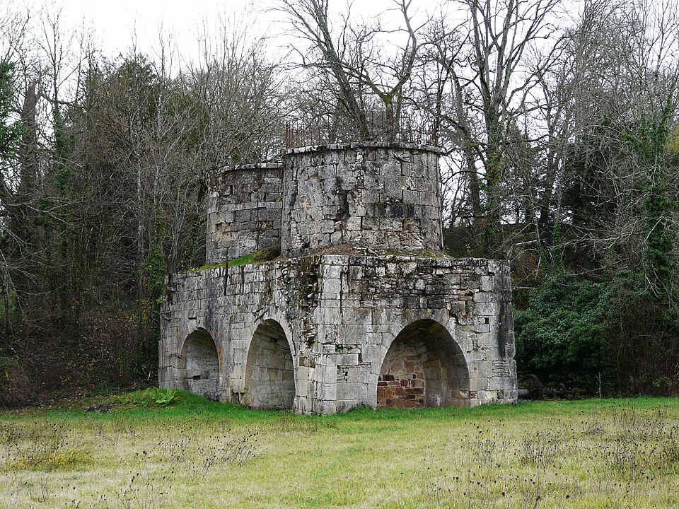 Le domaine comptait autrefois de nombreux bâtiments dont certains ont disparu, ainsi qu'une halle à charbon visible sur les plans de 1810 et le cadastre de 1841, mais dont il ne reste rien. Les hauts fourneaux, unique élément subsistant des anciennes installations comprenant également une forerie et une affinerie, étaient alimentés selon les sources par le bois de la forêt Barade abattu à Reilhac. La maison de maître, bâtie entre 1791 et 1810 par Jean Festugière, comporte deux niveaux de sous-sol, un rez-de-chaussée, un étage et des combles ; le deuxième sous-sol comprend des salles voûtées et un tunnel menant au niveau de la forge, et le premier sous-sol abrite plusieurs salles voûtées dont une ancienne cuisine avec cheminée, rôtissoire, four à pain et potager. Un escalier extérieur monumental relie la maison au niveau de la forge. Les bâtiments de la moulerie font face aux hauts fourneaux ; au sud de ces vestiges se trouve une petite centrale électrique installée pour exploiter les installations hydrauliques de l'ancienne forge, non active mais conservant encore quelques éléments de machinerie. Le domaine conserve également une vanne, vestige des dispositifs hydrauliques destinés à réguler le débit d'eau pour les roues et les soufflets. Il est fermé au nord, au sud et à l'ouest par un mur de pierre complété au sud par une grille, et conserve deux anciens portails à l'ouest et au nord-ouest, ainsi qu'un troisième portail récent au sud-ouest, à l'extrémité du jardin.