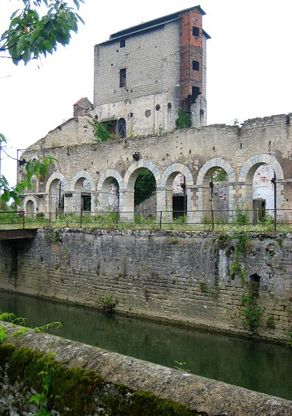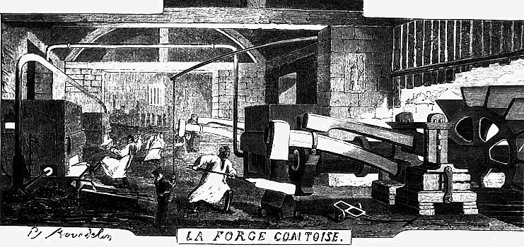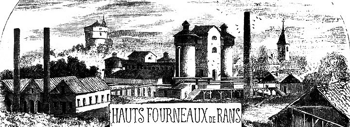 Établies sur la rive du Doubs à Rans par un arrêt du Conseil du roi du 13 janvier 1705, les forges ont d'abord regroupé un haut fourneau, une forge et des feux d'affinerie, état décrit en 1790. L'ensemble est acquis vers 1798 par Léonard Caron puis intégré, dès 1854, à la société des Hauts Fourneaux, Fonderies et Forges de Franche-Comté. Pour en faire le centre principal de fabrication de la fonte et assurer l'approvisionnement de la « forge neuve » de Fraisans, l'usine est partiellement démolie et reconstruite entre 1854 et 1857. Reliées par une voie ferrée aujourd'hui disparue aux installations de Fraisans et à la mine d'Ougney, les forges exploitent un minerai d'abord extrait à Dampierre puis, dès 1846, à la mine à ciel ouvert d'Ougney. En 1857 fonctionnent trois hauts fourneaux au bois et deux au coke ; les fourneaux au bois, moins rentables, sont progressivement arrêtés et démolis vers 1870, si bien qu'en 1877 seul subsiste un haut fourneau au coke. L'usine cesse son activité en 1891. Des améliorations techniques sont attestées : récupération de la chaleur des gaz du gueulard pour la soufflerie en 1840 et, après les reconstructions des années 1850, deux machines soufflantes à six pistons en fonte actionnées par deux machines à vapeur de 100 ch. L'effectif passe de 27 ouvriers en 1840 à environ 250 en 1863, puis à 125 en 1878. Reprise par la société Distibois, l'usine est occupée de 1938 à 1976 pour la fabrication de charbon de bois ; cette entreprise aménage notamment un laboratoire au rez-de-chaussée du logement patronal. Une centrale hydroélectrique, portant la date de 1920, sert de bâtiment d'eau à l'entreprise jusqu'en 1976, puis retrouve une autonomie et reste la seule installation active en 1988, tandis que les autres bâtiments tombent en ruine. Certaines installations et équipements de Distibois ont été démontés ; subsistent des cuves, trois petits moteurs Oerlikon, un ventilateur Meidinger et deux pompes. Inscrits aux monuments historiques le 21 décembre 1984, les bâtiments industriels (à l'exclusion de la centrale) et le logement patronal (façades et toiture) constituent les vestiges protégés de ce site métallurgique, dernier exemple de haut fourneau au coke du Jura. Aujourd'hui, les bâtiments inscrits sont en partie désaffectés et dégradés, certains sans toiture.