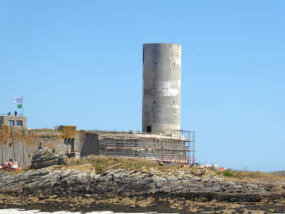 Le fort Cigogne est situé sur l'île Cigogne, dans l'archipel des Glénan (Finistère). Propriété de l'État, il a été inscrit au titre des monuments historiques en 2009 puis classé en 2013 ; il est aujourd'hui loué à l'école de voile Les Glénans, le Conservatoire du littoral en étant affectataire depuis 2016. Un premier projet de défense proposé par Isaac Robelin en 1717 n'eut pas de suite. Plusieurs études furent ensuite élaborées, notamment les projets Marolles (1745), Frézier et Sauvagère (1755), suivis d'un plan de Larcher en 1765 qui proposa une batterie circulaire. Les travaux principaux commencèrent en 1755 sur des plans de Sauvagère, mais l'ouvrage resta inachevé et les travaux furent définitivement arrêtés à la fin de l'Empire. Le fort résulte d'une combinaison de deux batteries curvilignes imbriquées par des contre‑courbes casematées, offrant quatre faces convexes vers l'extérieur. Le dispositif originel comprenait un casernement voûté intégré au rempart et des canons disposés sur une vaste plate‑forme sommitale. La seule modification majeure signalée est l'ajout d'une tour servant d'amer érigée au‑dessus du saillant sud‑est. La réalisation du projet s'étala sur une soixantaine d'années et resta incomplète, le bastion protégeant l'entrée n'ayant pas été construit. Au XIXe siècle plusieurs plans et campagnes de travaux furent dressés, dont des projets signés Pradere (1793), Moulat (1799) et Constantin (1817) pour l'agencement intérieur. La commission mixte de 1841 préconisa des améliorations et attribua au fort un armement de quatre canons de 30 livres servant par une vingtaine d'hommes, auquel fut ensuite ajouté un mortier de 32 cm. Les chapes des casemates furent refaites en 1843‑1845. Après des propositions sans suite en 1847, de nouvelles préconisations aboutirent aux plans du capitaine Rousseau et à des travaux entrepris en 1858 et achevés en 1860, visant notamment l'aménagement de batteries, l'amélioration de l'enceinte et la construction d'une bretèche pour la porte. La couche d'enduit bitumineux présente dans la plupart des casemates pourrait dater de ces travaux ou de ceux du milieu des années 1840. Les plates‑formes pour les quatre canons et le mortier furent réalisées dans les années 1860; deux canons de 30 livres étaient encore en place en 1876. À la fin du XIXe siècle le fort fut déclassé puis, en 1891, des locaux et terrains furent remis au Département de l'Instruction publique pour l'agrandissement du laboratoire de zoologie et physiologie maritimes de Concarneau. Au début du XXe siècle un observatoire océanographique et météorologique fut installé dans une partie du fort pour étudier les migrations de la sardine; M. Béatrix en assura le suivi et un gardien issu des familles de pêcheurs de l'archipel y fut attaché. La tour édifiée sur la partie sud‑ouest en 1911, construite par la Marine nationale, servit d'amer et de repère pour des essais de vitesse entre l'île de Groix et les Glénan. Le fort connut des occupations ponctuelles au XXe siècle, notamment par des Concarnois pendant la Première Guerre mondiale et par une petite garnison allemande durant la Seconde Guerre mondiale. En 1957 les bâtiments et dépendances furent loués au centre nautique Les Glénans par le Collège de France; ce bail fut renouvelé en 1975 et en 1993. La cohabitation avec des pêcheurs, autorisés à occuper les locaux jusqu'à l'arrêt de leur activité, marqua l'usage du fort ; le dernier pêcheur permanent, Pierre Nédelec, y demeura de 1939 à 1974. Dès 1967 le fort sert de base aux stages de l'école de voile Les Glénans, axés sur l'initiation à la croisière, le pilotage et, plus tard, le perfectionnement en voile légère. Dans les années 1950 les stages à Cigogne étaient réservés aux barreurs expérimentés et le site jouissait d'une réputation d'« école de mer » distincte des autres écoles de l'archipel. Les baux précisaient des conditions d'accès pour le personnel de la Marine à l'amer et des obligations en matière de stockage pour le laboratoire de Concarneau. Le fort a fait l'objet d'un programme de restauration à la suite de sa sélection parmi les projets du loto du patrimoine en 2018, des travaux qui se sont achevés en 2024. Les informations reprises ici proviennent notamment des archives et du dossier de prorogation du bail de 1993.