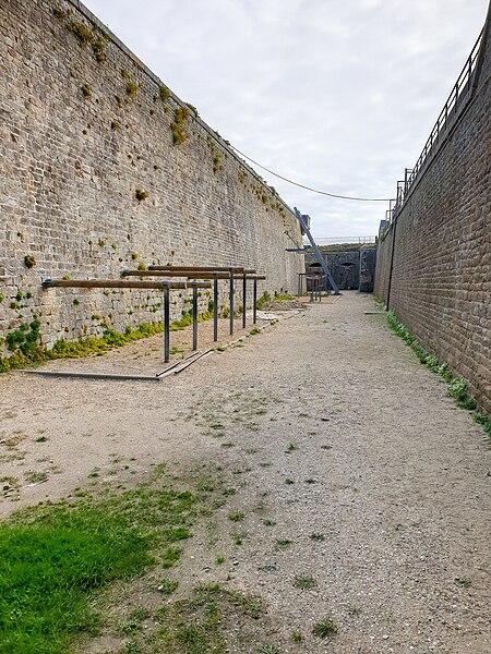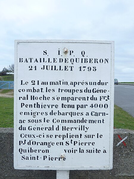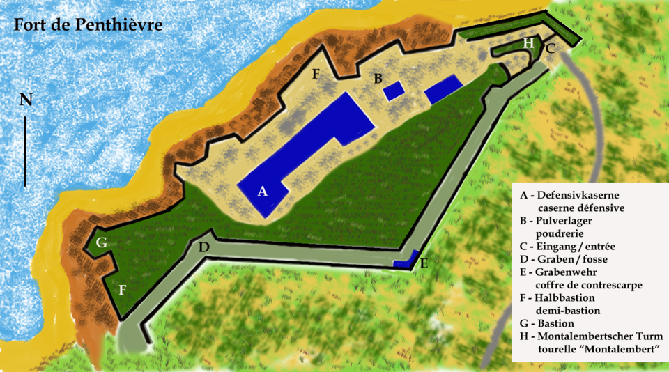 Le fort de Penthièvre, situé à l'entrée de la presqu'île de Quiberon sur la commune de Saint‑Pierre‑Quiberon (Morbihan), commande l'accès au niveau de l'isthme, très étroit à cet endroit. Après le débarquement et le pillage de la presqu'île par les Anglais en 1746, la construction d'un ouvrage défensif fut décidée en 1747 pour renforcer le littoral sud de la Bretagne. Suivant les plans de l'ingénieur de Marolles, le duc de Penthièvre fit édifier le fort sur l'escarpement appelé La Palice, au point le plus étroit de la presqu'île, mais l'ouvrage resta inachevé à la fin de la guerre de Succession d'Autriche. Les travaux reprirent lors de la guerre de Sept Ans et, en 1761, l'ingénieur Fourcroy ajouta trois redoutes le long de la côte sud‑est et referma la gorge du fort par un mur crénelé. Au début des guerres révolutionnaires, un camp retranché fut établi en reliant la redoute la plus proche au fort par deux retranchements. Le 3 juillet 1795 le fort se rendit aux émigrés débarqués par la flotte anglaise, qui établirent ensuite des retranchements au nord pour barrer l'isthme ; il fut repris le 20 juillet par les troupes républicaines du général Hoche, qui exploitèrent la faiblesse de la gorge côté falaise. Dès 1795‑1796 des projets envisagèrent d'améliorer la fermeture du fort et d'y ajouter un réduit côté mer ; ces travaux conduisirent en 1803 au lancement d'une caserne défensive casematée, laissée inachevée à la fin de l'Empire et achevée dans les années 1820‑1830. Sous l'Empire on commença aussi à approfondir le fossé, à aménager des casemates de tir dans la contrescarpe et à creuser des galeries de mine sous le glacis ; ces travaux furent repris et menés à terme dans les années 1830‑1840, période durant laquelle l'enceinte fut entièrement reconstruite. Peu d'aménagements furent réalisés pour le camp retranché et la redoute malgré plusieurs projets, et le fort conserva finalement son magasin à poudre du XVIIIe siècle après l'échec d'un projet de nouveau magasin à la fin des années 1840. En 1847 l'armement attribué au fort, au camp retranché et à la redoute comprenait six canons de 30 livres, deux de 24, un de 12, quatre de 8, deux obusiers de 22 cm en bronze, un de 22 cm en fonte, deux de 12 cm, deux mortiers de 32 cm, dix de 27 cm et cinq de 15 cm. Le décret du 10 août 1853 classa le fort comme poste dans la deuxième série des places de guerre. Bien que sa fonction de réduit de la presqu'île ait été remise en cause par la construction du fort de Saint‑Julien en 1885‑1886, Penthièvre fut conservé et réarmé : au milieu des années 1880 on y construisit des emplacements de tir avec traverses‑abris, un nouveau magasin à poudre et l'armement fut composé de six canons de 120 mm de Bange et de trois canons de 5 De Reffye. Comme d'autres ouvrages littoraux, le fort servit de camp de prisonniers pendant la Première Guerre mondiale. Il est inscrit au titre des Monuments historiques en 1933 et passa la même année à la Marine, restant désaffecté jusqu'à la Seconde Guerre mondiale, pendant laquelle l'armée allemande l'occupa et y aménagea quelques ouvrages pour canons légers et mitrailleuses. Entre avril et juillet 1944, plusieurs dizaines de résistants furent détenus et massacrés au fort ; 59 d'entre eux périrent durant cette période, cinquante le 13 juillet 1944, et plusieurs corps furent enterrés dans une galerie de mine, mémoire à laquelle rend hommage un monument érigé après la guerre. Depuis 1969 le fort sert de centre d'entraînement dépendant du 3e régiment d'infanterie de marine de Vannes.