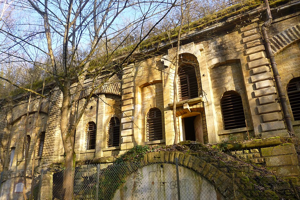 Le fort de Queuleu, dit aussi Feste Goeben sous administration allemande, est un ouvrage de la première ceinture fortifiée de Metz, édifié à la fin du XIXe siècle sur un promontoire au sud-est de la ville. C’est le plus vaste des forts de cette ceinture, avec un front de 800 m et une profondeur de 450 m, organisé selon une enceinte bastionnée prolongée de batteries annexes. L’ouvrage comprend un cavalier central formant réduit, une caserne en béton parementée de pierre de Jaumont avec deux étages de casemates — le seul niveau inférieur ayant servi de prison — ainsi qu’un fossé périphérique maçonné et défendu par parapets d’infanterie et d’artillerie. Conçu dans l’esprit des « forts détachés », il fut doté d’un armement important et sa garnison fut fixée à 2 000 hommes par décret. Après le siège de Metz en 1870, le fort passa sous administration allemande et fut renommé Feste Goeben; les autorités allemandes procédèrent à d’importants renforcements et modernisations, notamment l’installation d’abris d’observation cuirassés, la construction de casemates et de galeries, le creusement de contre-mines, l’implantation de batteries blindées et l’alimentation en eau, électricité et téléphonie. Ces aménagements reflètent les principes d’adaptation à l’artillerie moderne appliqués par les ingénieurs allemands de l’époque. À partir de la fin du XIXe siècle, la construction d’une seconde ceinture de fortifications fit perdre au fort de Queuleu une grande partie de son intérêt stratégique, sans l’empêcher de demeurer un lieu de cantonnement. Durant les deux guerres mondiales le fort connut des usages militaires variés : prisonniers de guerre, camp de regroupement après 1918 et cantonnement de troupes françaises durant la « drôle de guerre ». Repris par l’armée allemande en 1940, il fut successivement utilisé comme camp de détention pour prisonniers de guerre puis, entre octobre 1943 et août 1944, comme kommando du camp de concentration de Natzweiler-Struthof et camp spécial d’interrogatoire de la Gestapo ; entre 1 500 et 1 800 personnes, principalement des résistants, y furent détenues avant leur déportation, souvent dans des conditions de privation et de torture. Intégré au dispositif défensif de Metz à l’automne 1944, le fort fut finalement pris par les forces américaines au cours de la libération de la ville. Après la guerre, le site servit de centre d’internement pour civils considérés « dangereux » entre décembre 1944 et mars 1946, puis d’un camp de prisonniers allemands en 1946-1947; il accueillit ensuite plusieurs centaines de travailleurs indochinois entre 1948 et 1950, dont la présence a laissé des graffitis encore visibles. À partir des années 1970, des actions de mémoire et de conservation se développèrent : la caserne II (casemate A) fut inscrite à l’inventaire supplémentaire des monuments historiques en 1970 et l’ensemble du fort fut inscrit au titre de la loi de 1930 en 1972. Le mémorial départemental de la résistance et de la déportation, porté par un comité mosellan d’associations, fut implanté à l’entrée du fort et inauguré en 1977; une urne contenant des cendres de déportés y fut déposée dans la crypte. Après une période de délaissement et des actes de vandalisme, des opérations de protection et de valorisation ont été engagées, avec une convention de réhabilitation partielle signée en 2016 et des financements de l’État et des collectivités pour créer un centre d’interprétation. Le fort abrite des chiroptères et propose aujourd’hui des usages multiples : lieu de mémoire, visites guidées, parcours de santé et occasionnellement décors de tournage. L’extérieur du site est accessible toute l’année; l’intérieur se visite lors de visites guidées dominicales ou sur rendez-vous pour groupes et scolaires.