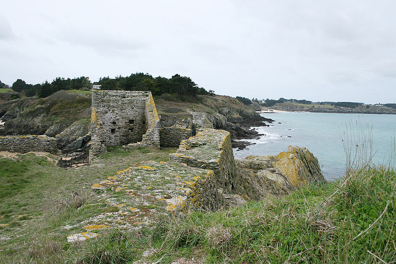 Lors de son passage à Belle-Île en 1689, Vauban préconise la construction d'une batterie sur le Gros Rocher; une batterie semi-circulaire y est effectivement mentionnée dès la fin du XVIIe siècle et en 1705. Des travaux y sont entrepris dans les années 1740 et 1750 et, en 1747, elle est armée de deux canons de 36 livres, un de 24 livres et trois de 12 livres. À la fin du XVIIIe siècle, une seconde batterie est édifiée sur la partie terrestre de la pointe. La position est réarmée au début des guerres de la Révolution et de l'Empire : en 1803 la batterie à la mer porte trois canons de 6 livres et un mortier de 8 pouces tandis que la batterie de terre dispose de deux canons de 36 livres et d'un mortier de 12 pouces ; en 1813 l'armement est alors de trois canons de 18 livres et un mortier de 10 pouces d'un côté, et de deux canons de 36 livres et un mortier de 12 pouces de l'autre. La batterie fait l'objet d'envisagements de réarmement en 1830-1831, puis la Commission mixte de 1841 la conserve en terre et lui attribue un armement de deux canons de 30 livres et de deux obusiers de 22 cm, en prévoyant un corps de garde défensif n°3 comme réduit. Les études commencent en 1847 puis reprennent à partir de 1857; l'emplacement est finalement reculé sur le site de l'ancienne batterie de terre. La nouvelle batterie, bâtie en 1859, comprend une enceinte et un corps de garde crénelé de type 1846 n°3, le corps de garde étant achevé entre 1859 et 1860. La commission de 1859 renforce l'armement par l'ajout d'un mortier de 32 cm destiné à la défense du mouillage du Palais. Sa plate-forme est réalisée en 1862, simultanément à la mise en place des dés en maçonnerie des plates-formes des autres pièces. Après 1870, le Gros Rocher figure parmi les trois sites de Belle-Île modernisés ; une première refonte a lieu entre 1877 et 1881, portant l'armement à deux canons de 24 cm et deux de 16 cm. Après 1880, l'ouvrage est découronné et merlonné puis recouvert de terre; seul subsiste, apparent, la façade sud du réduit, tandis que le magasin à munitions est aménagé sous le roc. Vers 1892 une seconde modernisation accroît l'armement à quatre canons de 24 cm et une batterie annexe, armée de quatre canons de 95 mm, est installée à 200 mètres en arrière. Comme beaucoup d'ouvrages côtiers, la batterie est désarmée en 1915-1916 et son matériel envoyé au front; pendant la Seconde Guerre mondiale elle est utilisée par les Allemands comme dépôt de vivres et de munitions. Le site est vendu à un particulier en 1961.