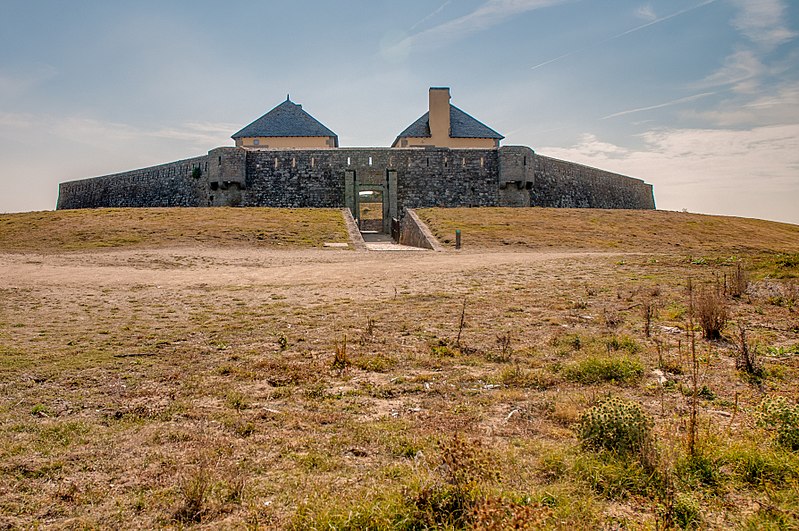 Le fort du Loch, situé à Guidel (Morbihan), est un ouvrage pentagonal irrégulier aux angles amortis dont la pointe tournée vers la mer sépare les deux côtés les plus longs. Au milieu de chacun de ces côtés se trouve une petite caponnière semi‑circulaire, garnie de cinq créneaux pour battre les fossés ; la couverture est en ogive à l’intérieur et en cône à l’extérieur. L’entrée, opposée au large, présente une porte étroite qui a probablement été équipée d’un pont‑levis ; après celle‑ci, deux escaliers mènent aux remparts. Immédiatement derrière les escaliers s’alignent deux petits bâtiments à rez‑de‑chaussée, étage et comble, conçus pour loger la garnison et abriter les munitions. L’ouvrage est ceint d’un large fossé bordé par un mur de contrescarpe ; l’enceinte est par ailleurs percée de barbacanes. Les poternes ont été condamnées par deux coffres d’infanterie flanquant le fossé, et en 1847 des glacis en forte pente ont été aménagés pour dissimuler les poternes et la base des murs. Élevé sur un tertre à une centaine de mètres en retrait de la côte, il domine les plages du Pouldu à l’ouest et la grande plage de Fort‑Bloqué à l’est. Construit pour le duc d’Aiguillon en 1756 comme défense avancée du port de Lorient, soit dix ans après le débarquement des Anglais, il n’a apparemment jamais été engagé en guerre. Le fort du Loch est inscrit au titre des monuments historiques depuis le 1er juin 1960. Des vues panoramiques montrent l’ouvrage sous différents angles, depuis son tertre jusqu’à l’intérieur de la cour et la tour de guet.