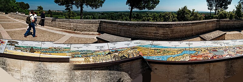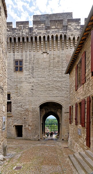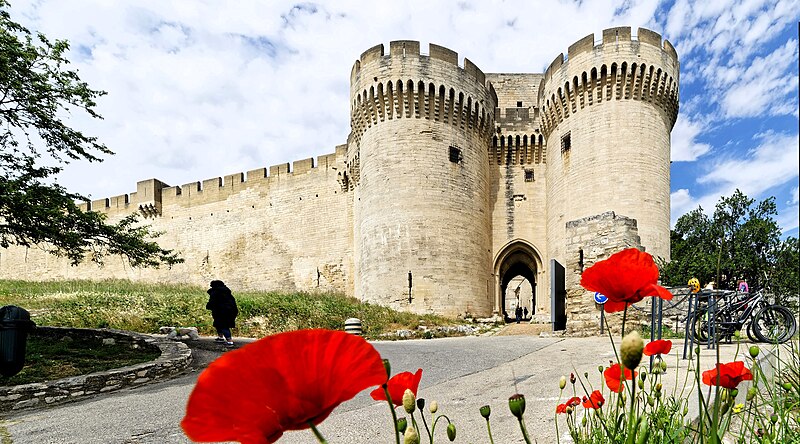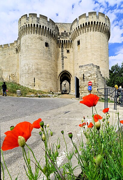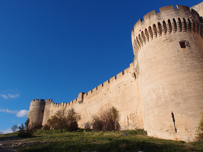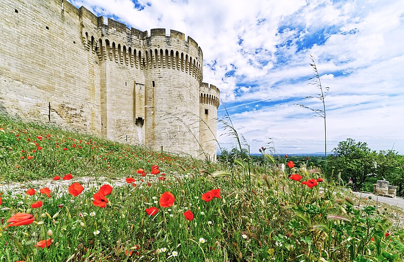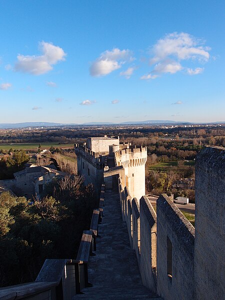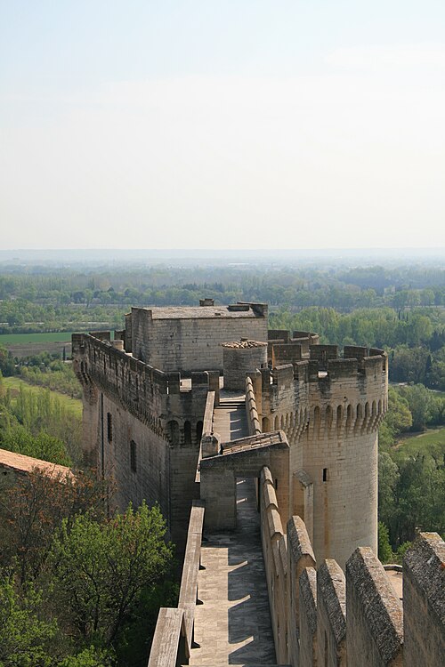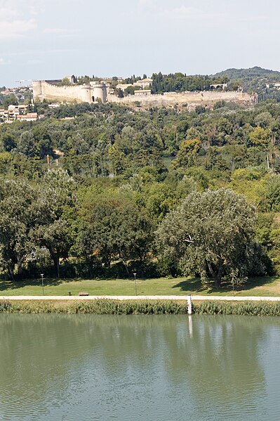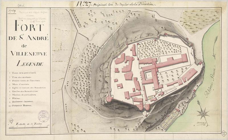 Le fort Saint-André est une enceinte fortifiée implantée sur le mont Andaon qui domine Villeneuve-lès-Avignon. Au sommet du mont, une communauté religieuse est mentionnée dès la fin du premier millénaire ; l'évêque d'Avignon fait alors don des églises Saint-Michel, Saint-André et Saint-Martin, ouvrant une phase de reconstruction. L'église Saint-Martin est rebâtie en 1024 et l'église Saint-André est consacrée en 1118 par le pape Gélase II. Au XVIIe siècle, l'abbaye passe aux mains des Bénédictins de Saint-Maur, qui entreprennent de vastes travaux et font appel à des architectes réputés de la région d'Avignon, dont François de Royers de la Valfenière, Jean Franque, Pierre Mignard et Jean-Ange Brun. En septembre 1792, les religieux sont expulsés ; l'abbaye est vendue comme bien national et, après son acquisition en 1798 par Pierre-Ignace Guiraud, une grande partie des bâtiments monastiques et des constructions mauristes inachevées est livrée à la démolition, à l'exception d'une infime portion. À la fin du XIIIe siècle, Philippe le Bel échange le Maine et l'Anjou contre une seigneurie en Avignon et, pour protéger la frontière marquée par le Rhône, il favorise la fondation de Villeneuve-lès-Avignon ; l'acte de 1292 prévoit la fortification de l'accès au pont d'Avignon. Entre 1300 et 1307 est élevée la tour dite Philippe le Bel sur la rive droite du fleuve. La fortification du mont Andaon est ensuite entreprise sous Jean II le Bon afin d'affirmer la puissance royale face aux terres de l'Empire et à la papauté d'Avignon, et pour protéger l'abbaye bénédictine et le bourg Saint-André, attesté depuis le Xe siècle. Le fort et le mur d'enceinte entourant l'abbaye sont construits en plusieurs phases durant la seconde moitié du XIVe siècle ; Jean de Loubières, dit Jean de Louvres et architecte du palais des papes, achève l'ensemble sur ordre de Charles V. Le site reste occupé par une garnison jusqu'à la Révolution française. Le fort se compose d'une enceinte bordée de tours et d'un châtelet d'entrée encadré par deux tours jumelles, depuis lesquelles la vue s'étend sur Avignon, la vallée du Rhône, le mont Ventoux, les Alpilles et Villeneuve-lès-Avignon. Le châtelet, surnommé « château royal », couronné de mâchicoulis et relié au chemin de ronde, abritait les locaux du châtelain et du viguier ; l'accès se fermait par deux herses dont la salle supérieure contenait les treuils, et la salle du viguier, à droite de l'entrée, porte les armes royales sur une clé de voûte. L'enceinte, longue de 750 mètres, comporte notamment la tour des Masques, située au point le plus élevé ; cette tour, aux dimensions intérieures remarquables, renferme une seule salle très haute marquée de nombreux graffitis de soldats et de prisonniers. Dans l'enceinte subsiste par ailleurs la chapelle de Belvézet, datée du XIIe siècle. Le fort Saint-André est protégé au titre des monuments historiques : il est classé par arrêtés du 25 avril 1903 et du 14 novembre 1925, et l'ensemble de son enceinte et de ses ouvrages de défense est classé par arrêté du 22 janvier 1906. Les parcelles environnantes ont fait l'objet de classements par décrets des 22 janvier 1926, 4 mars 1926, 13 juillet 1926, 20 août 1926 et 8 novembre 1939, ainsi que par arrêtés des 12 et 28 mai 1927, et les parcelles intérieures, dont l'ancienne abbaye Saint-André, sont classées par arrêté du 19 décembre 1947.