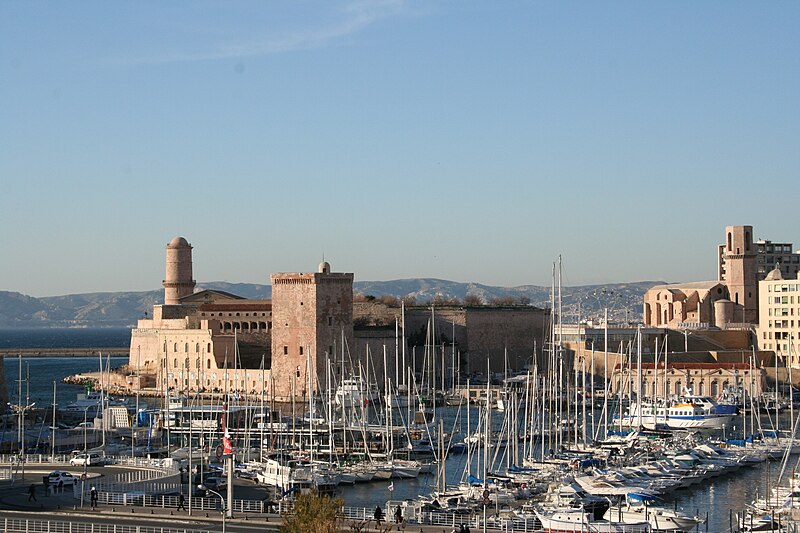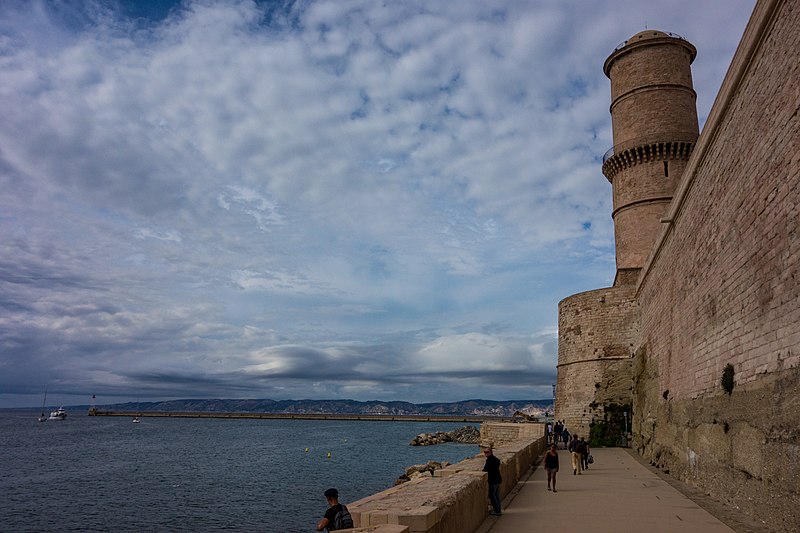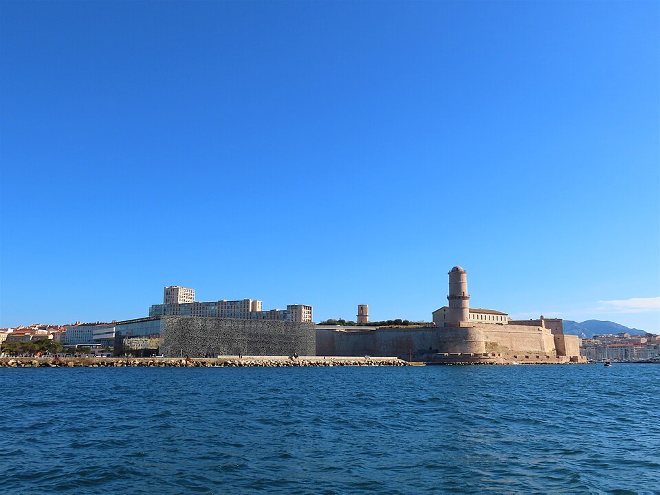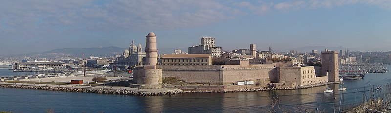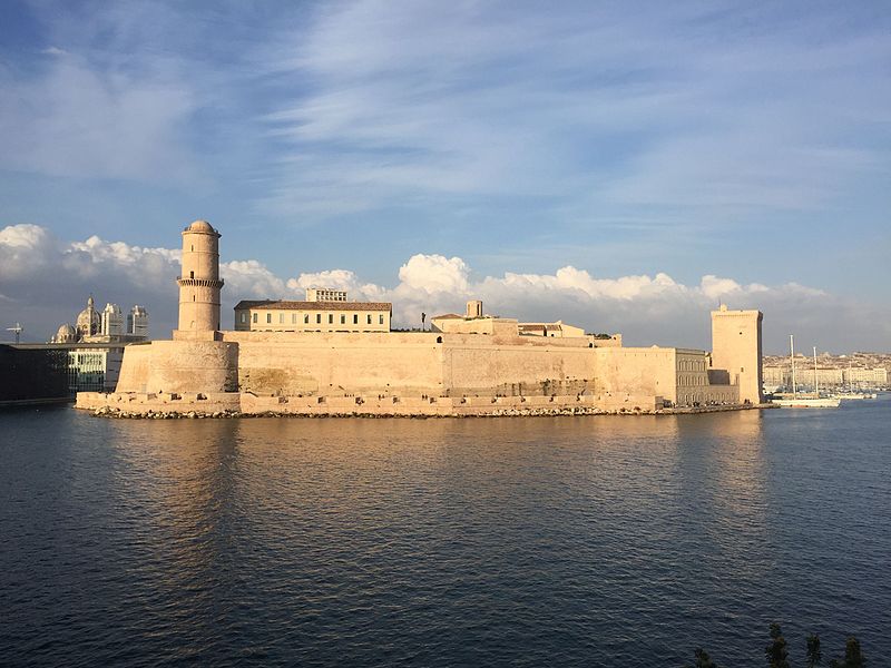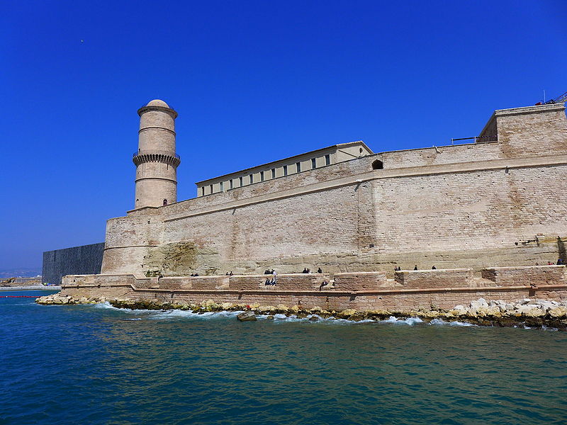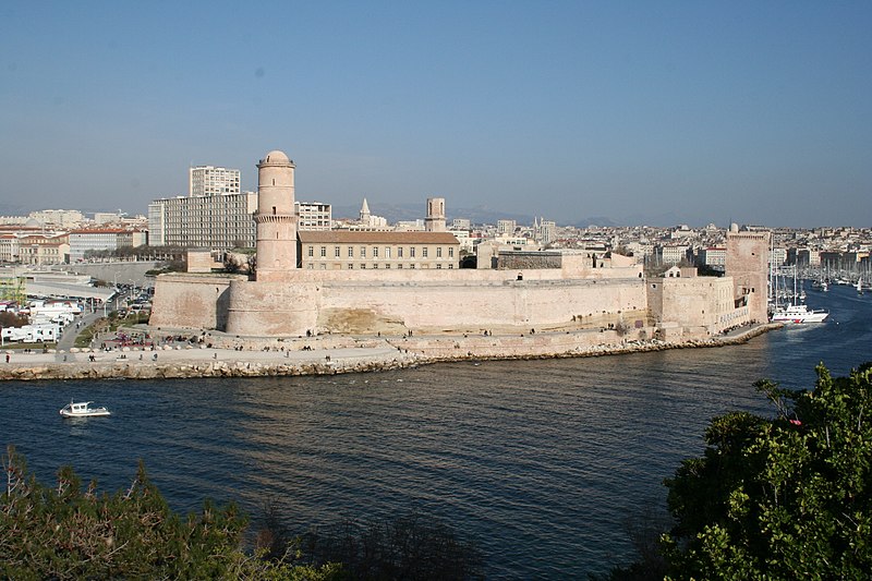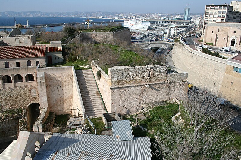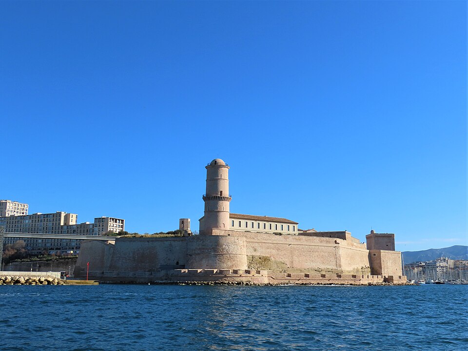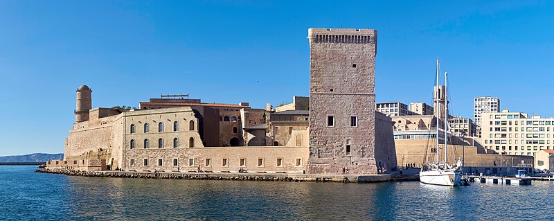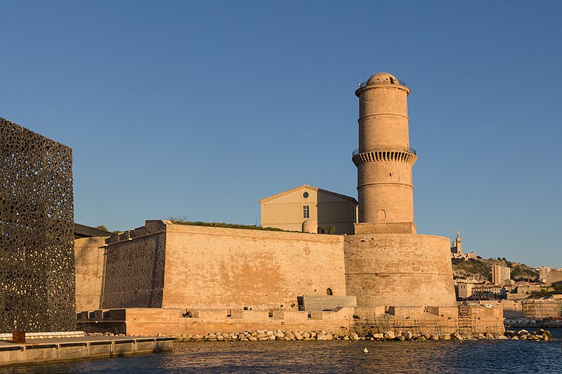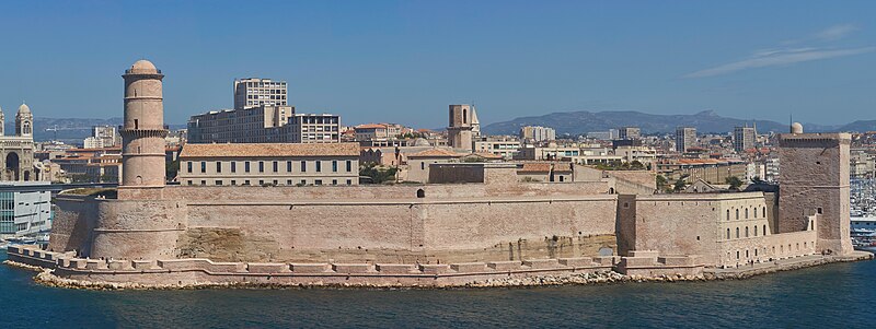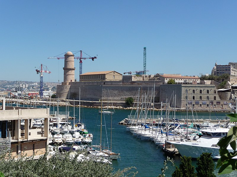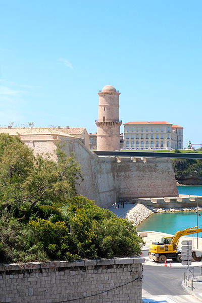 Le fort Saint‑Jean est une construction militaire située à l'extrémité sud‑ouest du quartier du Panier, à l'entrée nord du Vieux‑Port de Marseille, érigée en calcaire rose de La Couronne sur un éperon prolongeant la butte Saint‑Laurent. Il doit son nom à la commanderie des Hospitaliers de Saint‑Jean de Jérusalem, établie sur ce promontoire vers la fin du XIIe siècle. Des vestiges de la première occupation grecque au VIe siècle av. J.-C. ont été découverts sur le site. Au XVe siècle une tour carrée fut construite par le roi René pour garder la passe du port ; cette tour forme aujourd'hui la tour dite du roi René. Une tour ronde, la tour du fanal, a été élevée au milieu du XVIIe siècle pour servir de vigie à l'entrée du port. La construction du fort tel qu'on le connaît résulte des décisions prises après le siège de Marseille et la répression de la révolte municipale : la citadelle Saint‑Nicolas et le fort Saint‑Jean furent prévus pour assurer le contrôle royal sur la ville et ses accès maritimes. La première campagne de travaux, menée par Louis Nicolas de Clerville, comprit l'expropriation des Hospitaliers, la démolition de nombreuses habitations, l'édification d'une enceinte bastionnée autour de la commanderie et de la tour du roi René, ainsi que la construction de casernes et de bâtiments intérieurs. À partir de 1679 Vauban renforça le dispositif en creusant un large fossé inondable et en réalisant une batterie basse à barbette. Les fouilles de 1908 et les carottages de 1991 ont mis en évidence des niveaux archéologiques de l'âge du Fer et des périodes hellénistique et antique. Au Moyen Âge la colline accueillait le château Babon et la commanderie des Hospitaliers, qui possédait une église et un palais du commandeur, lieu de réception de personnages de haut rang. Le système défensif médiéval comprenait la tour Maubert, ou tour de la chaîne, qui participait avec des chaînes tendues entre les rives à la fermeture de la passe du port ; ce dispositif resta en usage jusqu'au XIXe siècle. La tour du roi René, reconstruite après le pillage de 1423, et la tour du fanal constituent les éléments les plus visibles de l'ancienne commanderie intégrée ensuite dans l'enceinte du fort. Pendant la Révolution le fort servit de prison pour Philippe Égalité et des membres de sa famille et fut aussi le théâtre de violences, dont le massacre de Jacobins le 5 juin 1795. Les révolutionnaires endommagèrent une partie de l'enceinte en 1790 ; des réparations et des reprises furent effectuées au XIXe siècle, souvent avec des matériaux différents de la pierre d'origine. Le comblement et l'aménagement du canal reliant le Vieux‑Port à la Joliette, la création du bassin de la Joliette et la réalisation de ponts tournants transformèrent l'assiette et l'accès du fort au XIXe et au début du XXe siècle. Le pont transbordeur, inauguré en 1905, reliait les rives du Vieux‑Port jusqu'à sa destruction en 1944. Lors de l'occupation allemande pendant la Seconde Guerre mondiale, des munitions furent entreposées dans le fort et leur explosion à la Libération détruisit plusieurs bâtiments anciens. Après la guerre l'armée procéda à des nivellements sans reconstruire l'ensemble des édifices ; le fort fut cédé au ministère des Affaires culturelles et classé monument historique en 1964. De 1967 à 1971 de nouveaux bâtiments furent édifiés dans la partie basse pour accueillir le service des antiquités sous‑marines, puis le DRASSM ; ces locaux ont été intégrés au MuCEM en 2013. Des restaurations et fouilles ont été conduites entre 1975 et 2000, portant notamment sur les tours, la chapelle Saint‑Jean et la galerie des officiers, ainsi que sur l'aménagement d'un mémorial des camps de la mort dans un ancien bunker allemand. Relié au bâtiment contemporain du MuCEM par une passerelle, le fort abrite aujourd'hui des espaces d'exposition, des ateliers, des salles dédiées à l'histoire du site et des jardins plantés d'espèces méditerranéennes. La tour du roi René est consacrée à l'histoire du lieu, la chapelle accueille des expositions, le bâtiment Georges‑Henri Rivière sert pour des expositions temporaires et le bâtiment ancien du DRASSM accueille l'Institut Méditerranéen des Métiers du Patrimoine, tandis que des parcours muséographiques et extérieurs offrent des vues sur le port et ses installations.