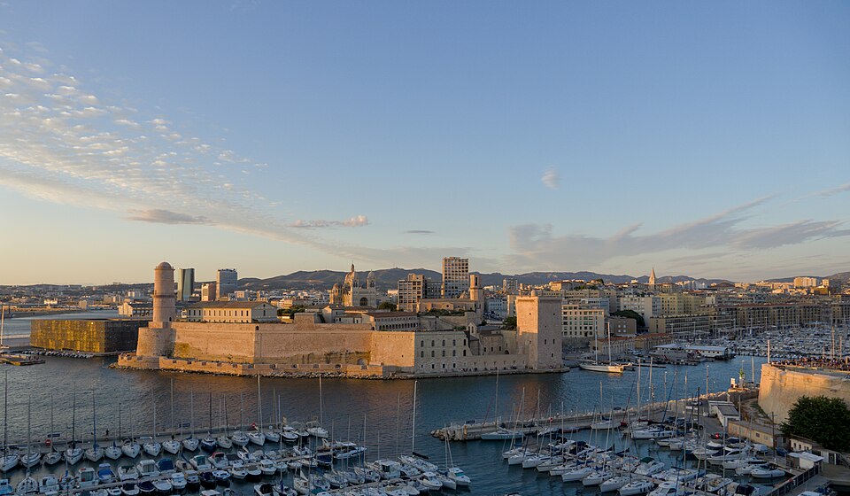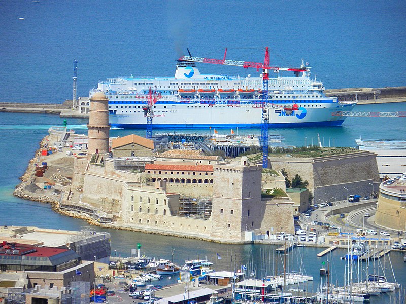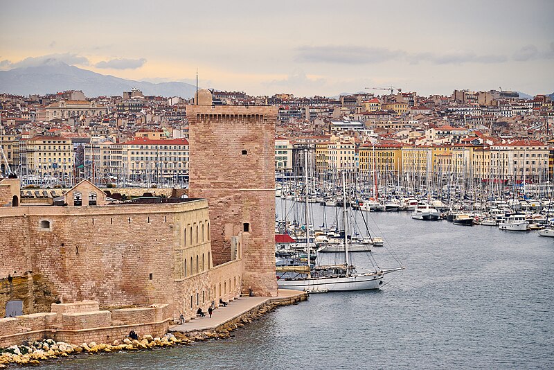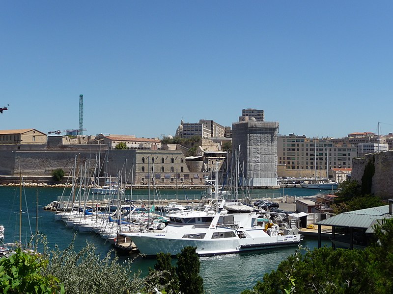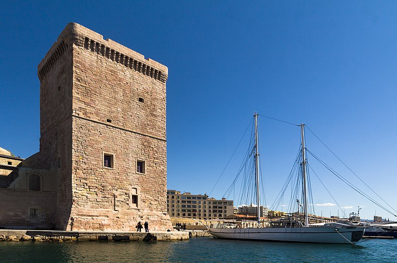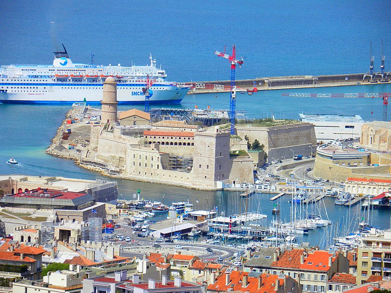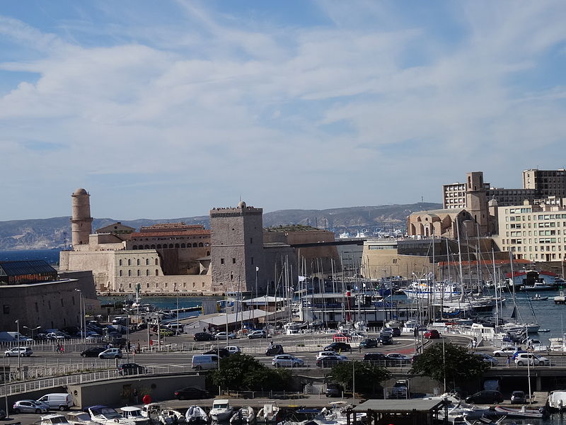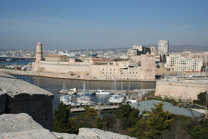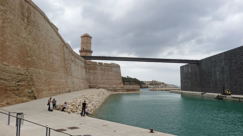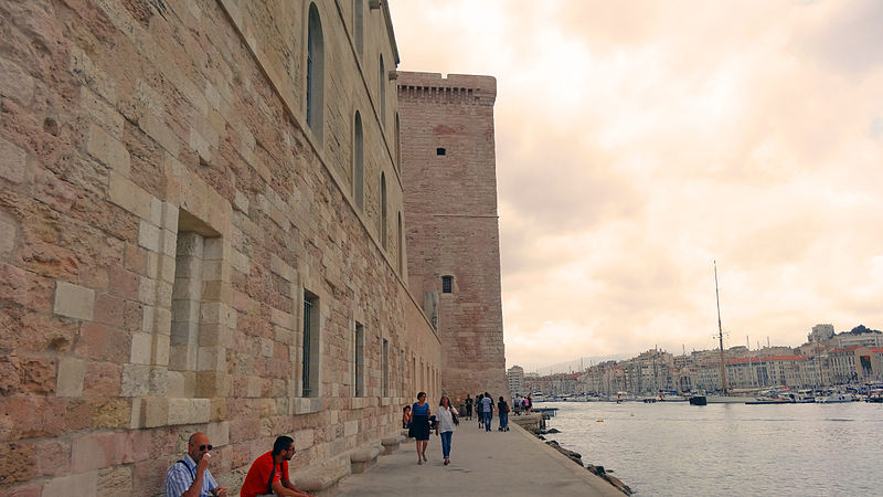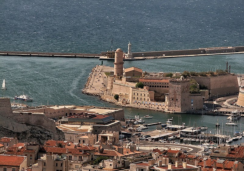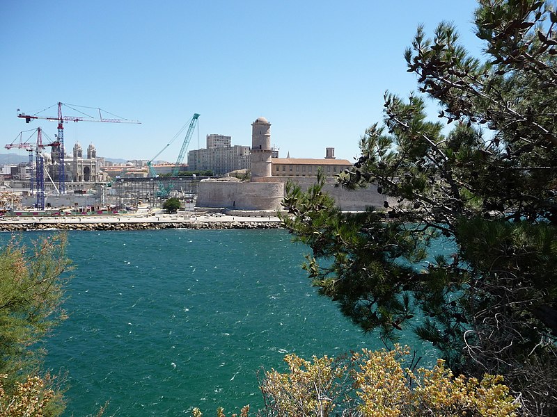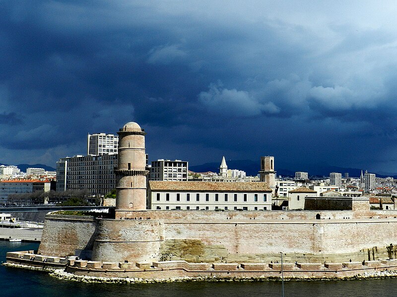 Le fort Saint‑Jean est une construction militaire située à l'extrémité sud‑ouest du quartier du Panier, à l'entrée nord du Vieux‑Port de Marseille, érigée en calcaire rose de La Couronne sur un éperon prolongeant la butte Saint‑Laurent. Il doit son nom à la commanderie des Hospitaliers de Saint‑Jean de Jérusalem, établie sur ce promontoire vers la fin du XIIe siècle. Des vestiges de la première occupation grecque au VIe siècle av. J.-C. ont été découverts sur le site. Au XVe siècle une tour carrée fut construite par le roi René pour garder la passe du port ; cette tour forme aujourd'hui la tour dite du roi René. Une tour ronde, la tour du fanal, a été élevée au milieu du XVIIe siècle pour servir de vigie à l'entrée du port. La construction du fort tel qu'on le connaît résulte des décisions prises après le siège de Marseille et la répression de la révolte municipale : la citadelle Saint‑Nicolas et le fort Saint‑Jean furent prévus pour assurer le contrôle royal sur la ville et ses accès maritimes. La première campagne de travaux, menée par Louis Nicolas de Clerville, comprit l'expropriation des Hospitaliers, la démolition de nombreuses habitations, l'édification d'une enceinte bastionnée autour de la commanderie et de la tour du roi René, ainsi que la construction de casernes et de bâtiments intérieurs. À partir de 1679 Vauban renforça le dispositif en creusant un large fossé inondable et en réalisant une batterie basse à barbette. Les fouilles de 1908 et les carottages de 1991 ont mis en évidence des niveaux archéologiques de l'âge du Fer et des périodes hellénistique et antique. Au Moyen Âge la colline accueillait le château Babon et la commanderie des Hospitaliers, qui possédait une église et un palais du commandeur, lieu de réception de personnages de haut rang. Le système défensif médiéval comprenait la tour Maubert, ou tour de la chaîne, qui participait avec des chaînes tendues entre les rives à la fermeture de la passe du port ; ce dispositif resta en usage jusqu'au XIXe siècle. La tour du roi René, reconstruite après le pillage de 1423, et la tour du fanal constituent les éléments les plus visibles de l'ancienne commanderie intégrée ensuite dans l'enceinte du fort. Pendant la Révolution le fort servit de prison pour Philippe Égalité et des membres de sa famille et fut aussi le théâtre de violences, dont le massacre de Jacobins le 5 juin 1795. Les révolutionnaires endommagèrent une partie de l'enceinte en 1790 ; des réparations et des reprises furent effectuées au XIXe siècle, souvent avec des matériaux différents de la pierre d'origine. Le comblement et l'aménagement du canal reliant le Vieux‑Port à la Joliette, la création du bassin de la Joliette et la réalisation de ponts tournants transformèrent l'assiette et l'accès du fort au XIXe et au début du XXe siècle. Le pont transbordeur, inauguré en 1905, reliait les rives du Vieux‑Port jusqu'à sa destruction en 1944. Lors de l'occupation allemande pendant la Seconde Guerre mondiale, des munitions furent entreposées dans le fort et leur explosion à la Libération détruisit plusieurs bâtiments anciens. Après la guerre l'armée procéda à des nivellements sans reconstruire l'ensemble des édifices ; le fort fut cédé au ministère des Affaires culturelles et classé monument historique en 1964. De 1967 à 1971 de nouveaux bâtiments furent édifiés dans la partie basse pour accueillir le service des antiquités sous‑marines, puis le DRASSM ; ces locaux ont été intégrés au MuCEM en 2013. Des restaurations et fouilles ont été conduites entre 1975 et 2000, portant notamment sur les tours, la chapelle Saint‑Jean et la galerie des officiers, ainsi que sur l'aménagement d'un mémorial des camps de la mort dans un ancien bunker allemand. Relié au bâtiment contemporain du MuCEM par une passerelle, le fort abrite aujourd'hui des espaces d'exposition, des ateliers, des salles dédiées à l'histoire du site et des jardins plantés d'espèces méditerranéennes. La tour du roi René est consacrée à l'histoire du lieu, la chapelle accueille des expositions, le bâtiment Georges‑Henri Rivière sert pour des expositions temporaires et le bâtiment ancien du DRASSM accueille l'Institut Méditerranéen des Métiers du Patrimoine, tandis que des parcours muséographiques et extérieurs offrent des vues sur le port et ses installations.