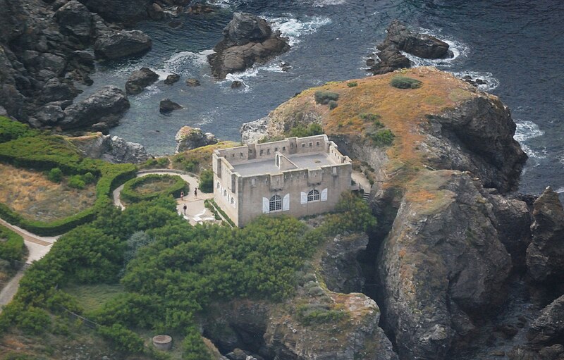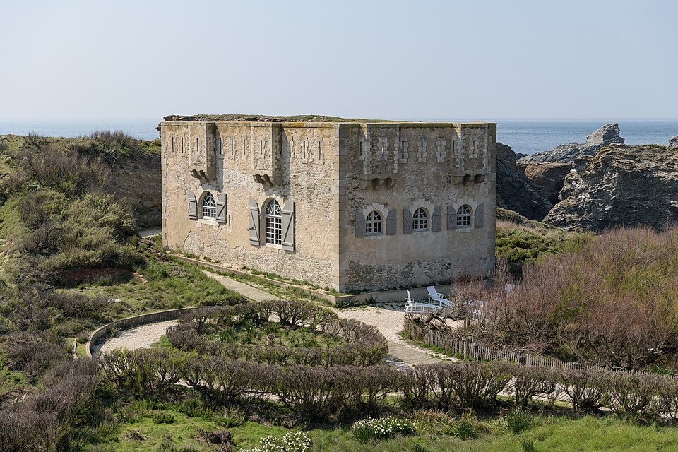 Le corps de garde crénelé, de type 1846 n°3 et daté de 1859, a été adapté pour servir de poste garde-côtes ; sa version modifiée pour 30 hommes, comparable à celles de Port Maria et de Port Fouquet, a été construite entre 1860 et 1861. Des fortifications sont signalées à la pointe des Poulains depuis le XVIIIe siècle, lors des guerres de Succession d'Autriche et de Sept Ans. Pendant la guerre d'Amérique puis les conflits de la Révolution et de l'Empire, plusieurs batteries et bâtiments sont établis à la pointe et sur l'îlot. Les états de 1803 et de 1813 mentionnent une batterie orientale armée de deux canons de 24 livres et d'un mortier de 12 pouces, dotée d'un corps de garde, d'un magasin à poudre et d'un fourneau à réverbère. La Commission mixte d'armement de 1841 remplace les batteries par un poste garde-côtes, armé d'un obusier de montagne de 12 cm et d'une garnison de 30 hommes d'infanterie. Le poste n'est pas conservé par la Commission de défense des côtes en 1874 et le site est abandonné après 1870 ; il est déclassé par la loi du 27 mai 1889, versé aux Domaines le 26 juin 1890 et vendu le 11 septembre 1891. Un négociant de l'île acquiert alors la propriété, puis la revend le 11 novembre 1894 à la comédienne Sarah Bernhardt. Sarah Bernhardt transforme le corps de garde en résidence estivale : elle aménage les pièces, ouvre des fenêtres et larges baies, dessine le jardin et y installe un décor d'inspiration théâtrale. Elle étend son domaine sur 46 hectares, y construit la villa des Cinq Parties du Monde et la villa Lysiane, ainsi qu'une basse-cour, des courts de tennis, un jardin irrigué et un mur d'enceinte, et acquiert ensuite le manoir voisin de Penhoët. Pendant environ trente ans la comédienne passe ses vacances d'été sur place, recevant amis et invités et maintenant une ménagerie. Le poste est temporairement réoccupé par l'armée pendant la Première Guerre mondiale, et un projet d'installation d'un poste de défense contre les sous-marins armé de deux canons de 90 mm est envisagé en 1917-1918. En 1939-1940, un détachement assure la surveillance du phare des Poulains ; un poste d'écoute microphonique est également mentionné. Pendant l'Occupation, les villas servent au cantonnement des troupes chargées de la surveillance du littoral et le manoir de Penhoët est détruit en 1944. À la mort de Sarah Bernhardt, son fils vend la propriété ; celle-ci passe entre plusieurs particuliers et est progressivement laissée à l'abandon avant d'être rachetée par le Conservatoire du littoral en 2000. Le site est restauré en 2006 et aménagé en parcours muséographique consacré à la présence de Sarah Bernhardt à Belle-Île ; il est géré par la Communauté de communes de Belle-Île-en-Mer. Le fort est transformé en musée Sarah Bernhardt dans les années 2000 et accueille environ 25 000 visiteurs par an ; le décor théâtral y a été reconstitué à partir de photos et documents d'époque, et des vêtements donnés par la famille sont exposés. Le fort et le domaine sont la propriété du Conservatoire du littoral ; le site est inscrit aux monuments historiques depuis 2000 et labellisé Maisons des Illustres en 2011. Une partie importante du domaine d'origine a été aménagée en golf de Belle-Île-en-Mer à partir de 1984. Le musée de la citadelle de Le Palais conserve et expose également des objets personnels, des sculptures et des tableaux réalisés par Sarah Bernhardt ainsi que des documents et affiches d'époque.