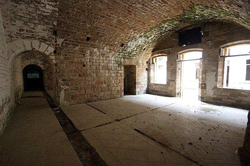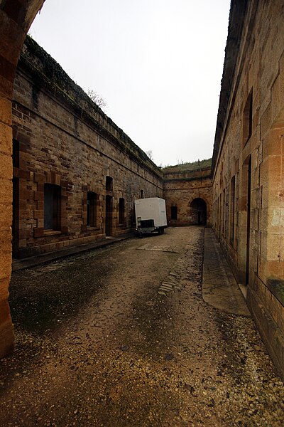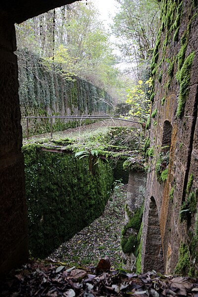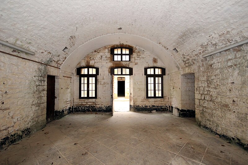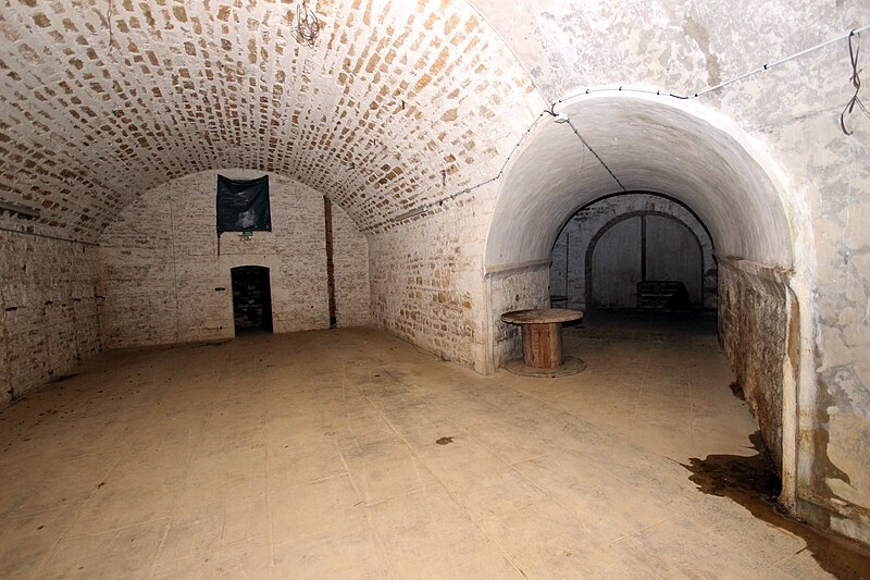 Le réduit présente une configuration particulière : isolé dans l'enveloppe, il comporte une brisure créant un angle rentrant pourvu d'un coffre double d'escarpe et d'un coffre double de contrescarpe avancé dans le fossé, disposition peu commune dans le système Séré de Rivières. Ces coffres sont devancés par leur propre fossé traversé par une gaine d'accès crénelée faisant office de caponnière, de sorte que les feux couvrent des fronts qui ne se croisent pas selon le schéma classique. L'entrée du réduit s'ouvre dans une petite courtine ; le porche débouche sur un tunnel flanqué de logettes, dont l'une contient un puits, puis sur une première cour en puits de lumière bordée de sept chambrées chauffées chacune par un âtre. Deux magasins à poudre, alignant quatre créneaux à lampe, devaient contenir respectivement 100 tonnes et 80,6 tonnes de poudre, le second étant plus court de 2,25 mètres. Un second tunnel donne accès à une deuxième cour plus petite et orientée selon la brisure du périmètre, tandis qu'une galerie de circulation arrière permettait de joindre tous les locaux du réduit sans traverser ces cours.