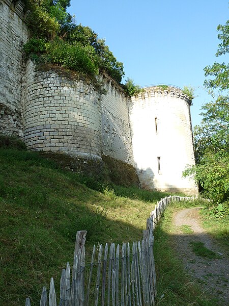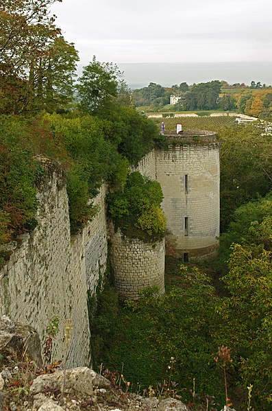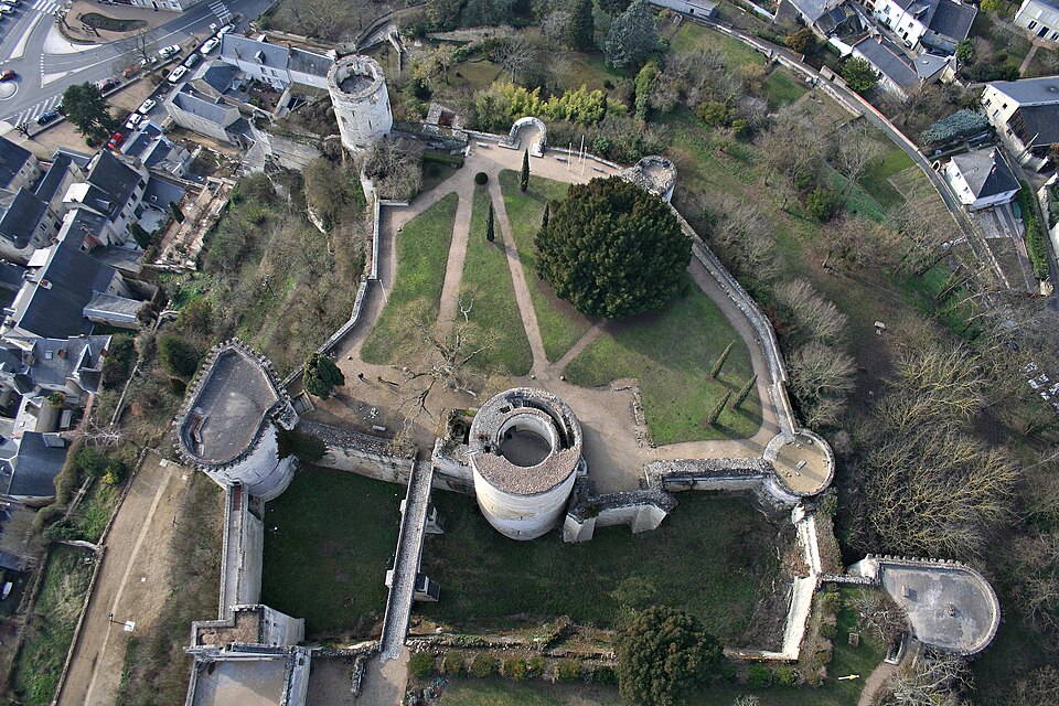 Le château se structure entre le VIe et le Xe siècle autour d'un logis comtal et d'une tour, protégés par une enceinte séparée à l'extrémité est du promontoire, distincte d'une basse‑cour ouest abritant les installations économiques. Tenue au Xe siècle par les comtes de Blois, la forteresse connaît des transformations au XIe siècle, avec l'agrandissement de l'enceinte et la fondation d'un prieuré. Au XIe siècle, l'Anjou prend la Touraine et le château est cédé à Geoffroy Martel puis à son neveu Foulques IV, qui achève la nouvelle enceinte et finance des travaux. Sous les comtes d'Anjou et les Plantagenêt, la fortification s'intensifie : le plateau central est progressivement fortifié et un premier logis apparaît à l'emplacement du logis royal actuel.