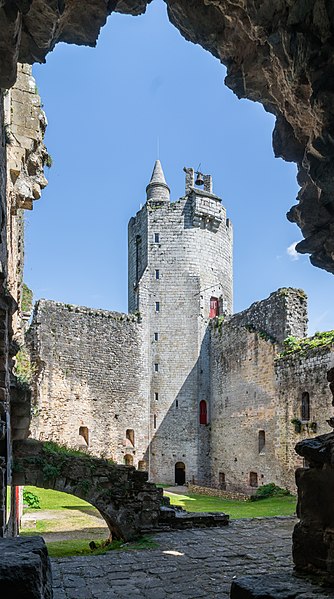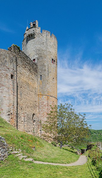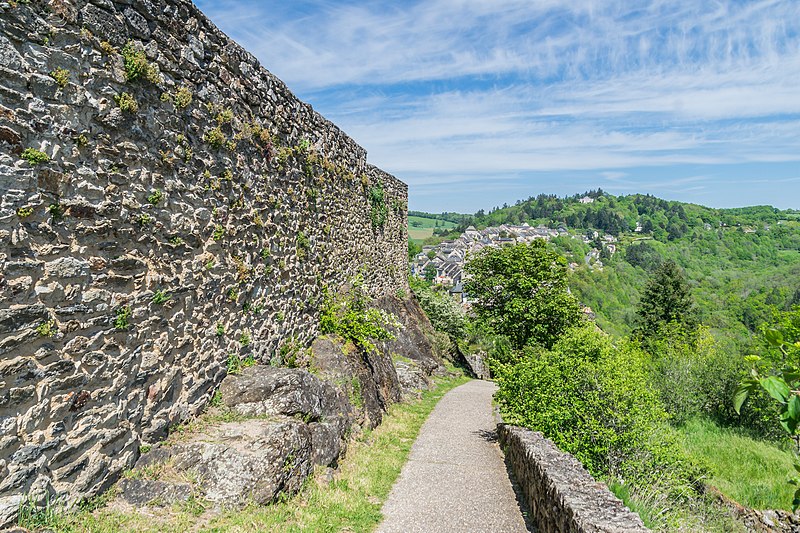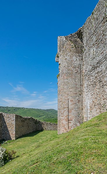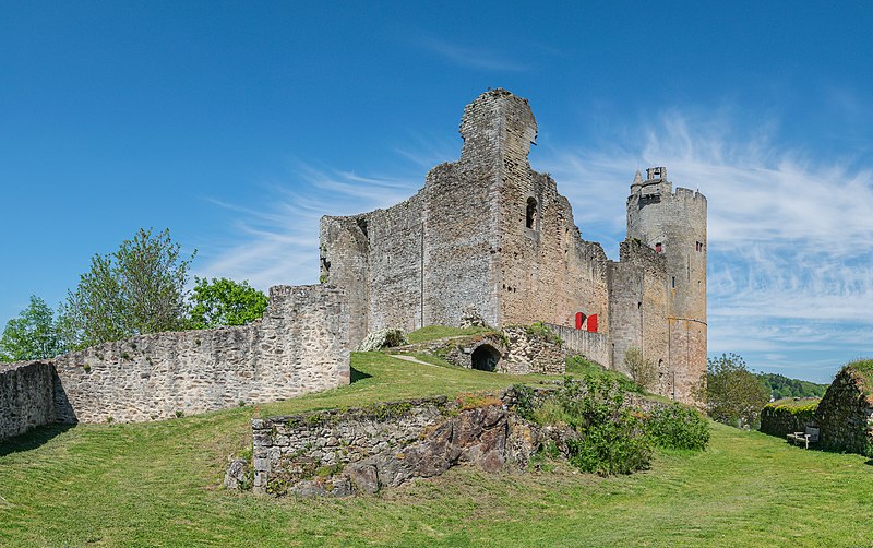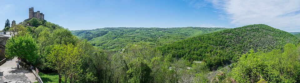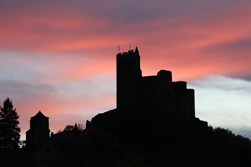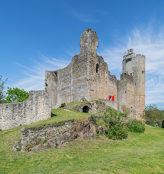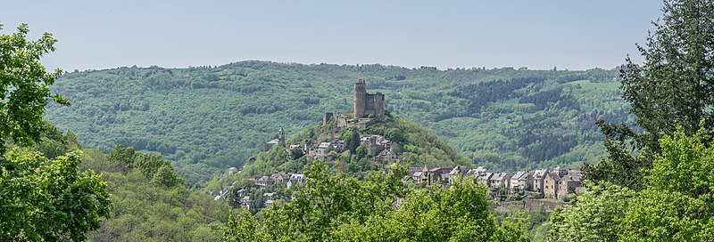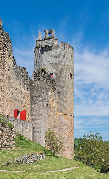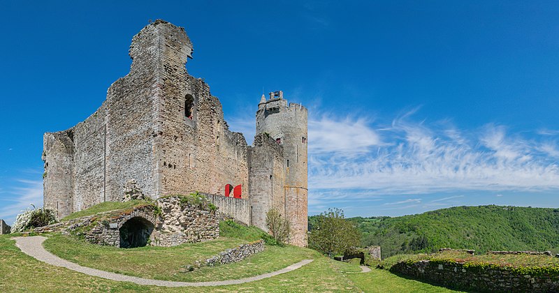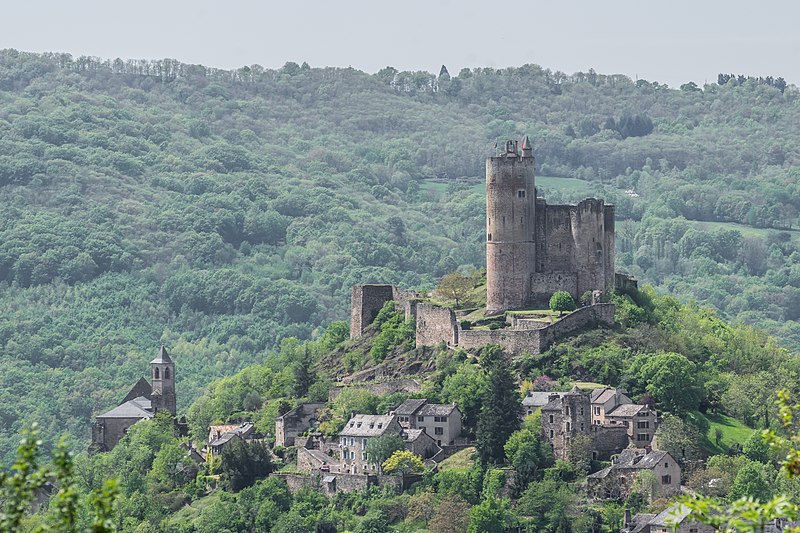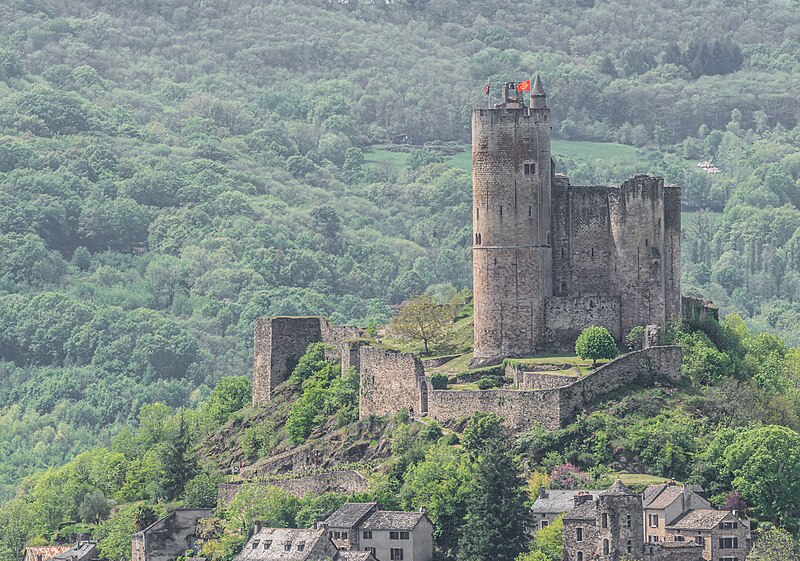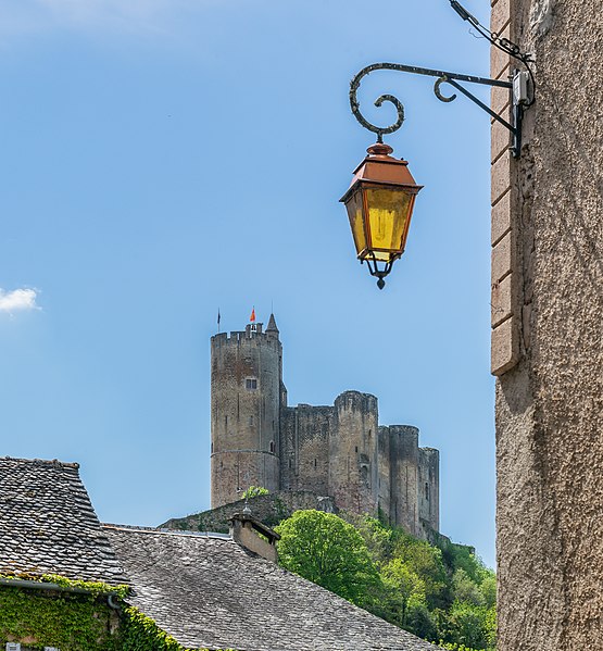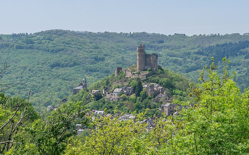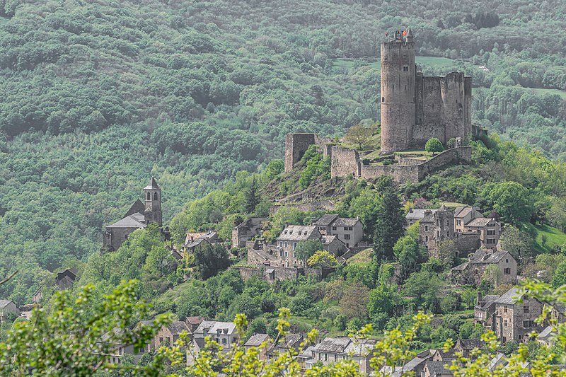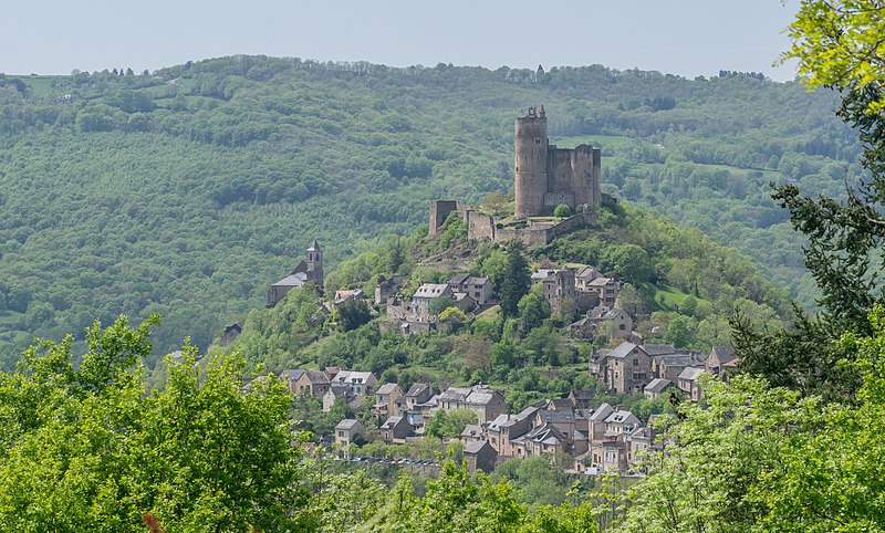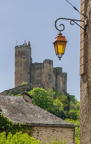 Le site domine la basse vallée de l'Aveyron, à la limite occidentale du Rouergue, et occupe une position stratégique sur la voie entre Rodez et Saint-Antonin. Les vestiges du château et de sa deuxième enceinte sont classés au titre des monuments historiques par arrêté du 3 juillet 1925. Les origines du castrum remontent au début du second millénaire, un château primitif ayant été élevé vers 1100 sur un escarpement ; de cette phase du XIIe siècle subsiste notamment la base de la tour carrée. Au XIIIe siècle, Alphonse de Poitiers fit édifier l'essentiel du château neuf en s'appuyant sur l'ancien donjon roman ; la construction du nouveau logis castral fut conduite à partir de 1253 et a transformé l'ensemble en une forteresse de type philippien. Cette place fortifiée contrôlait les défilés de l'Aveyron et sécurisait les communications avec les provinces rattachées à Toulouse ; elle passa dans le domaine royal après le mariage de Jeanne de Toulouse avec Alphonse de Poitiers. Face à une révolte locale, Alphonse fit renforcer les défenses selon les méthodes militaires ducales, multipliant les lignes d'enceinte et remaniant la tour romane. Les courtines élevées à grande hauteur et les nouvelles tours rondes, posées directement sur le roc, limitaient la menace des engins de siège et de la sape ; leurs archères, hautes de 6,80 mètres, permettaient la défense dans plusieurs directions et la terrasse du donjon communiquait visuellement avec les autres points forts de la région. Au cours du Moyen Âge la place connut plusieurs épisodes conflictuels : elle fut successivement enjeu de luttes régionales, occupée un temps par les Anglais à la fin du XIVe siècle avant d'être reprise par les habitants, et resta jusqu'en 1370 un centre administratif important avant que le siège de la sénéchaussée ne soit transféré à Villefranche-de-Rouergue. Pendant les guerres de Religion le château fut tenu par un seigneur protestant puis assiégé et rendu aux forces catholiques. En 1643, la forteresse fut brièvement prise par les paysans révoltés lors de la jacquerie dirigée par Bernard Calmels, avant d'être reprise par les troupes royales ; les meneurs furent arrêtés et sévèrement réprimés. Après ces événements le château perdit progressivement toute utilité militaire et tomba en délabrement ; la ruine de l'édifice est signalée dès 1614 et l'abandon s'accentua après la vente comme bien national à la Révolution, moment où des démolitions furent pratiquées pour récupérer des pierres. Un achat par un aubergiste puis l'arrêt des démolitions au XIXe siècle, après un accident de chantier selon des témoignages, marquèrent la fin de la carrière. Le monument a ensuite fait l'objet de travaux de restauration entrepris à la fin du XIXe siècle par l'abbé Brunis puis poursuivis et amplifiés par la famille Cibiel, qui a contribué à sa sauvegarde et à sa mise en valeur touristique. Les vestiges présentent des aménagements intérieurs remarquables : un couloir dérobé relie la tour romane à la chapelle du donjon, des culots sculptés ornent la salle d'armes et la chapelle conserve des traces de décors peints, tandis qu'un système de conduites en pierre acheminait les eaux pluviales vers une citerne. Une succession de seigneurs, châtelains et viguiers se sont succédé jusqu'à la Révolution, témoignant de l'importance administrative et judiciaire du lieu. Le site, ouvert à la visite, offre un témoignage notable de l'architecture militaire du XIIIe siècle et de son évolution sur un éperon étroit et escarpé.