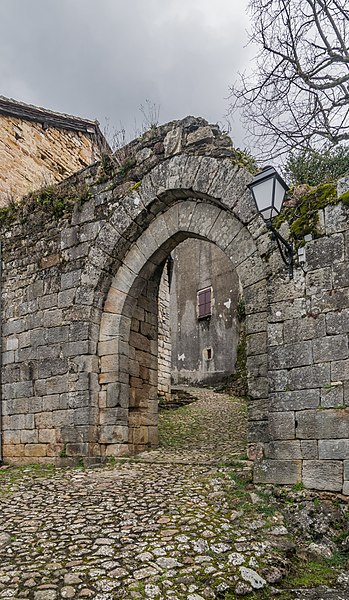 Les fortifications de Capdenac, dans le Lot, forment un long développement de murailles comprenant sept portes. Elles protègent un éperon barré de plan triangulaire, dominé sur deux côtés par des falaises surplombant le Lot ; le troisième côté constituait l’axe de défense le plus vulnérable. Le donjon, décrit comme du XVe siècle et doté d’un escalier menant à la plateforme, constitue la dernière défense de la citadelle et était accessible depuis l’intérieur par une porte située au niveau du deuxième étage. Le site fut fortifié dès l’époque gauloise et a été évoqué comme l’un des emplacements possibles d’Uxellodunum. Les Romains aménagèrent des défenses sur le côté faible et y ouvrèrent une porte flanquée de deux tours circulaires, dite porte de César, détruite en 1865. Ces aménagements romains furent ensuite conservés par les Wisigoths. Au Haut Moyen Âge, saint Géraud, arrière‑petit‑fils de Charlemagne, fut seigneur de Capdenac et fit édifier une église et un prieuré dans le castrum. En 1214, des routiers s’emparèrent de la place forte ; à la demande de Philippe Auguste, Simon de Montfort réunit les États du Quercy pour obtenir leur reddition, acte signé à Figeac le 23 octobre. La ville, florissante au Moyen Âge, possédait un donjon dit construit au XIIIe siècle pour loger une garnison. Les Anglais tentèrent de s’emparer de la place en 1317 sans succès, mais Capdenac fut ensuite prise pendant le règne de Charles VI. Aux XIVe et XVe siècles, les fortifications furent renforcées : sur le côté faible, deux enceintes séparées par un fossé multipliaient les obstacles pour les assaillants. Pour atteindre la ville, il fallait franchir successivement quatre portes : la première enceinte comportait trois portes successives — une dans une encoche sous les remparts, la porte de César puis la porte de Gergovie — formant une barbacane. Venaient ensuite un fossé taillé dans le rocher franchi par un pont‑levis, puis la porte comtale donnant sur la rue de la Peyrolerie, ancienne voie commerciale. Au‑delà se trouvait la citadelle, organisée en deux enceintes indépendantes des remparts urbains. Sur le côté sud, la porte dite Vigane ou Narbonnaise, protégée par une barbacane, commandait l’accès à la route reliant Limoges à Narbonne. En 1445, Charles VII saisit les biens du comte d’Armagnac Jean IV, dont Capdenac, et les réunit à la Couronne. François Ier donna ensuite Capdenac au duc d’Alençon Charles IV, puis la seigneurie passa à Galiot de Genouillac, grand maître de l’artillerie et sénéchal de Quercy ; sa fille contribua à la diffusion du calvinisme. La majorité de la population devint protestante et Capdenac figura parmi les quarante places fortes mentionnées par l’édit de Nantes. Sully acquit Capdenac en 1614, y séjourna après sa disgrâce et fit améliorer les fortifications extérieures ; en 1622, après le siège de Montauban, il remit la place au roi Louis XIII. Les fortifications de Capdenac ont été classées au titre des monuments historiques le 16 mai 1911.