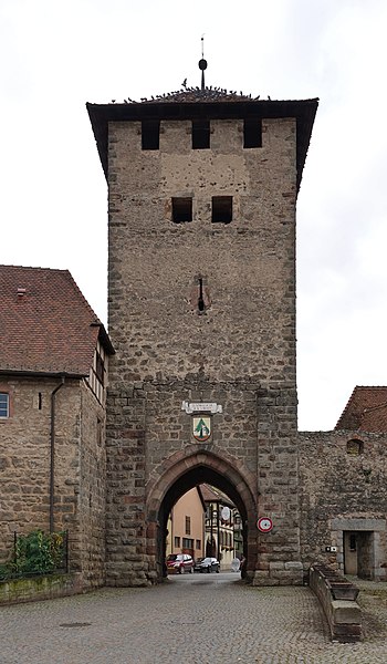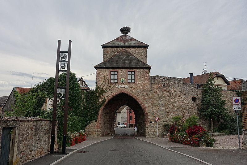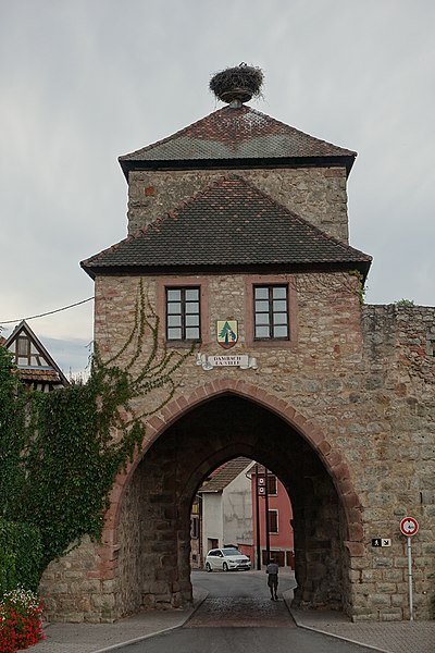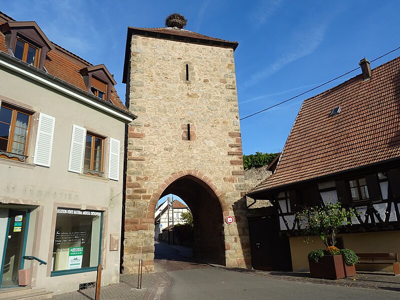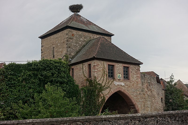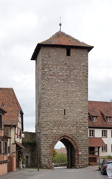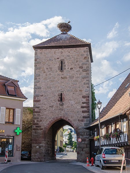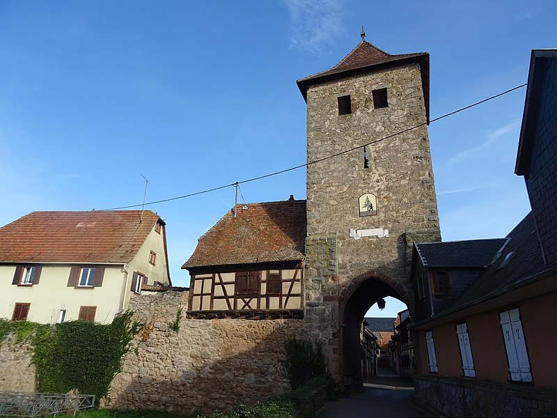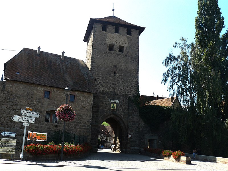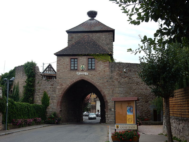 Les vestiges des anciennes fortifications se situent autour de Dambach-la-Ville, dans le Bas-Rhin. L’ensemble est inscrit au titre des monuments historiques depuis 1930. La porte de Dieffenthal (Neutor), accompagnée de la maison 466 rue des Juifs, est datée des XIVe et XVIIIe siècles ; une autre mention lui attribue une datation au XVe siècle. La porte de Blienschwiller (Obertor ou Grendelthor) est signalée au premier quart du XIVe siècle et remaniée au XVIIe siècle ; elle est parfois datée de 1335. La porte d’Ebersheim (Untertor ou Niedertor) est également datée du premier quart du XIVe siècle. Une inscription sur la tour est de la porte d’Ebersheim commémore la pose de sa première pierre en 1323, et une porte est citée dès 1320, ce qui laisse supposer que le mur d’enceinte a été entrepris avant l’élévation du lieu au rang de ville. Dambach, qui disposait d’un cimetière fortifié, a été élevé au rang de ville par l’évêque Bertold de Bucheck entre 1330 et 1343, selon les documents. Parmi ces vestiges subsistent plusieurs portes surmontées de tours ; la maison du gardien accolée à la Neutor porte la date 1740. Ces éléments témoignent des phases de construction et des remaniements successifs des fortifications de la ville.