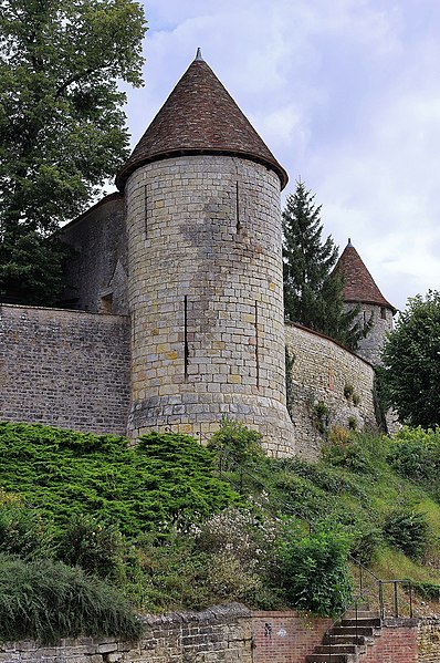 Les anciennes fortifications urbaines de Dun-sur-Auron forment un ensemble défensif monumental implanté dans la commune éponyme, dans le Cher (région Centre-Val de Loire), et sont inscrites aux monuments historiques depuis le 20 décembre 1988. La ville fut très tôt fortifiée et intégrée au domaine royal à partir de 1101 : trois enceintes successives, appelées Châtelet, Châtel-Vieil et Châtel-Neuf, furent édifiées et, à partir de la fin du XIIe siècle, la majeure partie de la population y vivait. Placée à la fois en sentinelle et en bastion avancé du domaine capétien, la cité dut ses principales défenses à la construction de la Grosse Tour, réalisée par Philippe Auguste. Entre 1202 et 1203, ce souverain fit modifier l’ensemble défensif par l’adjonction de courtines, de tours de flanquement et d’un donjon. L’enceinte se prolonge par des courtines bordées de larges fossés et renforcées de tours circulaires en saillie ; deux de ces tours subsistent encore. L’enceinte renfermait une maison-forte, remplacée au XVe siècle par un logis appelé Salle-le-Roi puis Palais-Royal, qui accueillit des services judiciaires et une église qui fut peut‑être une chapelle. D’importantes réparations furent effectuées en 1356 et dans la seconde moitié du XVe siècle, tandis que les tours furent transformées en prisons au XVIe siècle. Les courtines furent en partie arasées au début du XVIIIe siècle ; le donjon fut partiellement démoli au XVIIe siècle puis arasé en 1847. Aujourd’hui, une portion des courtines et trois tours de flanquement demeurent visibles. Les murs de l’enceinte associent des tronçons de plan ovale et carré, doublés d’un fossé, et enserrent une motte castrale. Outre la Grosse Tour, aujourd’hui en ruines, l’ensemble conserve les tours dite de la Meusnerye, du Bergier et Colin, reliées par des courtines. Des maçonneries en appareillage et des toitures recouvrant d’anciens postes de sentinelles sont encore lisibles sur le site. Lors d’investigations préventives à la fin des années 1950, la mission Buzançais a établi un plan au sol permettant de restituer l’aspect ancien de la construction. Sur le plan toponymique, la cité médiévale apparaît sous le nom de Duno en 1095, appellation postérieure à la dénomination Dunesi attestée au haut Moyen Âge (période carolingienne, 880), les deux toponymes provenant vraisemblablement du gallo‑romain Dunum, qui renvoie à la notion d’enceinte fortifiée selon certains spécialistes comme Ernest Nègre.