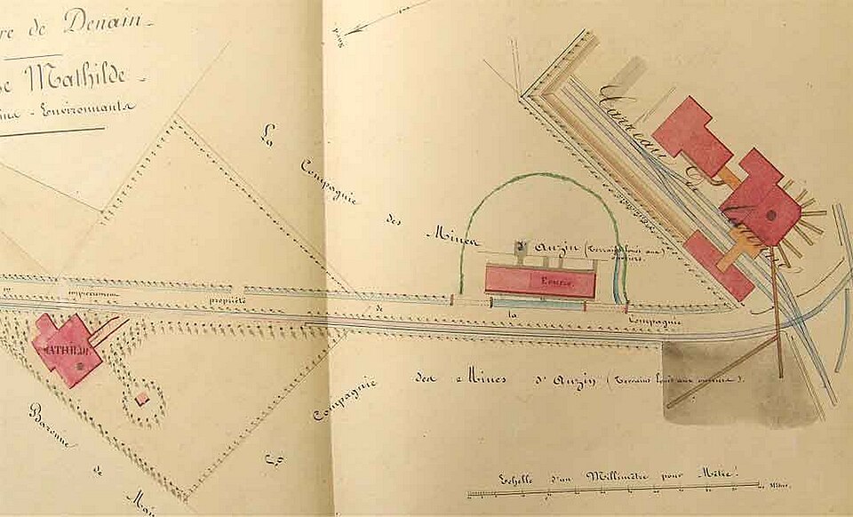L'ancienne fosse Mathilde, située à Denain, appartient à la Compagnie des mines d'Anzin et porte le nom de Mathilde Bonaparte. Le fonçage a commencé le 15 juillet 1831 ; la fosse a été mise en communication avec la fosse Turenne en 1833. Le puits a d'abord été creusé à la main jusqu'à 13 mètres, puis l'épuisement des eaux a été assuré par une pompe à vapeur ; le terrain houiller a été atteint à 71 mètres. Plusieurs veines furent découvertes successivement : Président vers 103 m, puis Edmond et Gailleteuse aux alentours de 155–178 m, plus tard la veine Zoé à 303 m et, par sondage, la veine Le Bret à 338 m. Une machine d'extraction de type Edward fut installée, puis remplacée par des modèles plus puissants : celle de 1855 permit notamment la remontée du personnel sans recours aux échelles. En 1837 la production atteignait environ 22 000 tonnes, faisant de Mathilde la fosse la plus rentable de Denain ; jusqu'en 1862 elle avait fourni 549 000 tonnes au total. Malgré des modernisations, le gisement s'est révélé pauvre et l'extraction a été arrêtée en 1862 ; le puits a ensuite été conservé pour renforcer la ventilation de la fosse Bayard voisine, avant d'être comblé et serrementé en 1863. Les machines ont été récupérées pour d'autres fosses, tandis que les installations de surface ont été largement conservées et reconverties en logements, un projet étudié dès 1863. La rampe d'accès et les murs ont été préservés, la cheminée a été détruite ; le corps de bâtiment donnant sur la rue Mathilde accueillait la salle de triage, le bâtiment de recette et le chevalement avec son large pignon, l'édifice opposé abritait la machine d'extraction, des caves ont été aménagées sous la rampe et la cour centrale, et une écurie jouxtait le logement arrière. Entre 1960 et 1980, un bâtiment couvert par un toit en appentis a été accolé à l'ancienne chaufferie. Au début du XXIe siècle, Charbonnages de France a matérialisé la tête du puits et le BRGM y effectue des inspections annuelles. La fosse Mathilde est inscrite aux monuments historiques par arrêté du 22 septembre 2010 et figure, depuis le 30 juin 2012, sur la liste du patrimoine mondial de l'Unesco comme composante du site n° 17 du bassin minier.