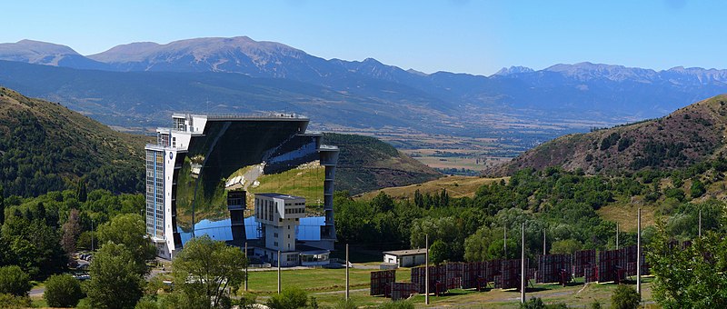 Le four solaire d'Odeillo témoigne de l'action du physicien Félix Trombe et de la recherche publique française dans le domaine de l'énergie solaire. Cette parabole de 50 mètres de haut, 60 mètres de large et 30 mètres de profondeur comprend 63 héliostats et fonctionne à l'énergie solaire ; il a été mis en service en 1969. Sa puissance thermique est d'un mégawatt et il concentre près de 10 000 fois la puissance du soleil, atteignant jusqu'à 3 300 °C sur un échantillon de carbone. Avec le four solaire de Parkent en Ouzbékistan, il figure parmi les deux plus grands fours solaires du monde. Le laboratoire associé doit sa renommée mondiale à son savoir-faire unique dans l'étude, par voie solaire, des phénomènes à haute température et du comportement des matériaux en conditions extrêmes. Les fours d'Odeillo et de Mont-Louis ont servi de modèles à l'international, montrant le potentiel et les usages de l'énergie solaire.