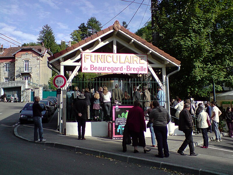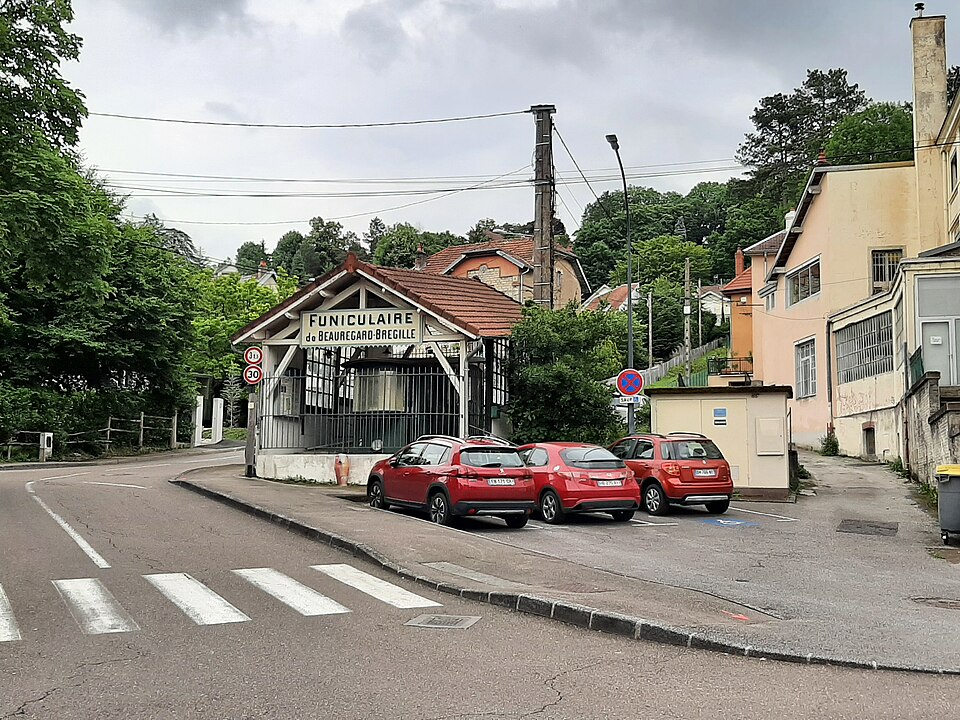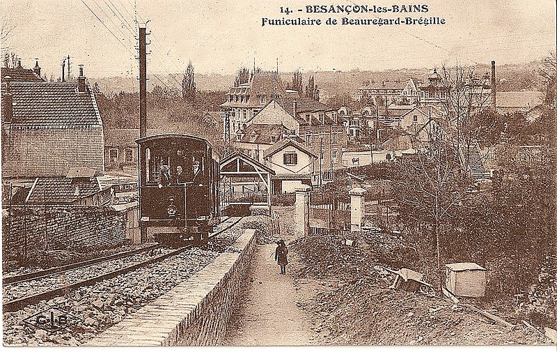 Le funiculaire de Beauregard-Bregille, dit funiculaire de Bregille, reliait la Mouillère au plateau de Beauregard-Bregille à Besançon. L'idée revient à Émile Picard dès 1899 ; après plusieurs projets et adaptations, le tracé définitif, qui combine un tronçon funiculaire pour la partie la plus raide et un projet de tramway pour la suite, est réalisé entre 1911 et 1912 et le premier voyage public a lieu le 24 novembre 1912. Conçu pour faciliter l'accès des curistes et des habitants aux bois et aux équipements du plateau, le funiculaire contribua de façon décisive au développement de Bregille. La Compagnie fondée par Picard connaît des périodes florissantes puis des difficultés financières exacerbées après le décès de son fondateur ; la municipalité rachète finalement la ligne et crée la Régie du funiculaire. La fréquentation connaît des pics importants, notamment 176 000 voyageurs en 1929 et 222 000 en 1945, puis décline durablement à partir des années 1970 sous l'effet de l'essor de l'automobile et de l'ouverture d'un service de minibus desservant le plateau. La voie, longue de 423 mètres pour un dénivelé de 73 mètres, présente une pente maximale de 22 %, une voie unique à écartement de 1,05 m et un évitement de type Abt ; les rails sont de type Vignole et la machinerie d'origine a été réalisée par les établissements Louis de Roll, le moteur électrique installé datant de 1938 (Alsthom). Les voitures, longues de 8,50 mètres et pesant 6,20 tonnes, comportaient deux compartiments voyageurs, un espace bagages et des plates-formes pour les wattmans ; les caisses en bois ont été largement reconstruites en 1981, avec des vitrages en plexiglas bombé et une toiture refaite. La ligne comportait un passage à niveau non gardé, élément inhabituel pour un funiculaire, et la communication entre les voitures et la machinerie se limitait à une sonnerie de départ. Après des inspections révélant en 1987 d'importantes détériorations de la voie et des aiguillages, la circulation est interrompue ; un devis de remise en état a été établi mais, faute de financements, les voitures ont été démontées et la régie a été liquidée en janvier 1989. Différents projets de réouverture ont été étudiés dans les années suivantes, certains abandonnés et la gare haute a été partiellement reconvertie en logement social. L'association Les Amis du Funiculaire de Besançon, créée en 2005, a entrepris la protection et la remise en valeur du site : la voiture n°2 et la gare basse ont été restaurées et présentées au public dès 2007, l'inscription au titre des Monuments historiques a été prononcée le 27 janvier 2011 et des animations ainsi que des visites guidées sont régulièrement organisées. L'association poursuit ses démarches de réhabilitation ; une étude technique lancée en 2022 et présentée début 2023 vise à chiffrer la remise en fonctionnement du funiculaire.
