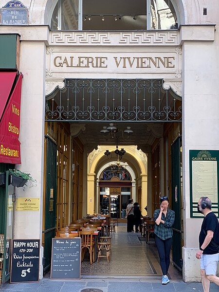 La galerie Vivienne, anciennement galerie Marchoux, est un passage couvert du 2e arrondissement de Paris. Sa création revient à M. Marchoux, notaire et président de la chambre des notaires, qui réunit l'hôtel qu'il habitait au 6 rue Vivienne, une maison au 4 rue des Petits-Champs et une propriété au passage des Petits-Pères pour y faire édifier le passage sur les plans de l'architecte François-Jacques Delannoy. Inaugurée sous le nom de Marchoux, elle prend celui de galerie Vivienne en 1825. Construite sur un terrain étroit et irrégulier, la galerie conserve une grande partie des constructions préexistantes, contrainte qui a dicté sa composition. Longue de 176 mètres et large de 3 mètres, elle est inscrite au titre des monuments historiques depuis le 7 juillet 1974; les façades remarquables se situent aux 4 rue des Petits-Champs, 5-7 rue de la Banque et 6 rue Vivienne. Le passage appartient à une copropriété privée, mais l'accès piéton est libre pendant les heures d'ouverture; il est desservi par la station de métro Bourse. Delannoy a conçu un décor néo-classique d'inspiration pompéienne sous une verrière élégante, mêlant mosaïques, peintures et sculptures qui célèbrent le commerce. Le sol en mosaïque sur fond de terrazzo est signé Giandomenico Facchina et Mazzioli et rappelle le style des mosaïques de la rue de Rivoli. La galerie principale, longue de 42 mètres, débouche sur une rotonde vitrée coiffée d'une coupole hémisphérique, éléments d'origine. Les travaux de restauration ont mis en valeur les ornements qui décorent les fenêtres en demi-lune — caducées, ancres et cornes d'abondance — ainsi que les statues de déesses et de nymphes de la rotonde. L'architecte reprend le vocabulaire du style Empire avec pilastres, arcs et corniches, et multiplie les symboles de richesse et de commerce tels que cornes d'abondance, couronnes de laurier, gerbes de blé, palmes et caducées d'Hermès. La galerie a tiré profit de son emplacement, à proximité du Palais-Royal et des boulevards, et a longtemps attiré une clientèle nombreuse. On y trouvait tailleurs, bottiers, marchands de vin, merciers, opticiens, bonnetiers, verriers, restaurateurs, confiseurs, marchands d'estampes et la librairie Petit-Siroux fondée en 1829; le Cosmorama s'y est installé en 1828. Malgré son animation, certains contemporains critiquaient sa faible hauteur sous plafond et sa largeur, jugeant les marchandises peu luxueuses; elle resta toutefois l'un des passages les plus fréquentés de la ville. La galerie fut léguée en 1859 par Anne Sophie « Ermance » Marchoux à l'Institut de France afin que ses revenus soutiennent les artistes titulaires du prix de Rome; Ermance, sculptrice, a réalisé les deux statues encadrant l'entrée. Après le Second Empire, la galerie décline quelque peu, victime du déplacement des commerces prestigieux et des transformations urbaines, et elle est plusieurs fois menacée de destruction, notamment après un déclassement en 1926. Un incendie en 1891 au n°43 causa la mort de trois personnes. En crise dans les années 1960, les boutiques ferment puis sont rachetées par l'artiste Huguette Spengler, qui y installe des créations oniriques; la galerie renaît dans les années 1980 avec l'arrivée de créateurs tels que Jean-Paul Gaultier et Yuki Torii en 1986, et connaît depuis un renouveau de l'activité commerciale et culturelle. Des travaux de restauration ont été menés à la fin du XXe siècle sous la direction de l'architecte Marc Saltet et une rénovation d'ampleur en 2016 a suscité des polémiques sur l'intégrité du lieu. Le 12 septembre 2019, la galerie a été jumelée avec les Galeries royales Saint-Hubert de Bruxelles. Parmi les lieux de mémoire, Kenzō Takada y a ouvert sa première boutique et présenté son premier défilé à Paris. Aujourd'hui la galerie accueille des boutiques de mode, des commerces de décoration et des cafés, et reste un exemple marquant des passages couverts parisiens.