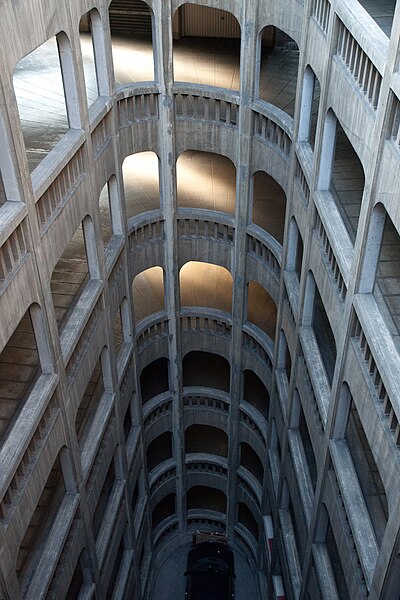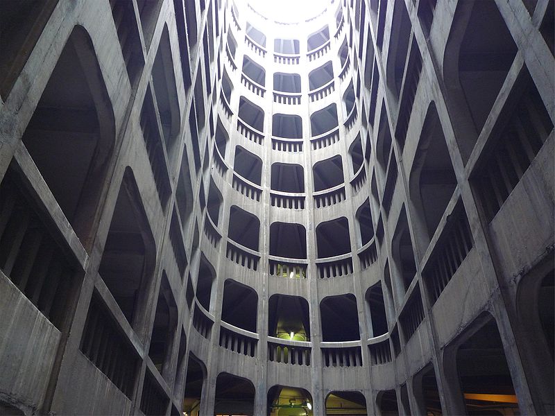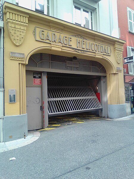 Le garage hélicoïdal de Grenoble, situé au centre d'un îlot avec une entrée sur la rue de Bressieux, est une copropriété de stationnements automobiles de style Art déco en béton armé. Il a été conçu par les géomètres-experts Louis Fumet et Louis Noiray et réalisé de 1928 à 1932 par l'entreprise C.P.E.C.A. pour Joseph Gallizia, promoteur, propriétaire d'une partie du terrain et entrepreneur du second œuvre. Construit en béton armé, son ossature a été coulée au fur et à mesure de l'avancement, en réemployant les mêmes coffrages. À l'origine il comprenait 225 boxes disposés latéralement et desservis par une rampe hélicoïdale continue montant sur sept niveaux avec une pente uniforme de 5 %. La rampe engendre un grand vide intérieur de base elliptique, adapté à la parcelle rectangulaire, et est surmontée d'une verrière au sommet. La voie de circulation, large de 7 mètres, effectue un peu plus de sept révolutions — la première se trouvant en sous-sol — et permet le croisement des véhicules sans gêne. L'ouvrage comporte quinze demi-niveaux, la dalle inférieure étant située à 2,80 mètres sous le niveau de la rue et le sommet de la verrière culminant à 24,2 mètres ; un réservoir d'eau de lavage occupe la partie supérieure. Les plans de ferraillage révèlent huit joints de dilatation qui découpent le bâtiment en parties indépendantes. En 1952 une surélévation a ajouté un étage de boxes, portant le total à 252 emplacements après création également de deux parkings au sol. Chaque box est calculé pour supporter une voiture d'environ 3 tonnes et est équipé d'un éclairage, d'une prise d'eau pour lavage, d'une canalisation d'égout et d'une fermeture par rideau métallique ; la plupart possèdent une fenêtre donnant sur de petites cours intérieures. L'ensemble est desservi pour les piétons par un ascenseur situé au centre d'un escalier ; chaque niveau dispose d'un lavabo et d'un WC communs et d'un téléphone permettant de joindre la loge du gardien. Jusqu'à la Seconde Guerre mondiale le garage offrait, en plus du gardiennage, des services d'entretien, de réparation et de distribution d'essence ; actuellement seul le gardiennage est assuré. La façade extérieure sur la rue, de style Art déco, et la porte d'entrée dessinée par l'architecte Georges Serbonnet ne laissent rien deviner de la structure intérieure, la construction restant visuellement discrète depuis la rue. Inauguré le 27 juillet 1932, l'édifice est inscrit au titre des monuments historiques depuis le 31 juillet 1989 et labellisé « Patrimoine du XXe siècle » de Grenoble depuis 2003. Ce lieu a servi de décor pour des tournages, notamment les films Cavale (2002), Loin du périph (2022) et la série Anthracite (2024).