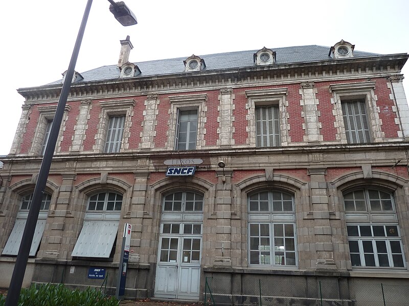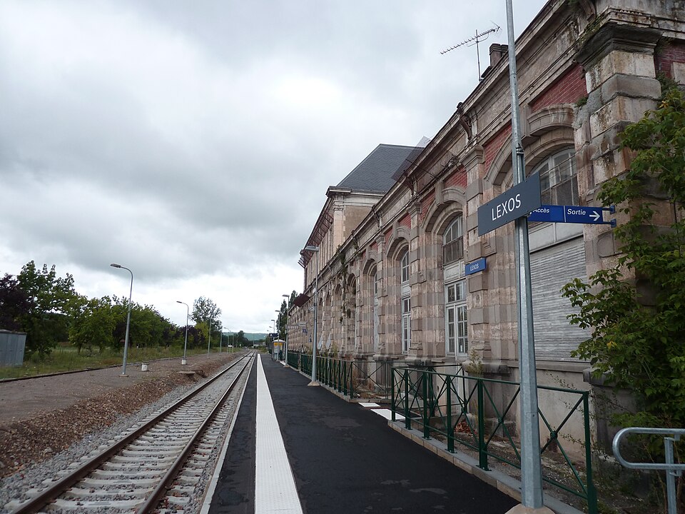 La gare néo‑18e de Lexos, située au hameau de Lexos sur la commune de Varen (Tarn‑et‑Garonne), borde l'Aveyron et se trouve sur la ligne de Brive‑la‑Gaillarde à Toulouse‑Matabiau via Capdenac. Mise en service par la Compagnie du chemin de fer de Paris à Orléans en 1858, elle occupe le point kilométrique 308,400 à 139 mètres d'altitude, entre les gares de Laguépie et de Cordes‑Vindrac. Construite en plusieurs étapes entre 1858 et 1883, sa réalisation s'étendit sur plusieurs années et un bâtiment provisoire en planches, démonté en 1870, servit d'abord de gare. Les plans définitifs de la Compagnie d'Orléans furent approuvés le 9 décembre 1865 par le ministre des Travaux publics, mais la réalisation finale diffère légèrement du projet initial. En 1865, l'architecte Tanzi prévoyait la construction de quatre édifices : le bâtiment des voyageurs, une halle à marchandises, une remise pour les voitures et un pavillon pour les lieux d'aisance. La gare témoigne de la monumentalité et de la qualité architecturale liées au rôle de carrefour ferroviaire qu'elle occupa dans les années 1860‑1880, au croisement des lignes Montauban‑Lexos, Carmaux‑Vindrac et Brive‑Capdenac‑Toulouse. À l'origine, le trafic était alimenté par les centres sidérurgiques et miniers d'Aubin et Decazeville ainsi que par l'exploitation des carrières de pierre de Lexos. La mise en service de la liaison Paris‑Toulouse via Capdenac en 1864 a renforcé son importance, mais l'ouverture d'autres lignes vers Paris au début des années 1880 a marqué le déclin de la station. La gare fut reliée à Toulouse le 24 octobre 1864. Dans les années 1940, Lexos constituait un nœud ferroviaire important avec une activité marchandise notable et plusieurs dizaines de cheminots ; la seconde moitié du XXe siècle voit cependant la fermeture de lignes et d'industries, et en 1999 aucun cheminot ne résidait plus sur le site. La ligne de Lexos à Montauban‑Ville‑Bourbon, dont Lexos était l'origine, est aujourd'hui fermée et désaffectée ; la gare suivante sur cette ancienne ligne était Féneyrols. Faute d'une activité ferroviaire importante, le site est aujourd'hui en partie désaffecté. En 2006 la SNCF a déposé un permis de démolir ; soucieuse de préserver ce patrimoine, la commune de Varen a fait inscrire l'ancien bâtiment voyageurs et la halle à marchandises au titre des Monuments historiques le 11 juillet 2007. L'ancien bâtiment voyageurs, imposant, se trouve à côté de l'entrée de la halte. La gare fonctionne aujourd'hui comme une halte non gérée (point d'arrêt non géré) à accès libre du réseau TER ; elle est desservie par des trains TER Occitanie entre Toulouse‑Matabiau, Capdenac et Figeac, ainsi que par des TER Auvergne‑Rhône‑Alpes en direction d'Aurillac et de Clermont‑Ferrand. Un quai permet l'arrêt des trains et un parking est aménagé pour les véhicules motorisés. En 2014 la gare était classée dans la catégorie C (moins de 100 000 voyageurs par an) ; la fréquentation était estimée à 4 720 voyageurs en 2014 et à 16 520 en 2023.