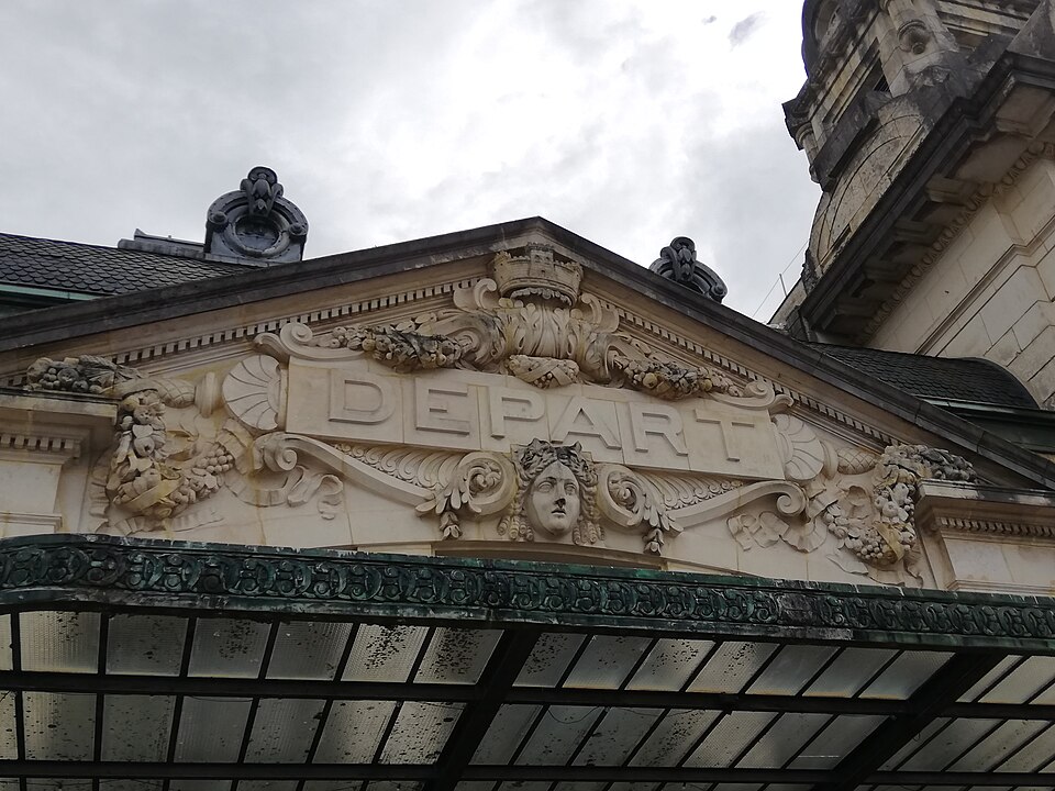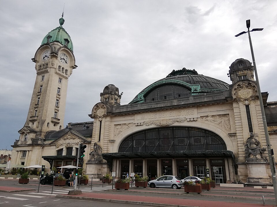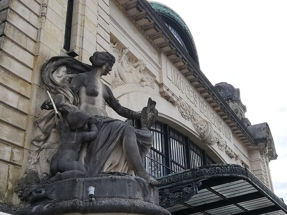 Remplaçant une première gare ouverte en 1856, l'édifice actuel des Bénédictins a été conçu dès 1917 pour la Compagnie du Paris-Orléans et réalisé par l'architecte Roger Gonthier, sous la direction de l'ingénieur Julien ; sa construction s'est achevée en 1929. Installée sur une plate-forme en béton armé au‑dessus des voies, la gare se distingue par son parti pris de surélévation et par l'emploi massif du béton, masqué en façade par un habillage de pierres. L'ensemble, considéré comme un chef-d'œuvre régionaliste, mêle des références à l'Art nouveau tardif, à l'Art déco et au néo‑classicisme, ce qui en fait un symbole architectural de la ville. La façade est animée de sculptures et d'ornements exécutés par Henri Varenne, qui évoquent les activités industrielles et artisanales de Limoges. Le hall d'accueil, couvert par une coupole haute d'environ 31 mètres, est éclairé par de vastes verrières conçues par le maître‑verrier Francis Chigot, où se mêlent motifs géométriques et décors végétaux incluant des feuilles de châtaignier. La gare est également marquée par un campanile imposant et par un bâtiment administratif qui complètent le projet urbain. Inaugurée en 1929, elle a rapidement affirmé son rôle de nœud ferroviaire régional et participe depuis lors à la vie économique et urbaine de Limoges. Classée au titre des monuments historiques, elle bénéficie d'une protection depuis le 15 janvier 1975. La SNCF a conduit une réhabilitation du bâtiment en 1979 afin de moderniser certains espaces. Victime d'un incendie lors de travaux en février 1998, la coupole a été restaurée entre 1998 et 2000 pour être reconstruite à l'identique. Aujourd'hui la gare continue d'assurer des services voyageurs régionaux et nationaux, tout en restant un repère architectural et touristique de la ville.