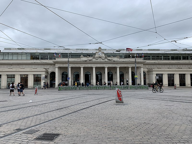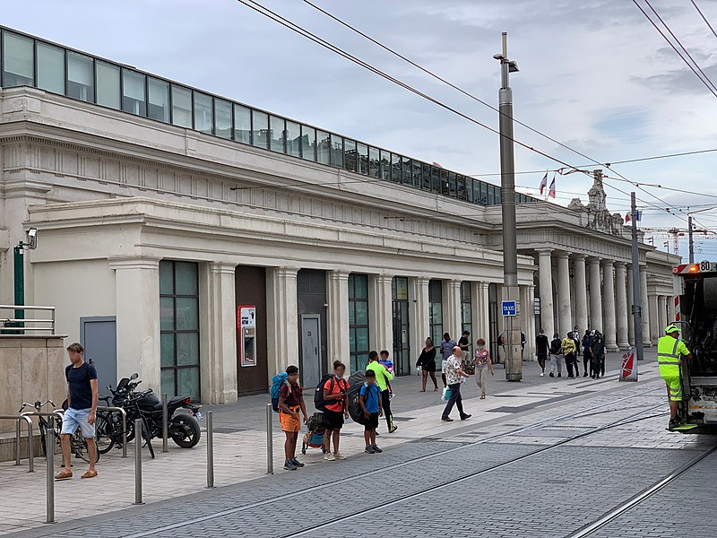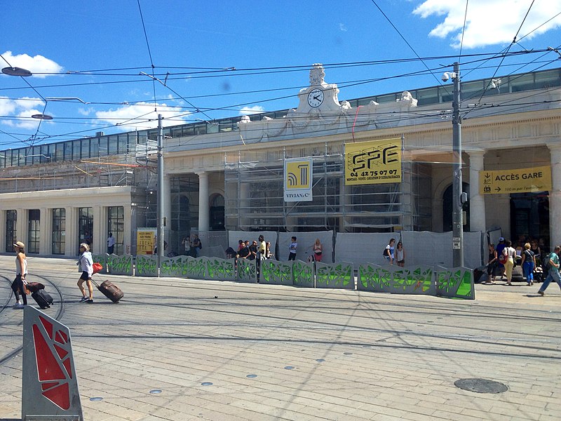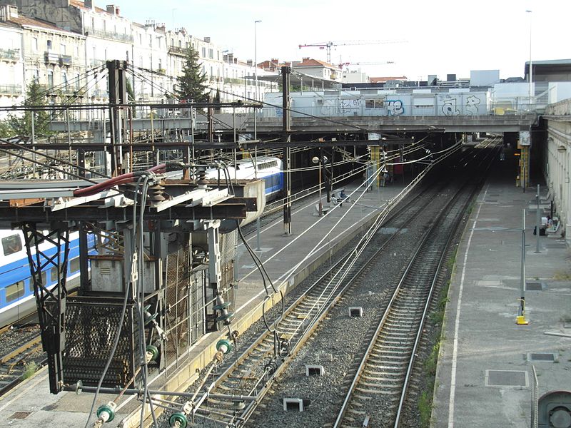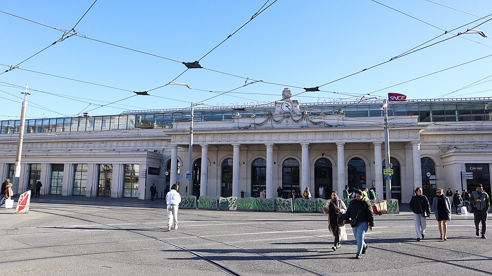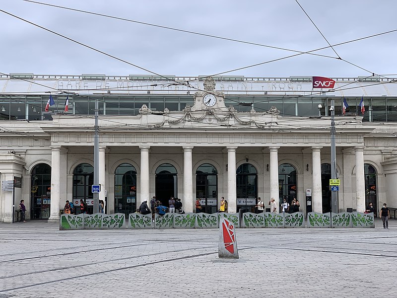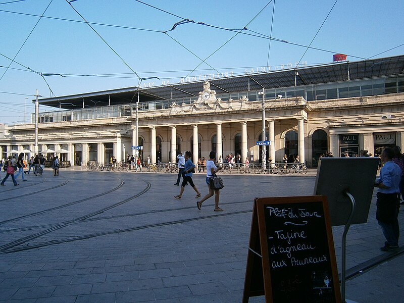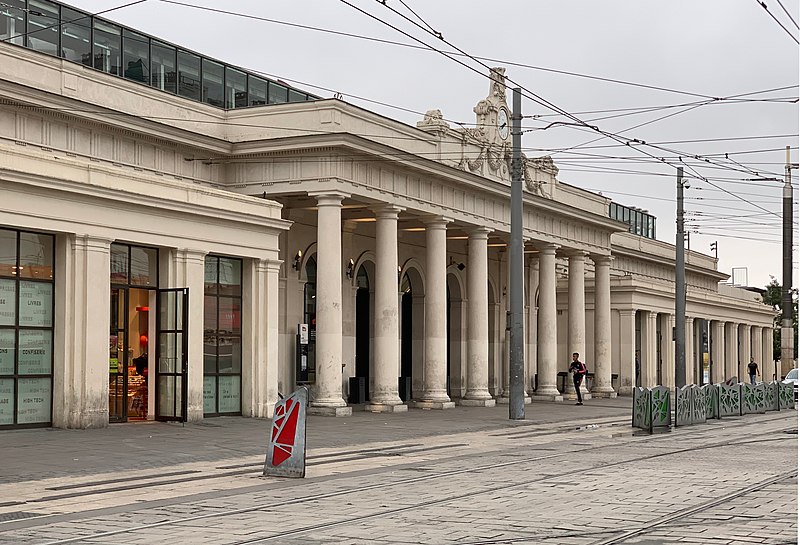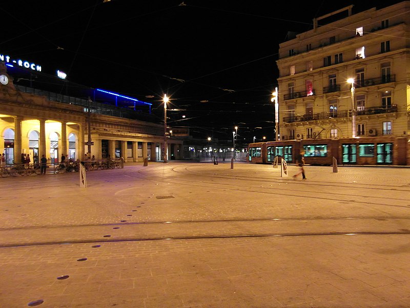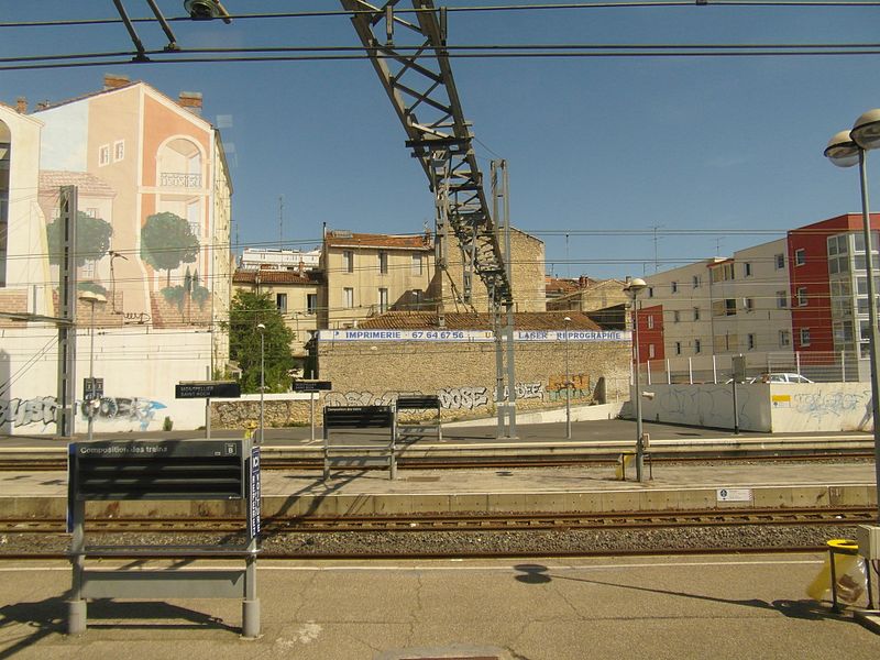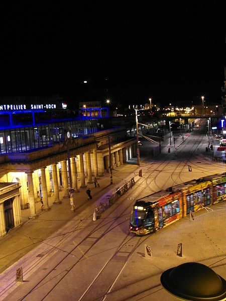 La gare de Montpellier-Saint-Roch est une gare ferroviaire française située sur la commune de Montpellier (Hérault), établie à 27 mètres d'altitude au point kilométrique 76,959 de la ligne de Tarascon à Sète-Ville ; elle est aussi gare de bifurcation au PK 519,296 de la ligne de Paulhan à Montpellier (non exploitée). Construite en 1843-1844, le bâtiment voyageurs a été profondément transformé depuis son origine : de son aspect du XIXe siècle ne subsiste que le péristyle à colonnades et la façade néoclassique, tandis que la halle et les marquises en fonte ont disparu. La première gare, terminus de la ligne de Montpellier à Sète, se trouvait près de l'actuelle rue du Grand-Saint-Jean ; la seconde, implantée lors de la création de la ligne vers Nîmes, occupe l'emplacement actuel et a favorisé l'urbanisation du secteur. Le tracé et l'implantation ont été définis sous la direction de l'ingénieur Charles Didion, la construction de la gare de Montpellier ayant été dirigée par l'ingénieur Aurès en 1844. En 1852 la gare voyageurs de la ligne de Sète a été transférée dans la nouvelle gare, les anciens emplacements servant ensuite de garage de locomotives puis de gare de marchandises. Pour répondre à l'augmentation du trafic, le bâtiment a été agrandi notamment entre 1868 et 1871 puis en 1905, avec l'ajout d'une horloge sur l'attique, et des aménagements complémentaires ont été réalisés au XXe siècle, comme les passages souterrains creusés en 1924. La marquise en fonte qui couvrait les voies a été démolie en novembre 1937. Pendant la Seconde Guerre mondiale la gare fut le théâtre d'événements marquants, notamment l'arrêt du général Franco en février 1941 et un bombardement des infrastructures ferroviaires en juillet 1944. L'électrification a porté les caténaires au-dessus des voies en octobre 1947 et, après-guerre, les installations de marchandises furent progressivement déplacées au-delà du pont de Sète. À partir des années 1970 la gare connut d'importantes modifications urbaines : une dalle construite au-dessus des voies reçut une gare routière et un parking, aménagements remaniés à l'approche du TGV et au moment de la reconstruction de la gare dans les années 1980, la partie centrale de la façade étant inscrite au titre des monuments historiques le 28 décembre 1984. La nouvelle gare, mise en service en 1981 et inaugurée en 1982, a vu son hall agrandi et l'ouverture du service TGV la même année. L'arrivée du tramway en juillet 2000 a conduit à une réorganisation des lignes de bus et au déplacement de la gare routière, et l'appellation « Montpellier-Saint-Roch » a été progressivement utilisée à partir de 2003 avant d'être officialisée le 31 mars 2005. Au début des années 2010, un vaste réaménagement a été engagé, comprenant la construction d'une verrière métallique partiellement ouverte en juin 2013 et la réouverture complète du bâtiment rénové le 2 décembre 2014 afin d'améliorer la lisibilité et la capacité pour les quelque 18 000 voyageurs quotidiens. L'ouverture du contournement ferroviaire de Nîmes et de Montpellier en 2018 n'a pas permis aux trains de rejoindre Saint‑Roch, qui est ainsi secondée par la nouvelle gare de Montpellier‑Sud‑de‑France. Structurée sur trois niveaux et dotée d'une façade protégée, la gare combine passages piétons sous les voies, niveau des quais, rez-de-chaussée et un premier étage abritant l'accueil et les guichets ; une dalle au-dessus des voies supporte un espace de circulation et un parking de courte durée. Desservie par la SNCF, Montpellier‑Saint‑Roch accueille des relations TGV inOui, AVE, Intercités de jour et de nuit ainsi que des TER vers les principales villes régionales et des liaisons internationales. Elle constitue une plate-forme de correspondance majeure, desservie par les quatre lignes du tramway de Montpellier et par de nombreuses lignes de bus ; les autocars interurbains et internationaux ont été déplacés vers des arrêts de tramway comme Les Sabines et Place de France, tandis que certaines lignes suburbaines s'arrêtent sur le pont de Sète. L'emprise dédiée aux activités ferroviaires non urbaines a été fortement réduite depuis les années 2000 avec l'abandon de la gare de marchandises, de la gare multimodale et d'une grande partie de la gare routière ; les terrains ainsi libérés ont été consacrés à l'opération immobilière Nouveau Saint-Roch et au programme Eden Roch. Fermée au service du fret depuis le 1er juin 2006, la gare reste l'une des principales gares de la région Occitanie, située entre Nîmes et Sète et jouant un rôle central dans l'organisation des transports urbains et régionaux de Montpellier.