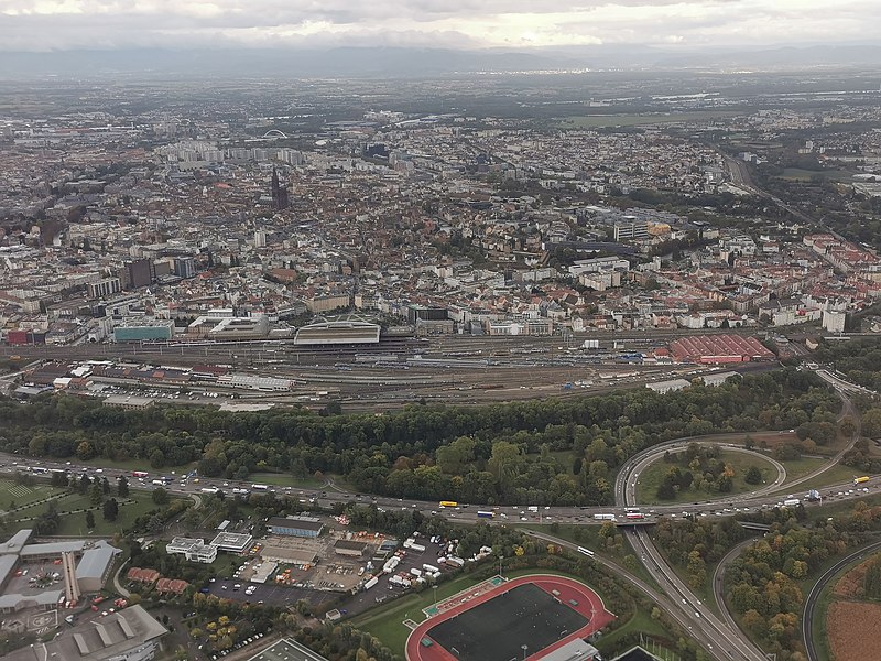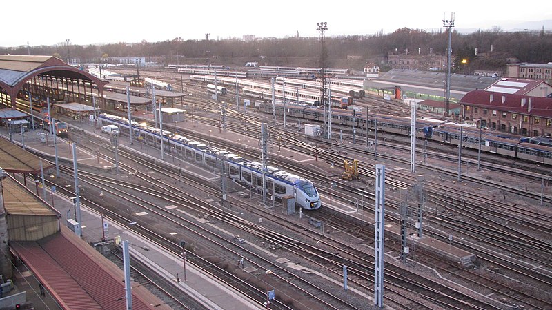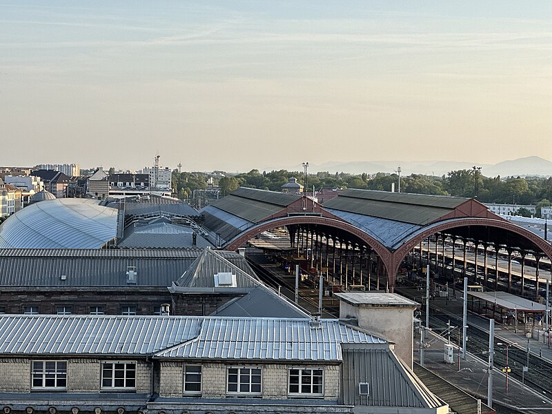 La gare de Strasbourg-Ville, appelée couramment gare de Strasbourg ou gare centrale, est située près du centre-ville de Strasbourg, dans la collectivité européenne d'Alsace en région Grand Est. Inaugurée en 1883 par l'administration allemande, elle remplace l'ancienne gare du Marais-Vert et constitue le nœud d'une importante « étoile ferroviaire » à cinq branches, dont une transfrontalière. Exploité par la SNCF, l'établissement assure des dessertes régionales, nationales et internationales et constitue le principal pôle d'échanges de l'agglomération strasbourgeoise ; hors Île-de-France, il se classe au troisième rang national pour le trafic voyageur. Un réaménagement majeur, lié à la mise en service du TGV Est, a été réalisé en 2007 et se traduit notamment par la pose d'une grande verrière protégeant la façade historique.