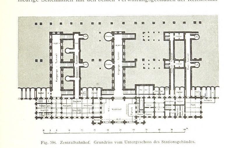 Le bâtiment principal, en grès des Vosges, présente des façades de style néo-Renaissance ; le hall central avait été orné en 1885 de deux grandes fresques réalisées par Hermann Knackfuss ainsi que de deux statues d'Otto Geyer représentant l'agriculture et l'industrie, ces dernières demeurant dans le hall tandis que les fresques disparaîtront par la suite. Côté voies, une halle métallique protégeait les quais et des salons impériaux dessinés par Hermann Eggert, très richement aménagés, s'ouvrent sur un quai latéral ; ces salons, peu utilisés par la famille impériale, seront réaménagés en salons d'honneur puis transformés en bureaux et salles de réunion. L'accès aux quais se faisait à l'origine par plusieurs souterrains, et la gare disposait d'installations électriques avancées pour son époque, dont deux centrales électriques, l'une de celles-ci étant réaffectée en restaurant d'entreprise.