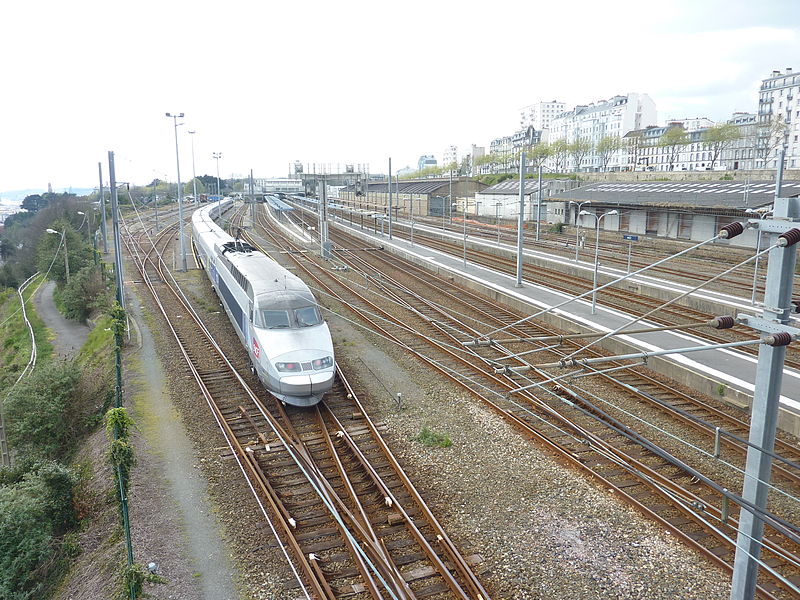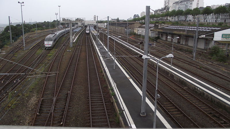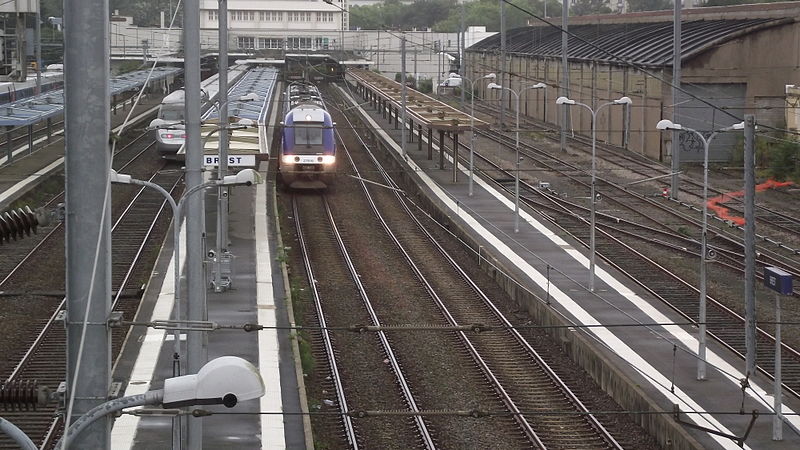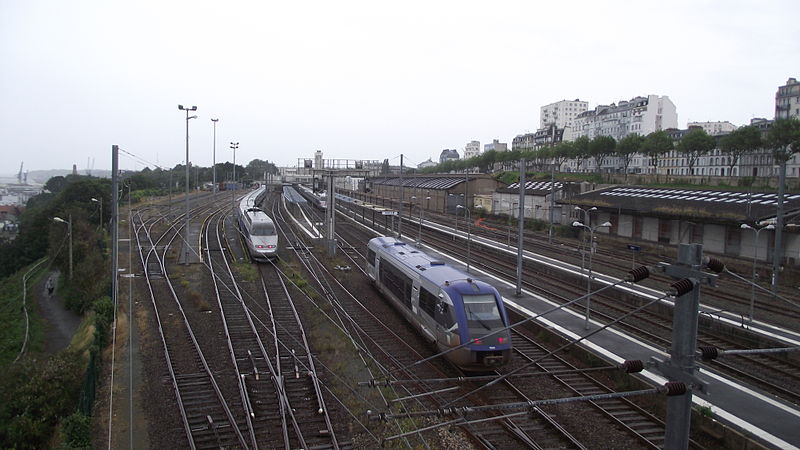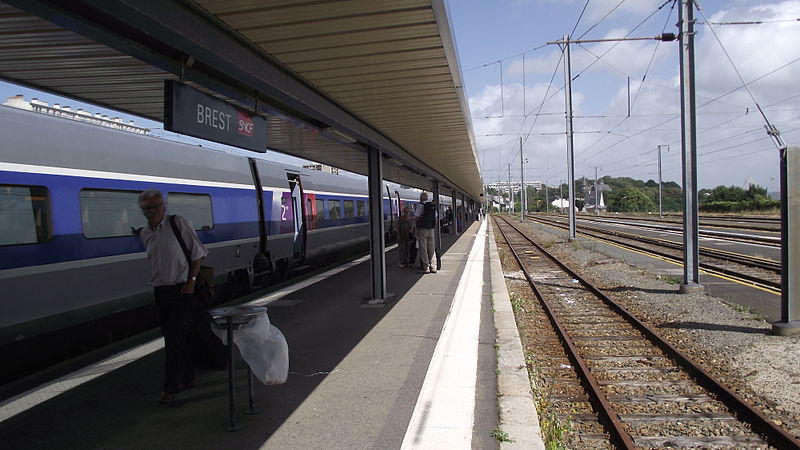 Gare SNCF desservie par des TGV et des trains TER Bretagne, la station propose un bâtiment voyageurs avec guichets, salle d'attente, automates de vente, une boutique de presse et un buffet. Elle bénéficie du label « Accès Plus » et d'aménagements destinés aux personnes à mobilité réduite. Brest est reliée à Paris par des TGV circulant sous les marques TGV inOui et Ouigo ; la mise en service de la LGV Bretagne-Pays de la Loire a réduit le temps de parcours à un peu plus de 3 h 20 min depuis le 2 juillet 2017. La gare est également desservie par plusieurs relations TER Bretagne, notamment celles reliant Rennes, Saint-Brieuc, Landerneau, Morlaix, Quimper, Vannes et Nantes.