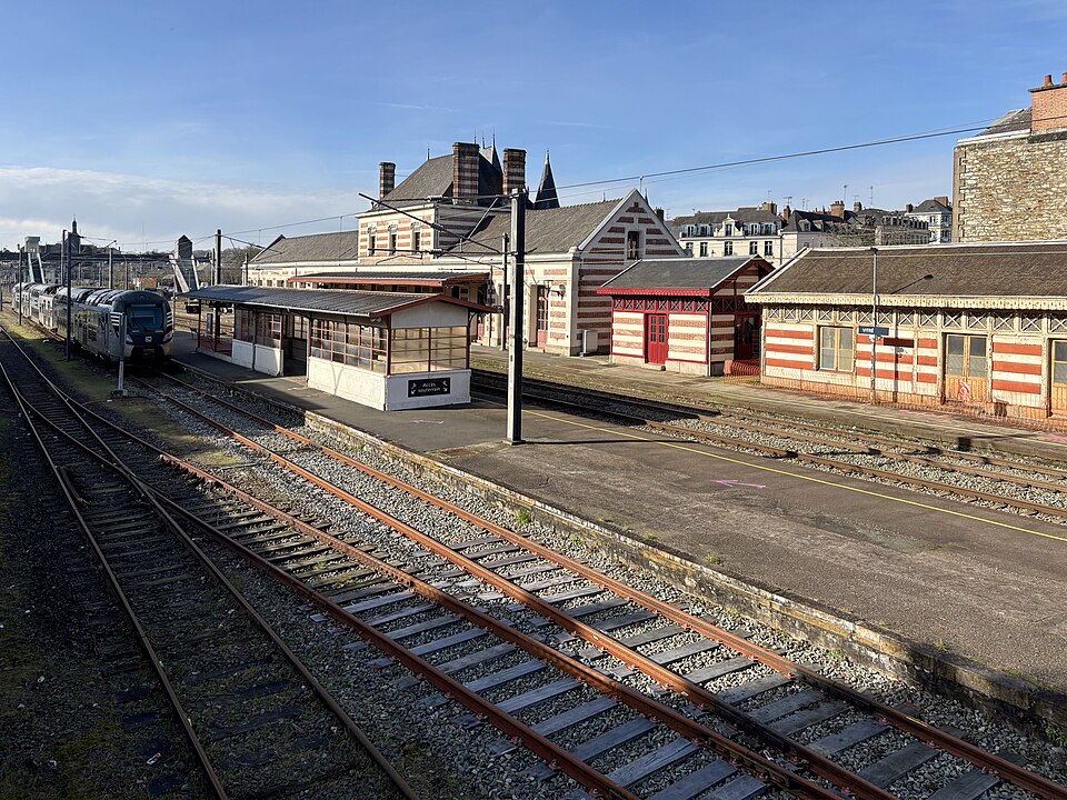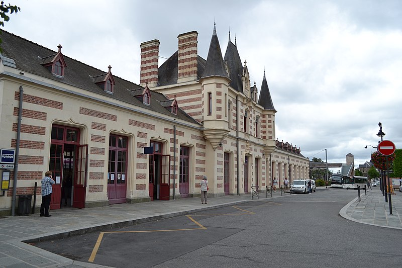 La gare de Vitré est une gare ferroviaire située dans la commune de Vitré, en Ille-et-Vilaine (Bretagne), sur la ligne de Paris-Montparnasse à Brest. Exploitable par la SNCF, elle est desservie par des TGV et par des trains régionaux des réseaux TER Bretagne et TER Pays de la Loire. Établie à 90 mètres d'altitude au point kilométrique 335,886 de la ligne, elle fut autrefois un nœud ferroviaire et a été l'origine de la ligne vers Pontorson et l'aboutissement de la ligne venant de Martigné-Ferchaud, toutes deux désormais fermées au service des voyageurs. Construite dans les années 1850 en pierre et brique, sa construction s'achève en 1857 ; Victor Lenoir en est l'architecte. Le bâtiment principal, long et rectangulaire, comprend un corps pour les voyageurs, une salle des bagages et, symétriquement, un second bâtiment abritant deux bureaux ; en 1882 il est prolongé vers l'ouest pour agrandir la salle d'attente des deuxième et troisième classes. De style néo-gothique de petit castel, son architecture alterne tuffeau et brique, est flanquée de deux échauguettes et couverte d'une toiture d'ardoise ; ce parti architectural, atypique, ne se retrouve guère que dans la gare de Sées. L'implantation de la gare à proximité du centre historique a entraîné la destruction des remparts sud et l'ouverture de voies nord-sud qui ont profondément transformé le tissu intra-muros, jusqu'à la disparition d'un faubourg médiéval qui occupait l'actuel parking nord et s'étendait jusqu'à l'église Sainte-Croix. La section Laval–Rennes de la ligne a été ouverte le 1er mai 1857 et la section Vitré–Fougères le 1er octobre 1867 ; la section Laval–Rennes a été électrifiée le 1er juillet 1965. La gare fait l'objet d'une inscription au titre des monuments historiques depuis le 29 octobre 1975 et ses façades ont été restaurées en 2009 et 2010. La fermeture de la section Vitré–Fougères est intervenue le 5 mars 1972 en raison d'un trafic voyageurs très faible, d'environ une quinzaine de personnes par jour ; un service routier a alors été mis en place et le trafic marchandises a perduré une dizaine d'années. La gare de Fougères a depuis disparu et a été remplacée par un centre commercial, tandis qu'une petite portion de la ligne subsiste pour le transport de marchandises entre l'usine d'alimentation pour bétail du lieu-dit « Gérard » à Montreuil-sous-Pérouse et Vitré. La section Vitré–La Guerche-de-Bretagne a été fermée la même année et sa voie transformée en piste de randonnée dans les années 1990. Le trafic voyageurs s'est fortement accru ces dernières années ; avec 735 000 voyages en 2008, l'axe Rennes–Vitré figurait parmi les plus fréquentés sur les liaisons entre ces deux villes et leurs gares intermédiaires. Les migrations pendulaires constituent l'usage principal et la gare est équipée de bornes pour la validation des titres KorriGo. Au début du XXIe siècle, la réouverture de la ligne Vitré–Fougères a été à nouveau évoquée par certains élus dans le contexte du développement durable et des transports collectifs. Le bâtiment voyageurs dispose d'un guichet ouvert tous les jours et d'automates pour l'achat de titres TER. Outre les TGV entre Paris-Montparnasse, Rennes et Saint-Malo, la gare est desservie par des relations régionales entre Rennes, Laval et Le Mans, et, depuis la mise en service de la Virgule de Sablé, par des liaisons vers Nantes via Angers. La gare est également ouverte au fret, limité aux opérations de chargement et de déchargement en gare. Un pôle d'échanges, situé en centre-ville à proximité immédiate de la gare, rassemble bus et trains et facilite les correspondances ; la SNCF anticipe une hausse du trafic dans les années à venir. Pour l'accès aux quais, une passerelle équipée d'ascenseurs est en service depuis mars 2014, desservant les parkings Nord et Sud ainsi que le quai B–C. La gare routière a été transférée près de cette passerelle sur le parking SNCF Nord, à proximité de l'office du tourisme, tandis que le pôle bus-train reste organisé autour de la place du Général-de-Gaulle. Les équipements de la zone comprennent notamment un parking silo de 607 places gratuites pour 24 heures, un parc vélos fermé et des liaisons directes entre ce parking, la passerelle et les quais A (direction Laval, Le Mans, Paris), B (direction Rennes) et C (départ/terminus). Sur une emprise SNCF face au quai C a été construit l'immeuble de bureaux « B-3000 » (3 000 m2 sur trois niveaux), qui accueille la fonction support « Agromousquetaires » du groupe Intermarché en France. Sur le plan culturel, la gare a servi de décor au clip de la chanson "Brick" du groupe suédois Fake, tourné en 1985 avec la locomotive 141 R 1199 présente sur le site.
