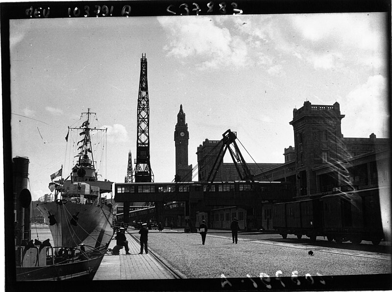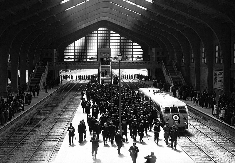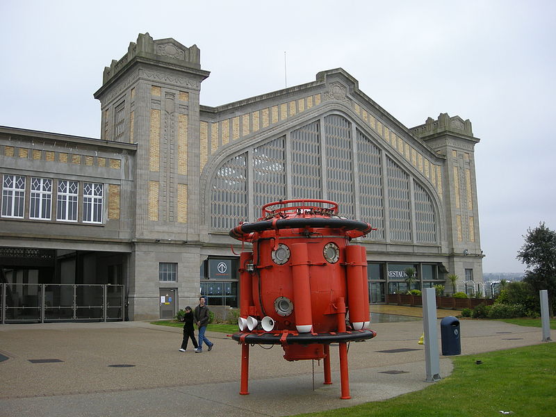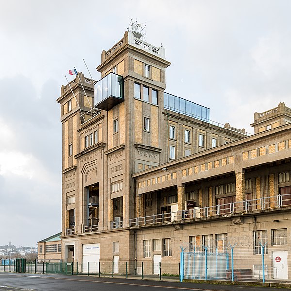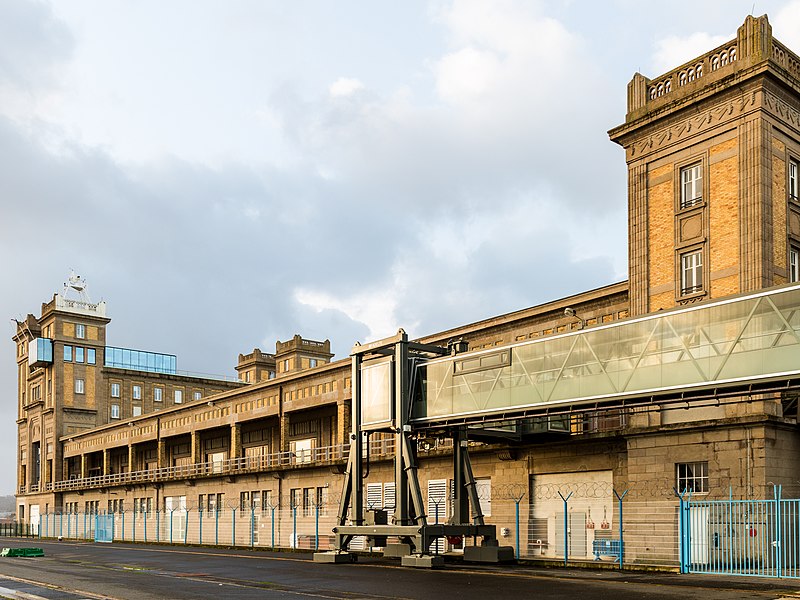 L'ancienne gare maritime de Cherbourg, située à Cherbourg-en-Cotentin (Manche, Normandie), a servi à la fois de terminal maritime de passagers et de gare ferroviaire entre les années 1930 et 1960. Le projet s'inscrit dans l'aménagement d'un port en eau profonde conçu par l'ingénieur Minard. Dès le XIXe siècle et au début du XXe, Cherbourg recevait déjà des trains internationaux et des transbordeurs assuraient la liaison entre quai et paquebots, avec un appontement en bois suivi d'une gare maritime en maçonnerie construite en 1912. La nouvelle gare, dessinée par l'architecte René Levavasseur en collaboration avec les ingénieurs Marcel Chalos et Raymond Fleury et décorée par Marc Simon, a été construite en béton armé à partir de 1928 et inaugurée en 1933 par le président Albert Lebrun. Elle se compose de deux grands bâtiments — la halle des transatlantiques et la halle des trains — reliés à une galerie couverte d'embarquement longue d'environ 500 mètres et dotée de neuf passerelles métalliques mobiles. La gare, conçue dans un riche vocabulaire Art déco, associe béton armé, briques claires et pierres de béton, et offre des décors intérieurs signés des ateliers de Marc Simon avec un dallage en mosaïque réalisé par Gentil et Boudet. La grande halle des trains, longue de 240 mètres, couvre une surface de 7 000 mètres carrés ; le bâtiment principal comprenait jadis une vaste salle des pas perdus, des bureaux des compagnies maritimes, des boutiques, une salle des douanes et un grand salon. L'ensemble était également marqué par un campanile de 70 mètres qui a été détruit par les Allemands en 1944 et n'a pas été reconstruit. La gare pouvait accueillir simultanément quatre trains et deux paquebots, et ses équipements comprenaient des grues mobiles pour le courrier et les marchandises. La façade maritime, le quai de France et la galerie assuraient la transition directe entre la voie ferrée et les transatlantiques, symbolisant le lien entre le rail et la traversée de l'Atlantique. Pendant la Seconde Guerre mondiale, la gare fut partiellement détruite par des explosions en juin 1944 ; la partie sud du bâtiment principal, le grand salon et le campanile furent rasés, tandis que la partie nord subit des dommages plus limités. Relevée après-guerre à l'initiative de la chambre de commerce, la restauration menée entre 1948 et 1952 a reconstruit la halle des trains et la galerie couverte dans l'esprit des années 1930, sans toutefois restituer le campanile ni l'aile sud de la gare. Reprise par la Cunard comme troisième escale entre Southampton et New York, la gare retrouva une activité soutenue jusque dans les années 1960, avec l'escale régulière du Queen Mary et du Queen Elizabeth. La disparition progressive du trafic transatlantique à la fin des années 1960 et le retrait des grands paquebots entraînèrent un déclin de l'usage, malgré quelques reprises d'escales, notamment après le lancement du Queen Elizabeth 2 en 1969. Dans les années 1970 et 1980, des transformations destinées au fret et au stockage de conteneurs entraînèrent la démolition progressive de parties de la galerie et du grand salon ; la galerie nord fut démolie en 1979 et le grand salon reconstruit après la guerre fut rasé en 1982. Une opération envisagée à la fin des années 1980, qui aurait remplacé la halle des trains par des installations d'embarquement automobiles, fut finalement abandonnée après des mobilisations en faveur de la conservation ; la gare fut inscrite aux monuments historiques en 1989, ce qui a contribué à sa sauvegarde. Depuis 2002, le site accueille la Cité de la Mer, musée océanographique, et des travaux de rénovation de la partie voyageurs ont été conduits de 2003 à 2006, permettant notamment l'accueil du Queen Mary 2 en 2004 et l'inauguration d'un terminal croisières en décembre 2006. À proximité, le sous-marin Le Redoutable, lancé en 1967 par l'Arsenal de Cherbourg, est exposé dans une darse aménagée près de l'ancienne gare. Au titre des monuments historiques, le hall des trains et sa voie charretière avec leurs équipements, ainsi que les façades et toitures du hall des transatlantiques et les deux passerelles mobiles, ont été inscrits par arrêté le 27 décembre 1989, et le hall des transatlantiques l'a été par arrêté du 16 août 2000. L'édifice, implanté à l'extrémité de la ligne de Mantes-la-Jolie à Cherbourg, reste l'un des exemples majeurs de l'architecture Art déco de l'entre-deux-guerres en Basse-Normandie.