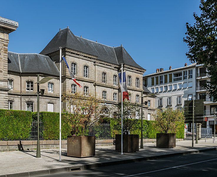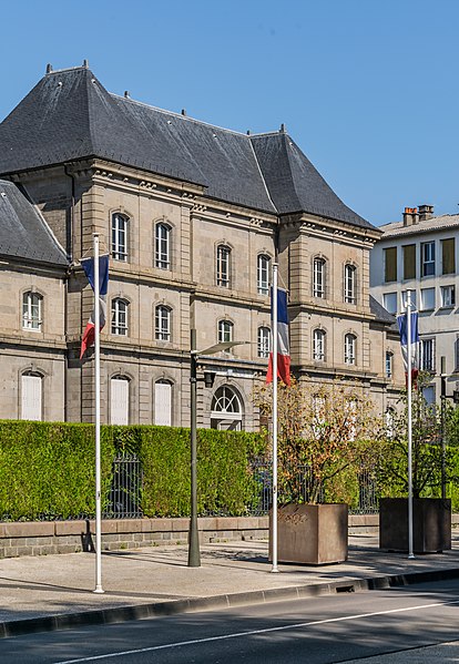 La gendarmerie d'Aurillac, située dans le Cantal en Auvergne-Rhône-Alpes, fait partie d'un ensemble administratif qui comprend également le palais de justice et la maison d'arrêt. En 1846, la construction de cet ensemble a été décidée en raison de la vétusté des locaux antérieurs ; un premier projet fut présenté en 1847, puis un second en 1849 par l'architecte Théophile Carriat, responsable du service des bâtiments du Cantal. Les bâtiments de la gendarmerie et de la prison, édifiés entre 1850 et 1855, s'inscrivent dans la tradition classique des XVIIe et XVIIIe siècles, tandis que le palais de justice, construit entre 1865 et 1872, adopte un style plus antiquisant. L'ensemble s'organise en rectangle, la gendarmerie et la prison formant chacune une aile du palais. Un jardin longe les façades principales et est clos par un muret surmonté d'une grille, et le portique se détache en saillie sur la façade. La cour de la gendarmerie est encadrée par divers bâtiments de service, logements et annexes. Les façades et les toitures de l'ensemble sont inscrites au titre des monuments historiques par arrêté du 4 mai 1984.